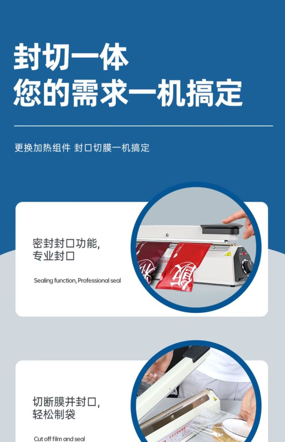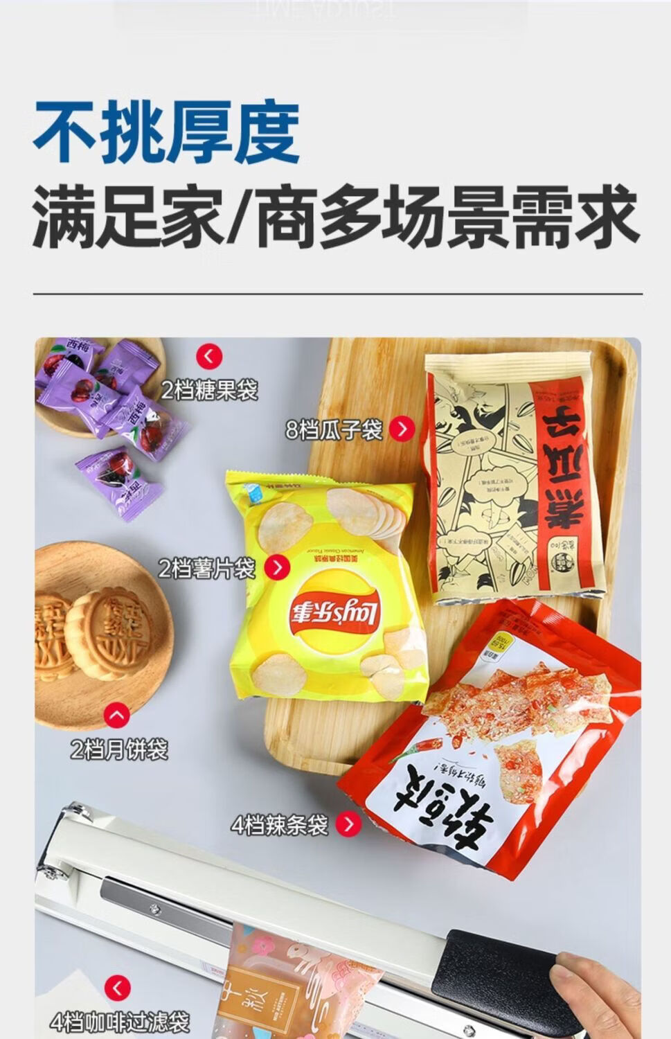 Full bow hand pressure sealing machine hand pressure sealing machine household food tea aluminum foil bag sealing machine packaging machine plastic sealing machine sealing artifact 200A sealing machine (2.5mm)