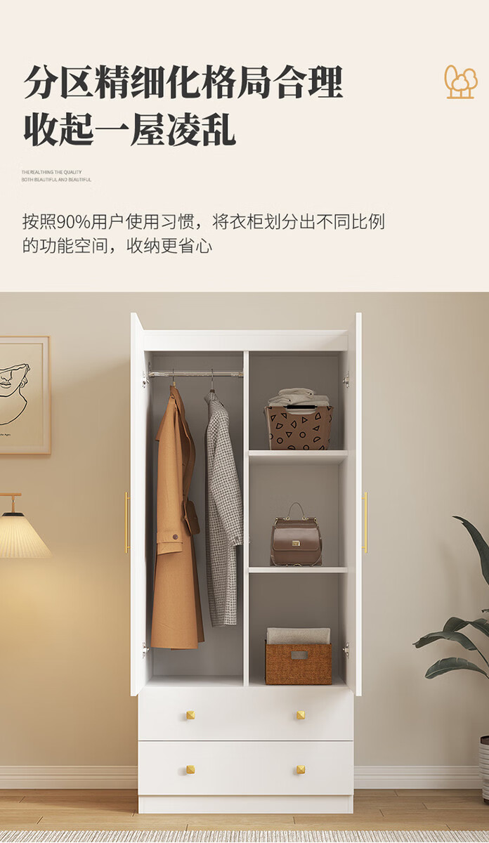 Yusenyi two-door wardrobe household storage cabinet storage cabinet bedroom small apartment wardrobe top cabinet 40 high 50 deep 80 wide 2 doors