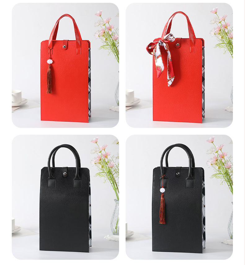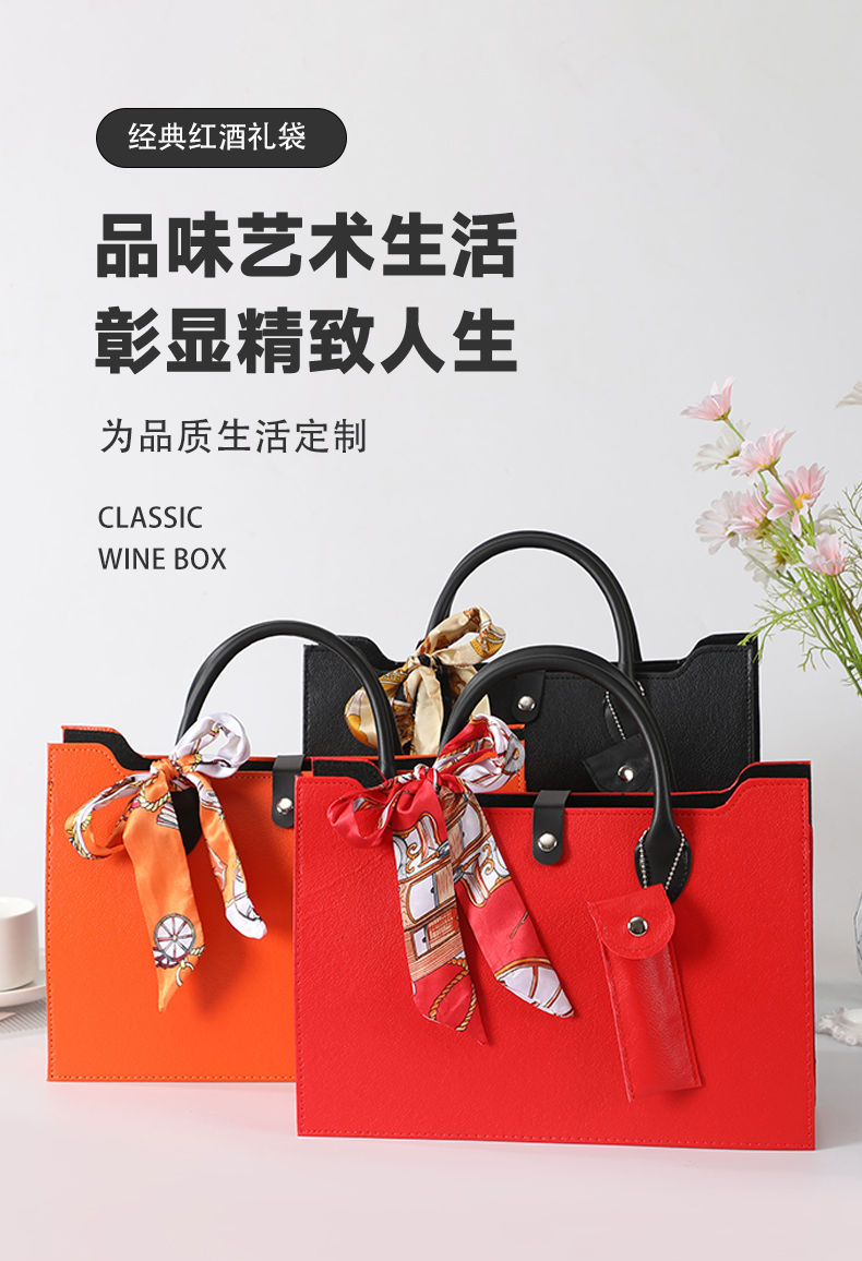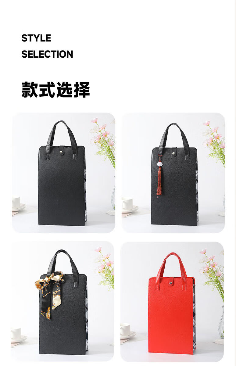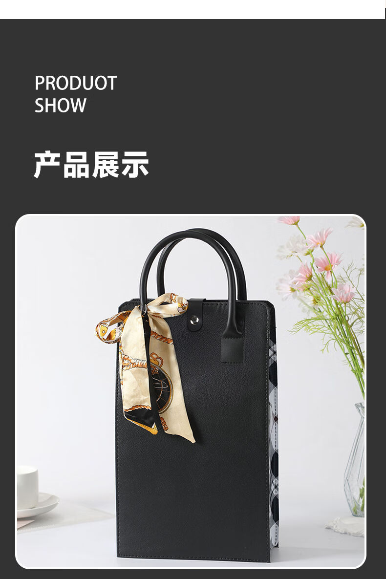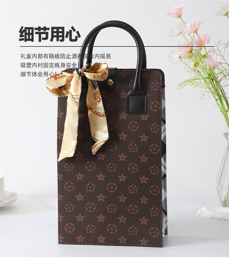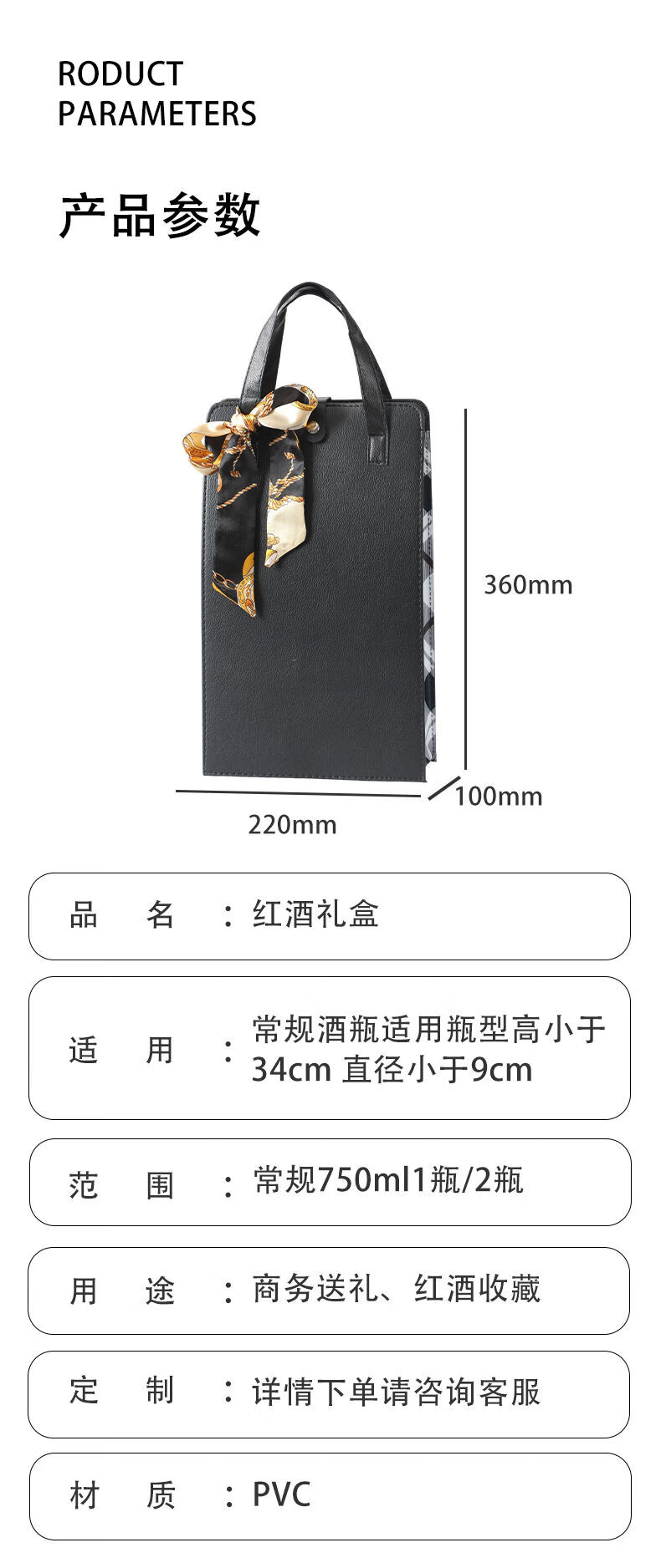 Fantasy red wine handbag, double wine box, leather box, red wine packaging gift box, black scarf with wine holder