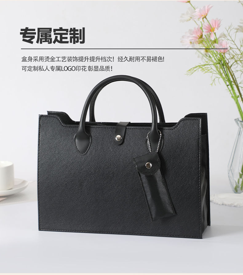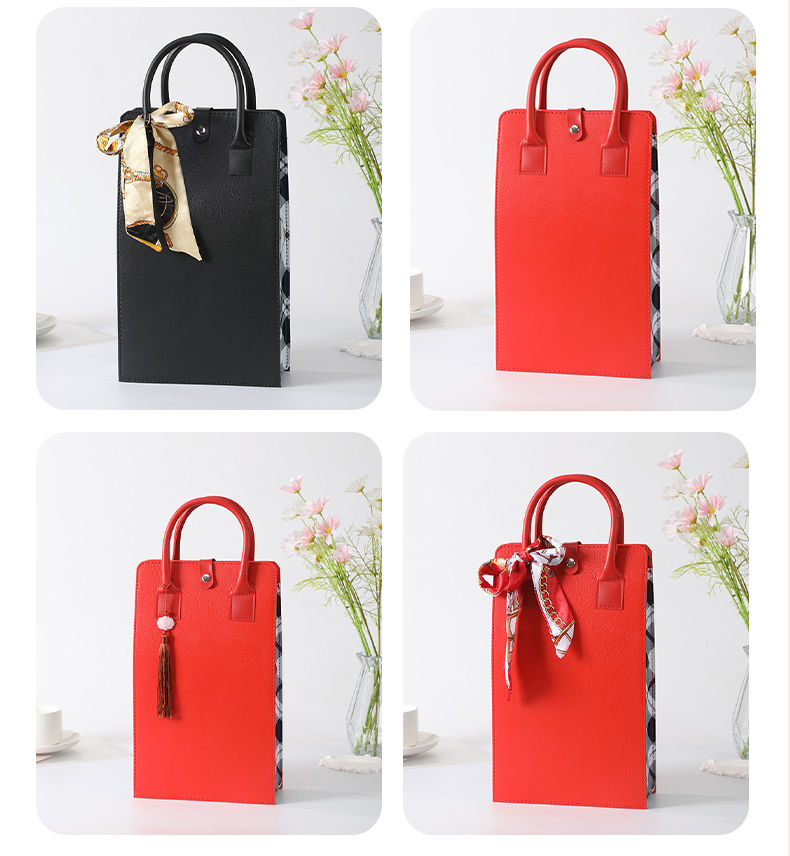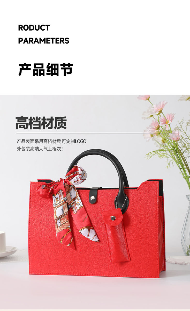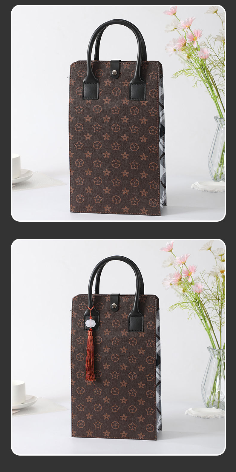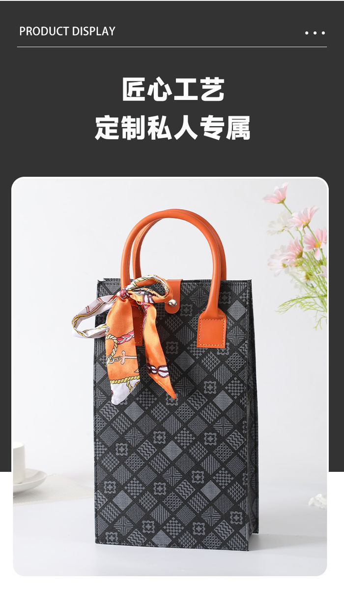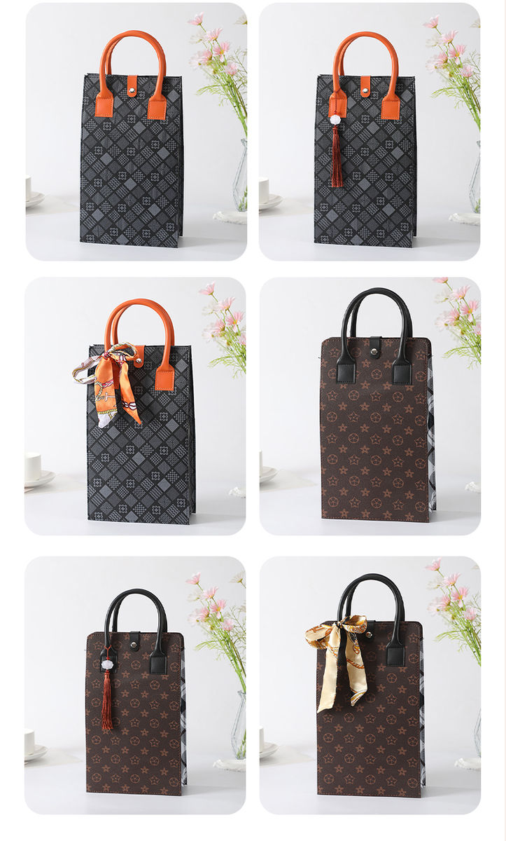 Fantasy red wine handbag, double wine box, leather box, red wine packaging gift box, black scarf with wine holder