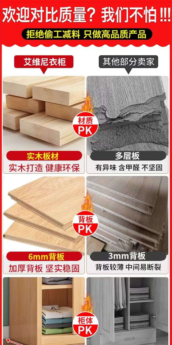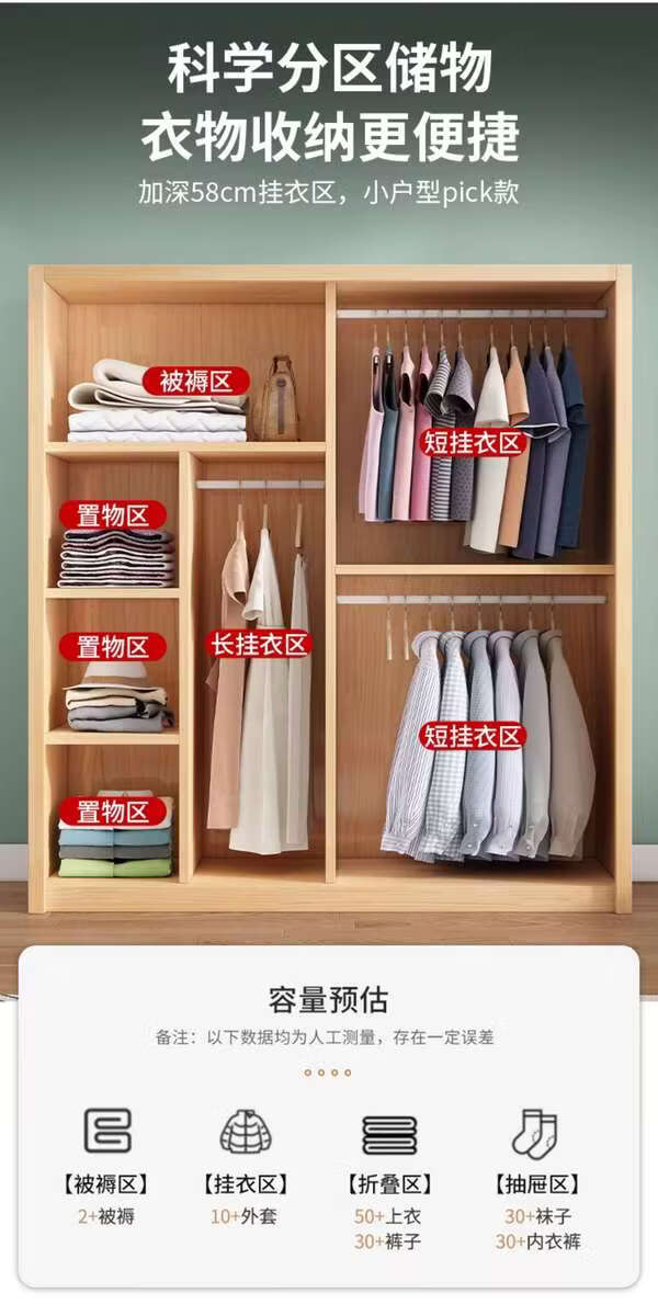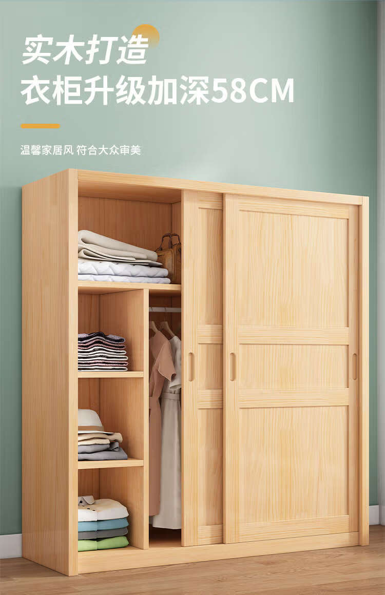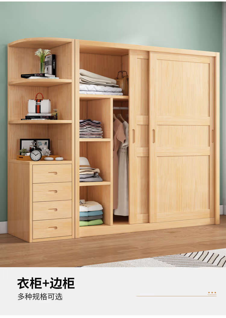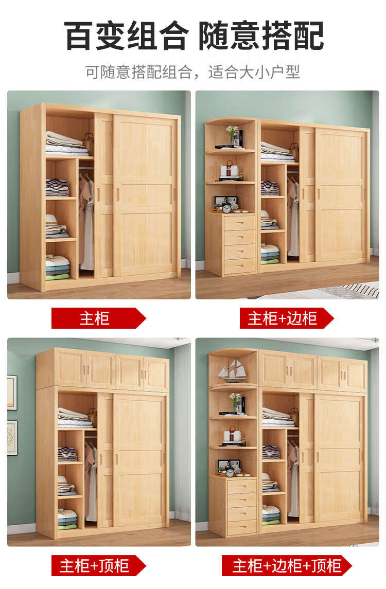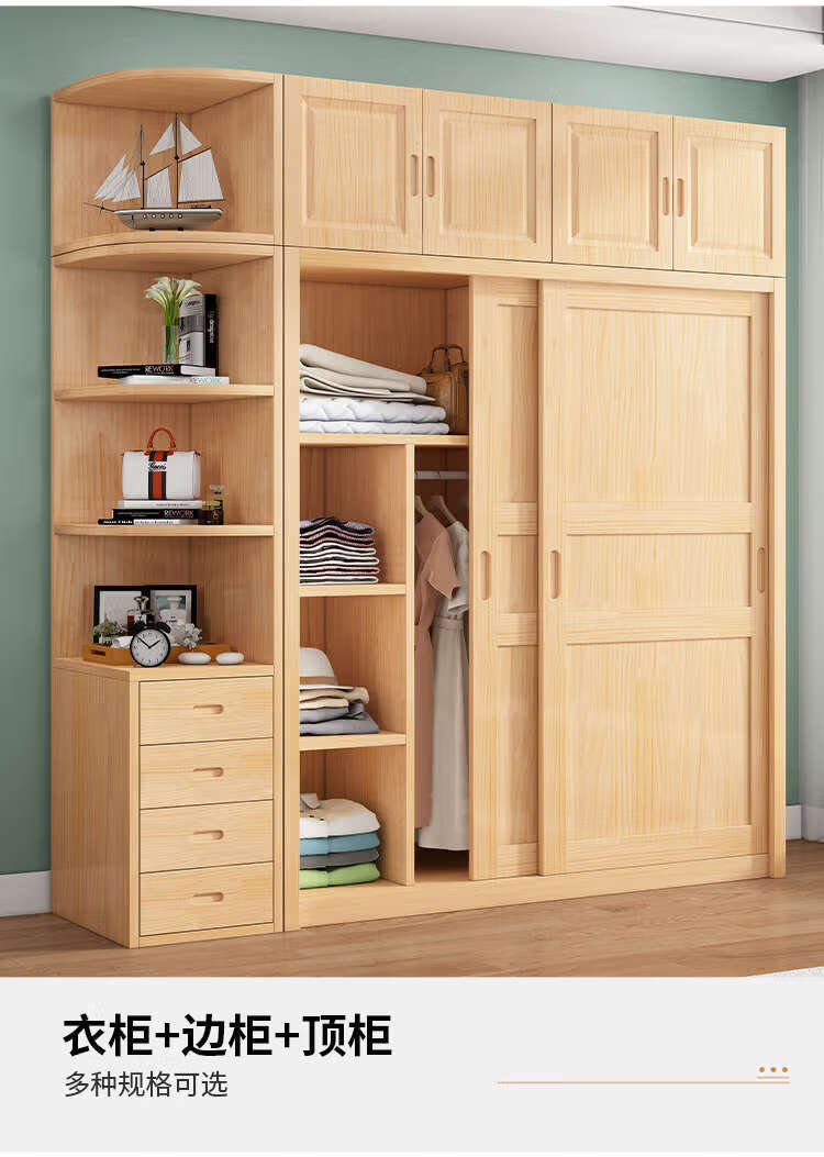 Yusenyi Wardrobe Home Bedroom Sliding Door Wardrobe Sliding Door Cabinet 2 Meter Log Corner Cabinet Assembly