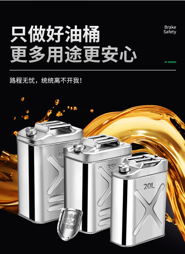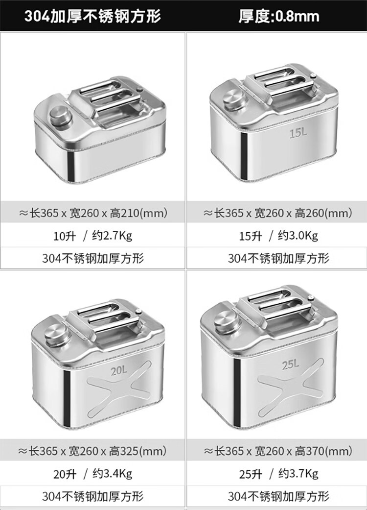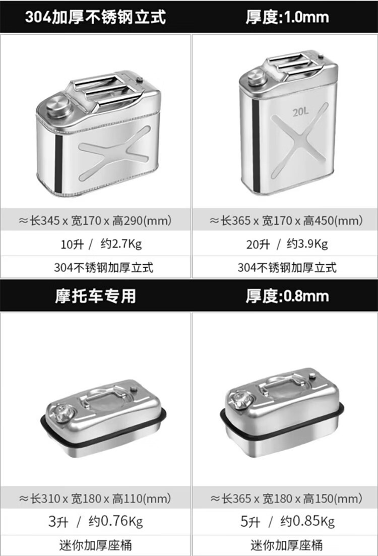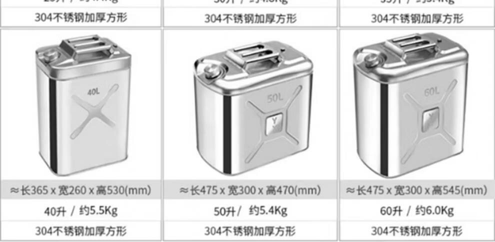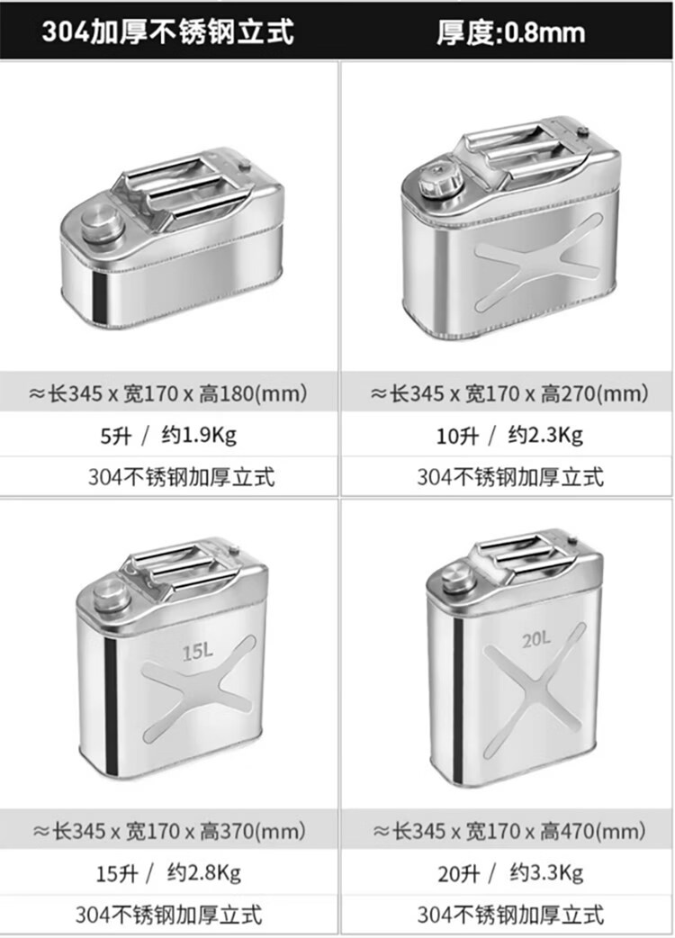 Industrial thick 304 stainless steel gasoline barrel, diesel gasoline special barrel 30L thickened spare fuel tank, portable explosion-proof vehicle 201 stainless steel vertical 5L upgraded thickened 0.8mm + oil pipe