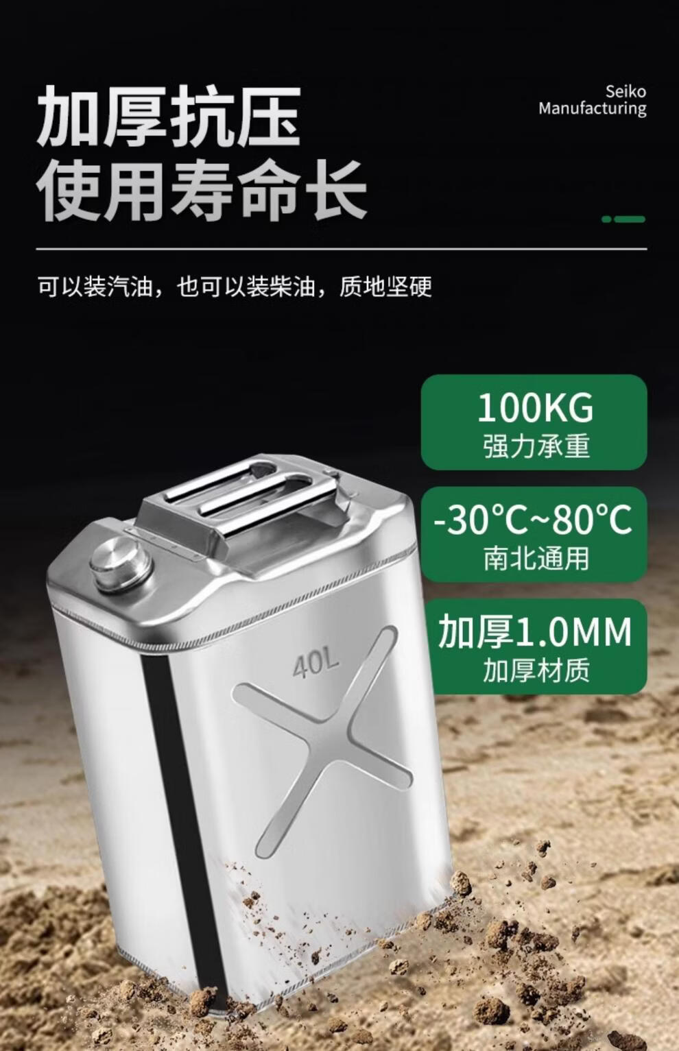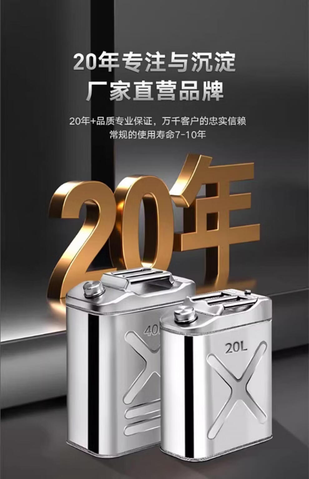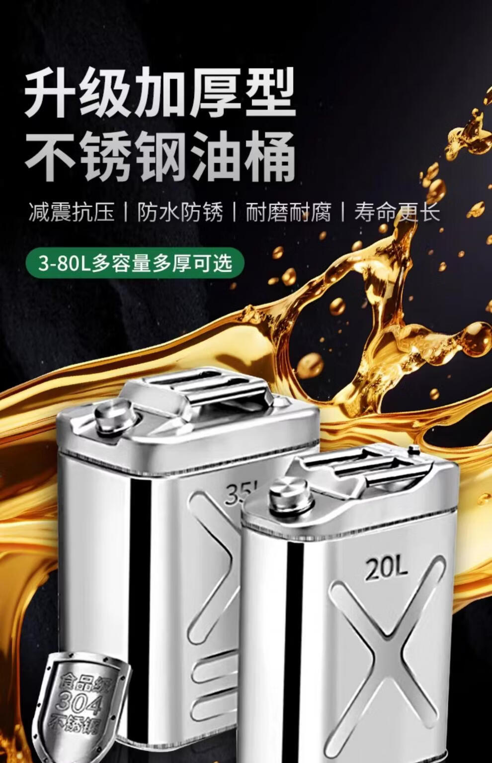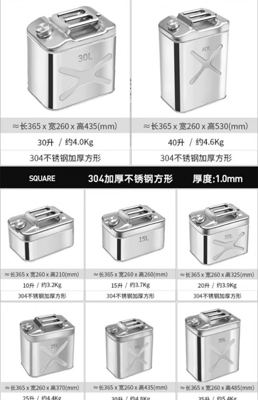 Industrial thick 304 stainless steel gasoline barrel, diesel gasoline special barrel 30L thickened spare fuel tank, portable explosion-proof vehicle 201 stainless steel vertical 5L upgraded thickened 0.8mm + oil pipe