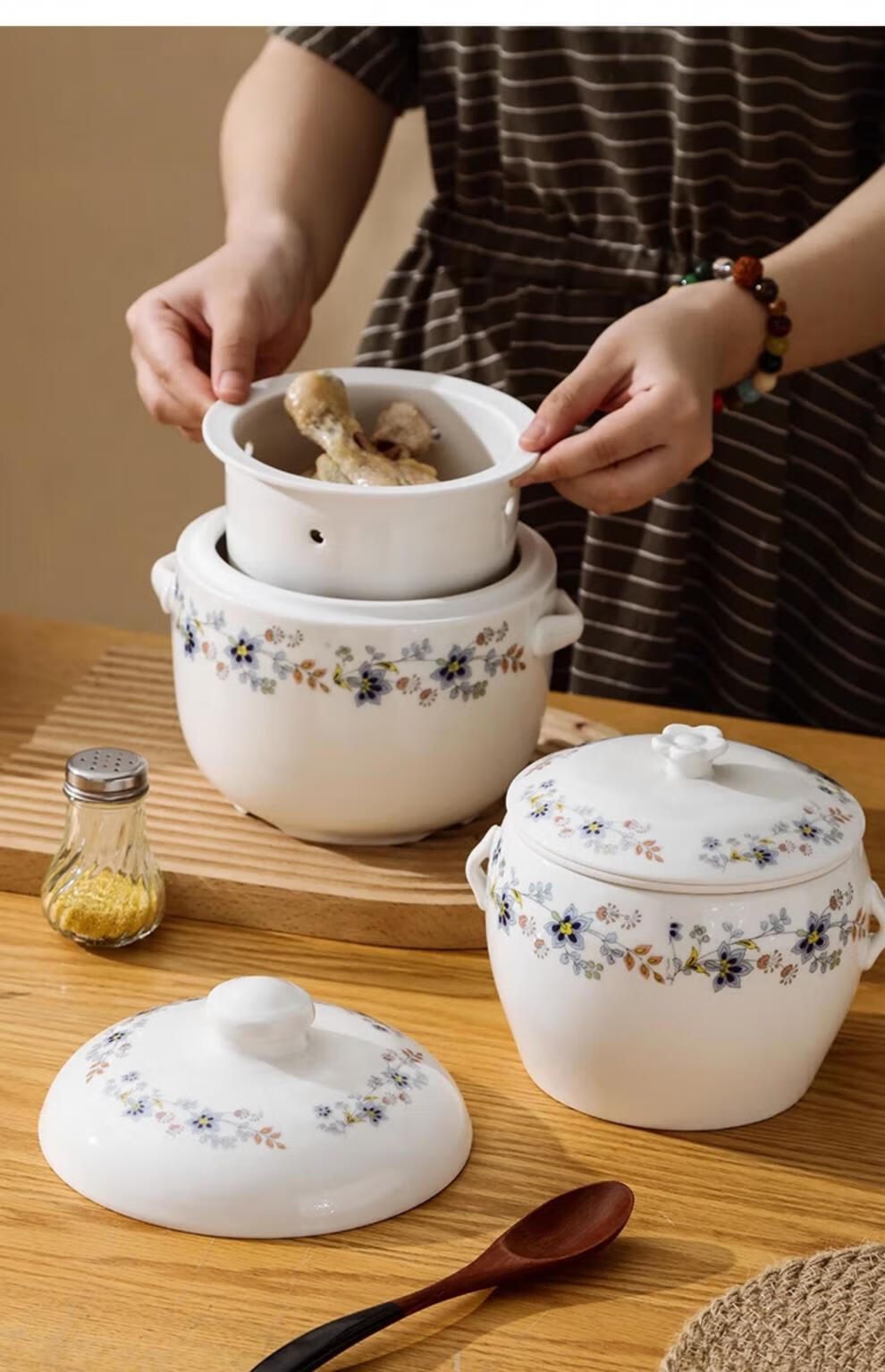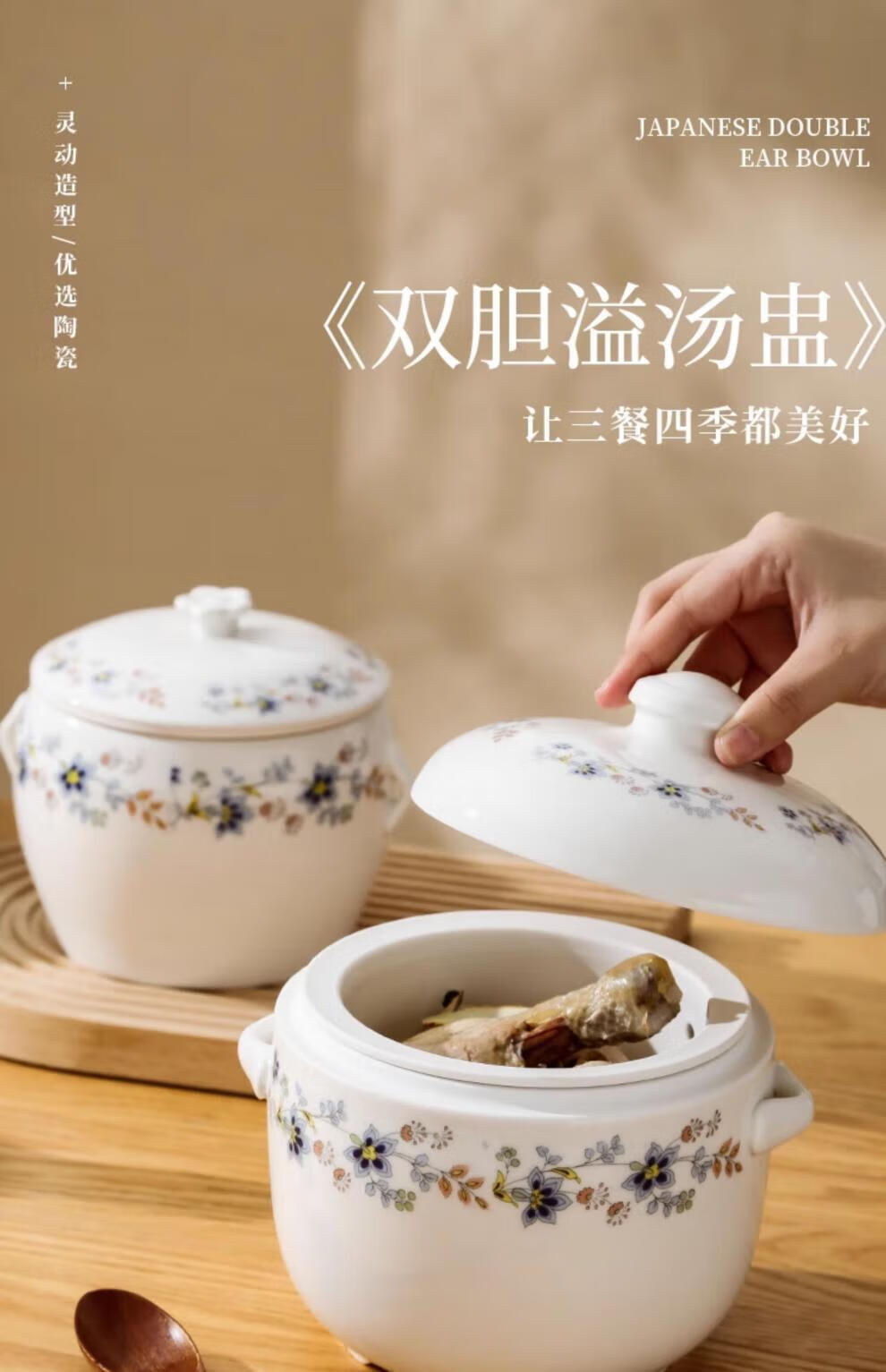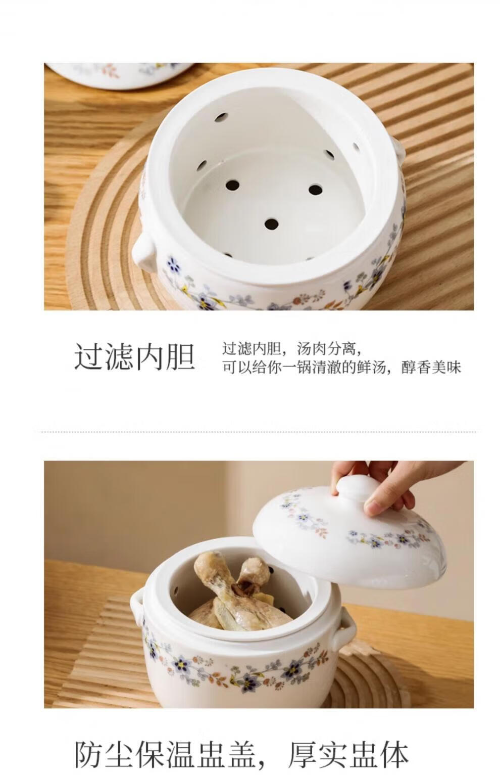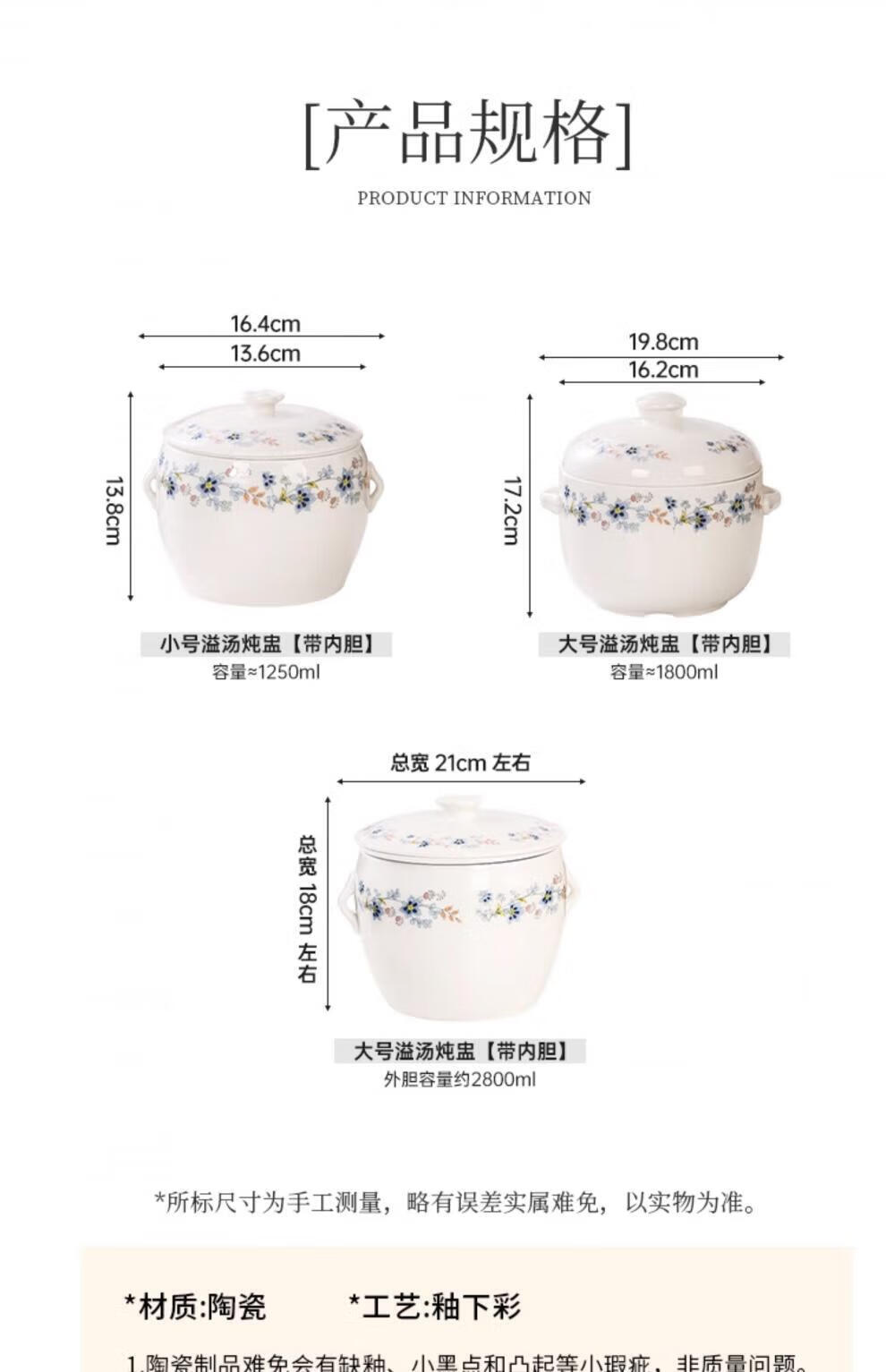 Minnan overflow soup stew pot earthen pot soup pot ceramic stew pot water-proof stew large soup cup overflow duck soup with liner for dripping soup Double-ear stew pot 400ml without liner