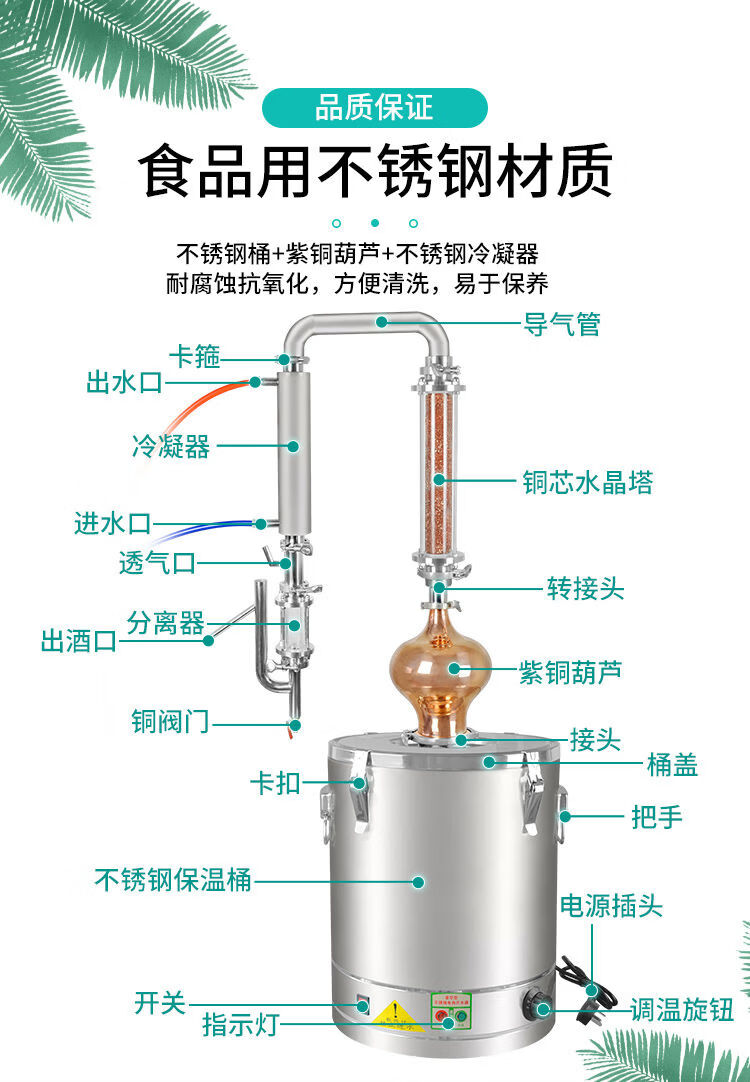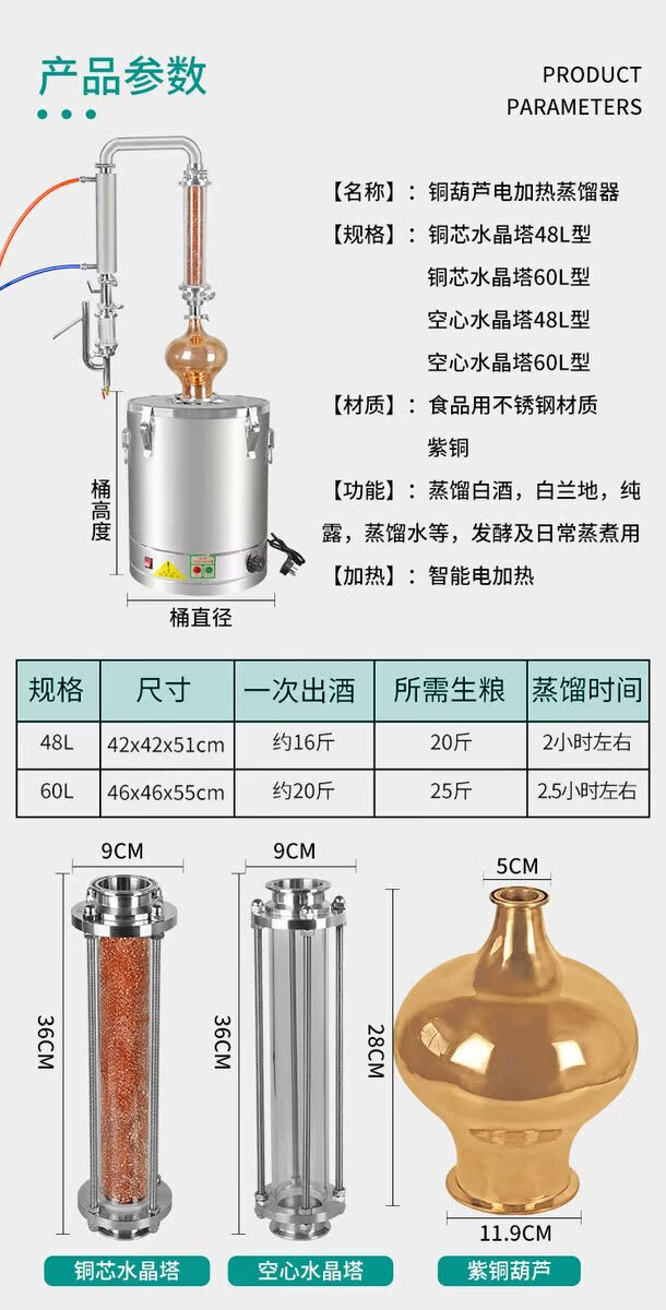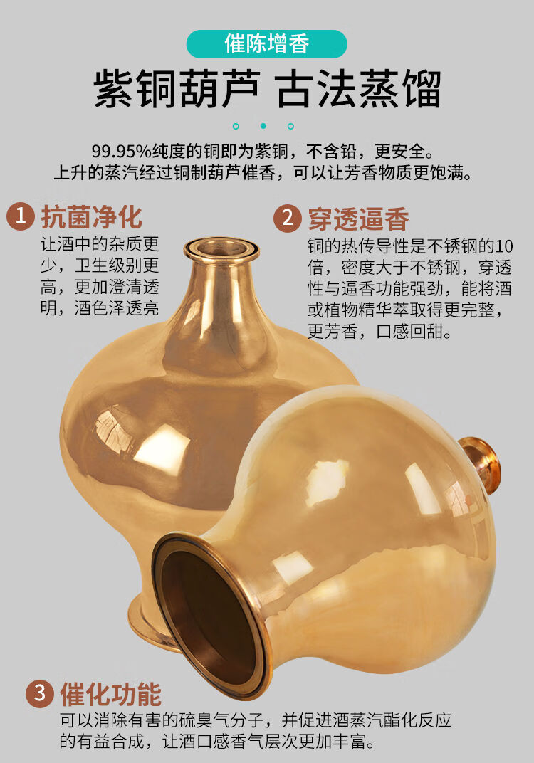 Fantasy small gourd distillation hydrosol essential oil machine distillation gourd head distillation extraction brewing equipment 60 type copper core crystal tower copper gourd style