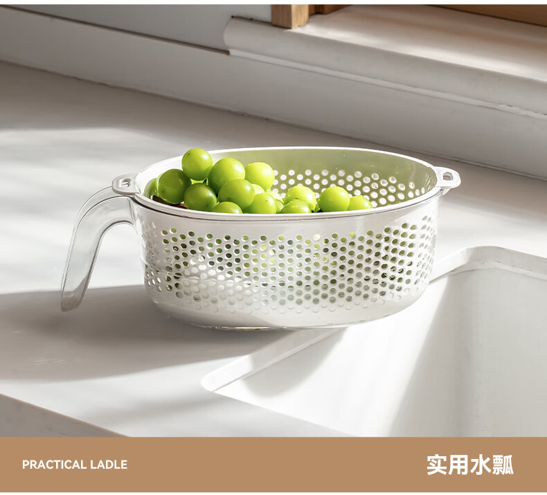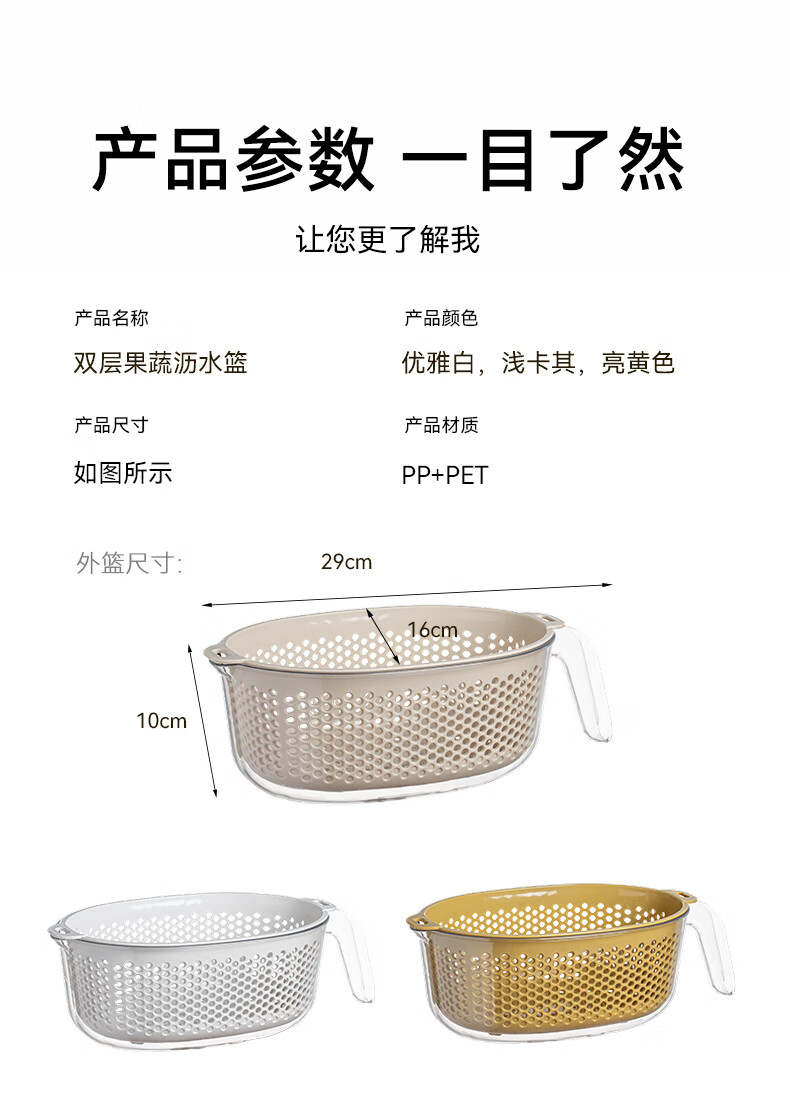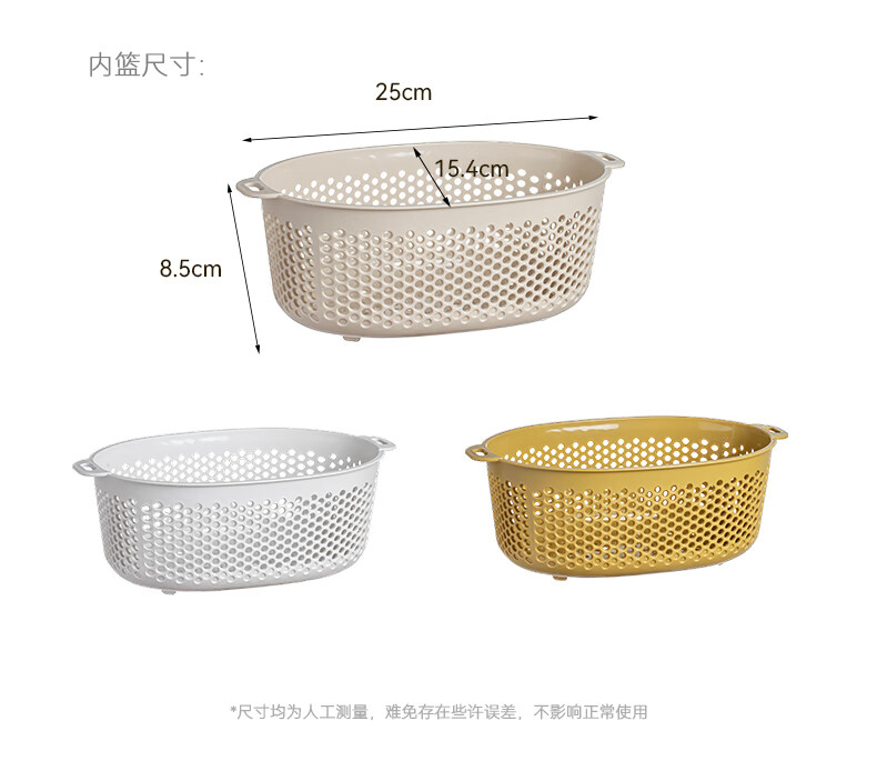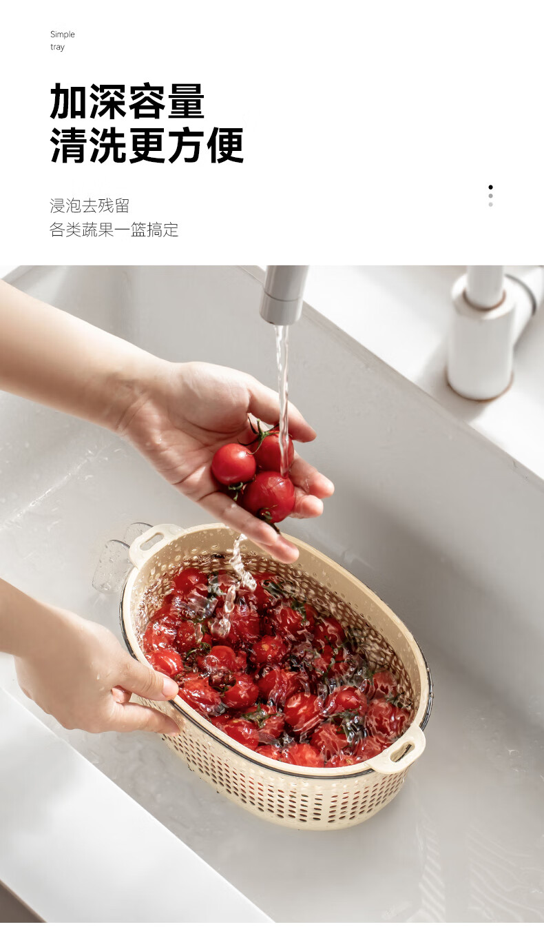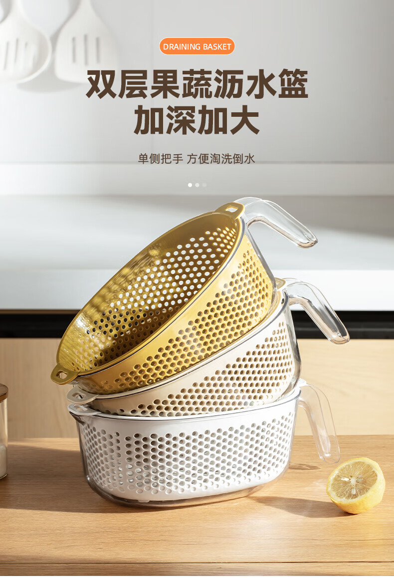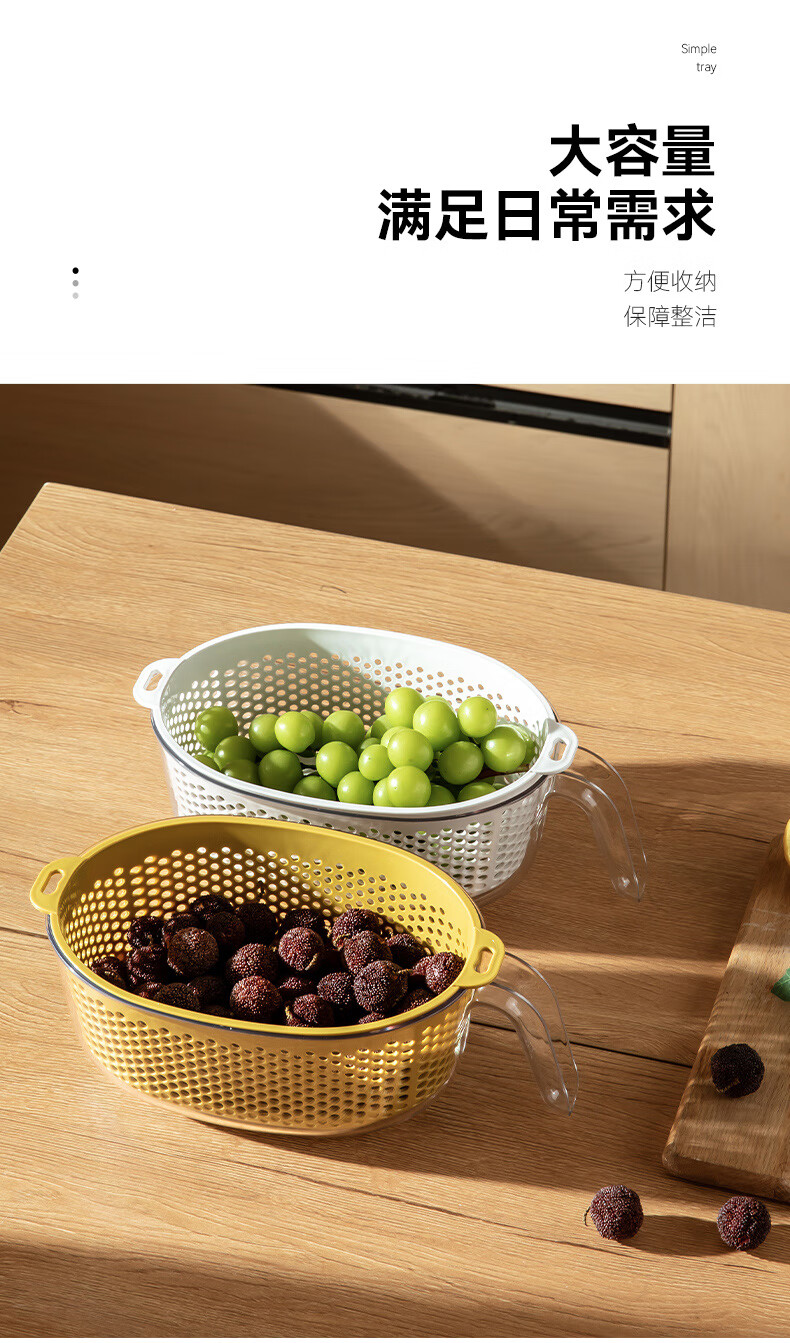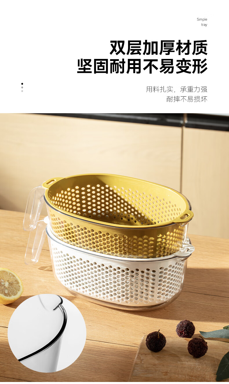 Double-layered vegetable sink drain basket multi-functional kitchen household new fruit plate living room strainer basket washing vegetable basket double-layered drain basket with handle - light khaki