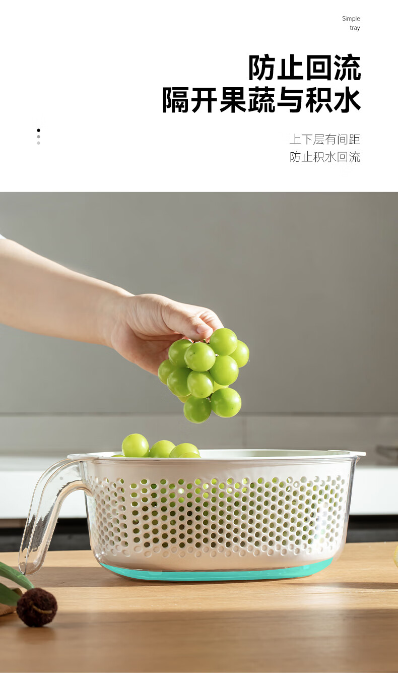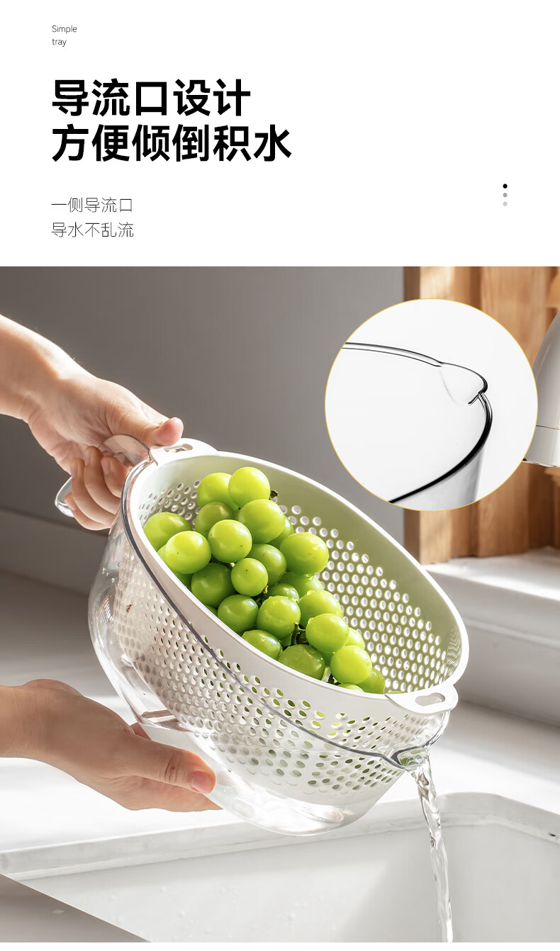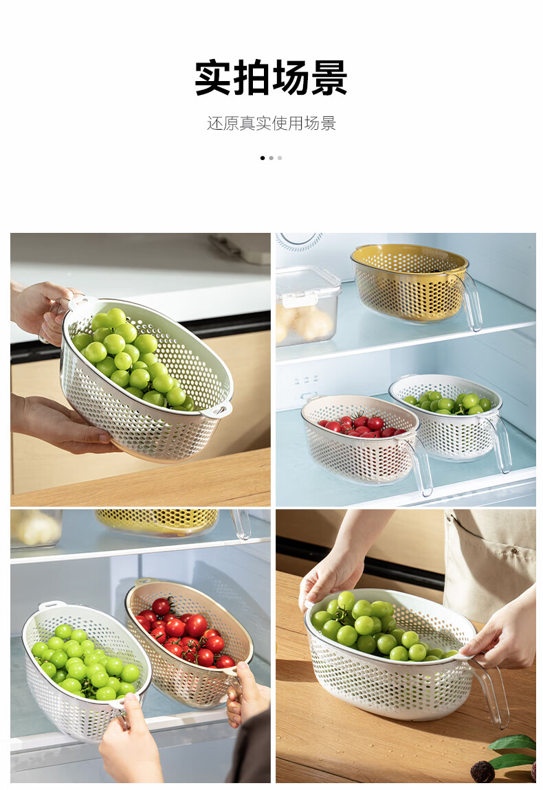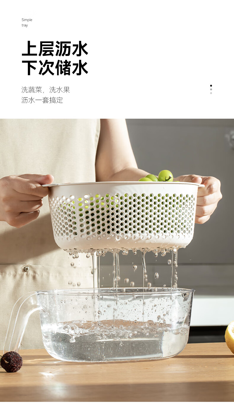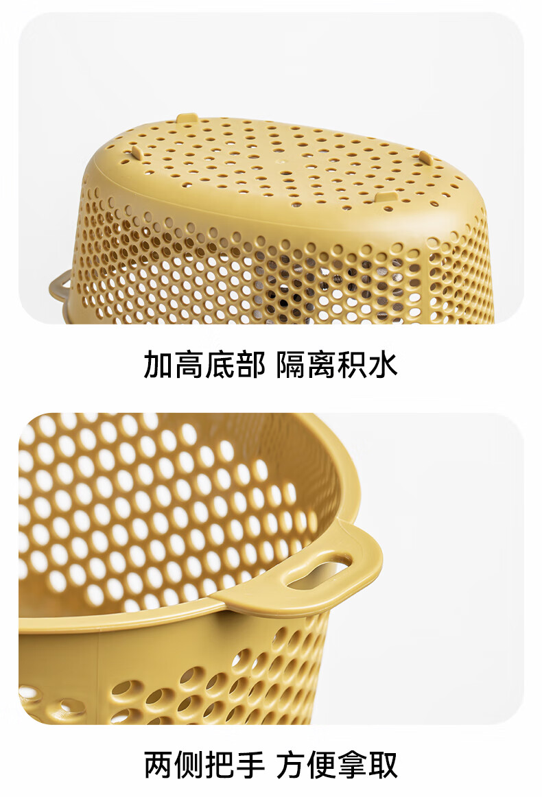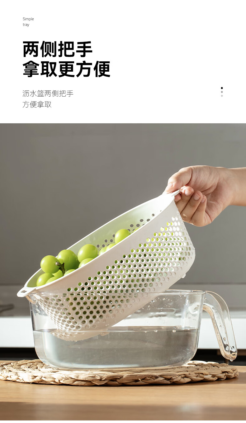 Double-layered vegetable sink drain basket multi-functional kitchen household new fruit plate living room strainer basket washing vegetable basket double-layered drain basket with handle - light khaki