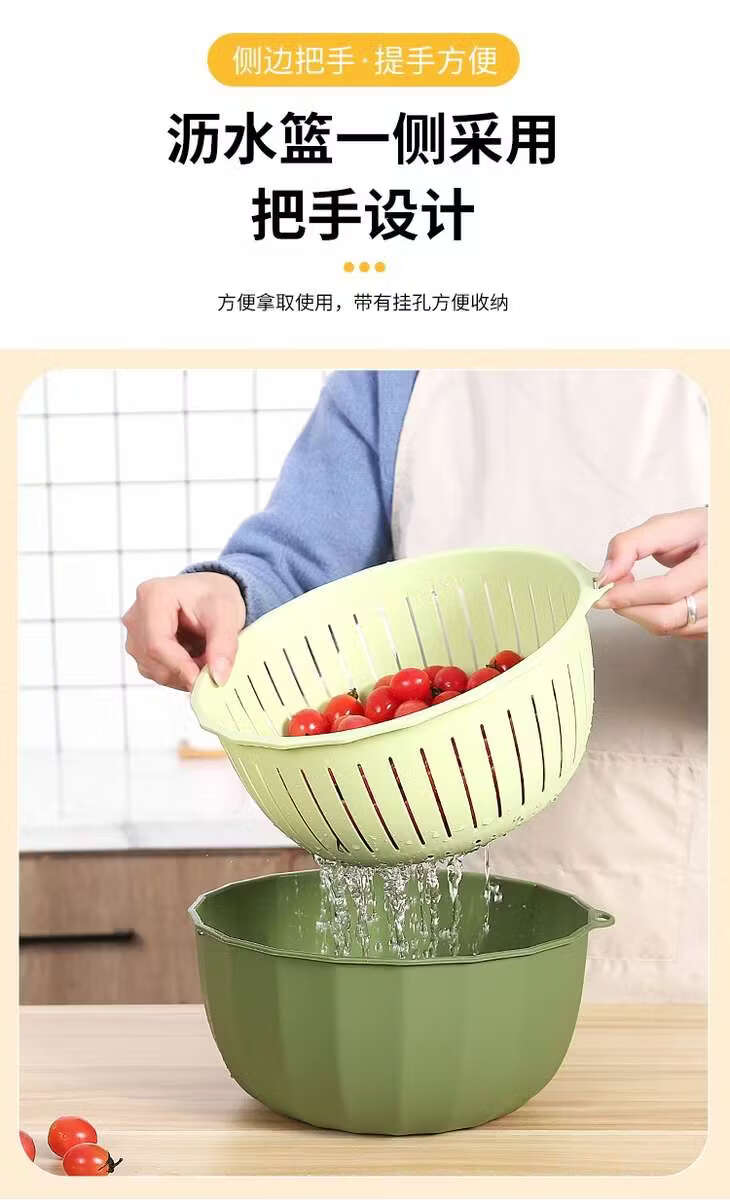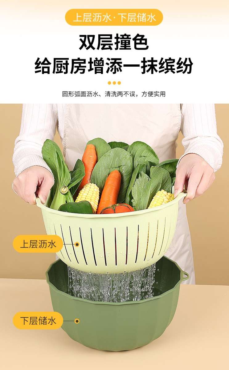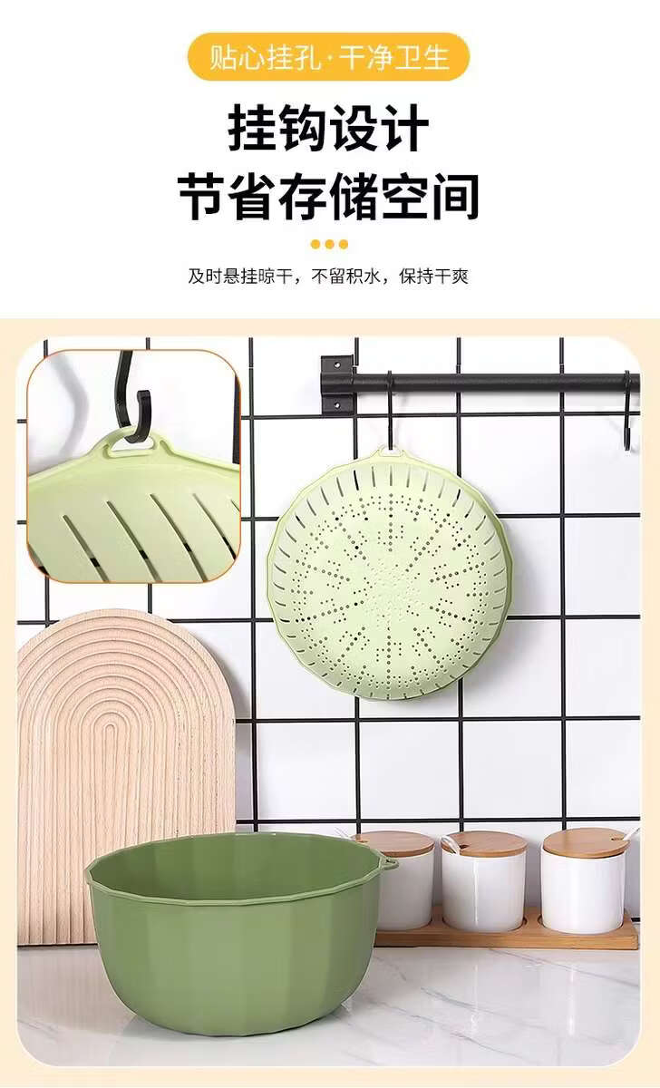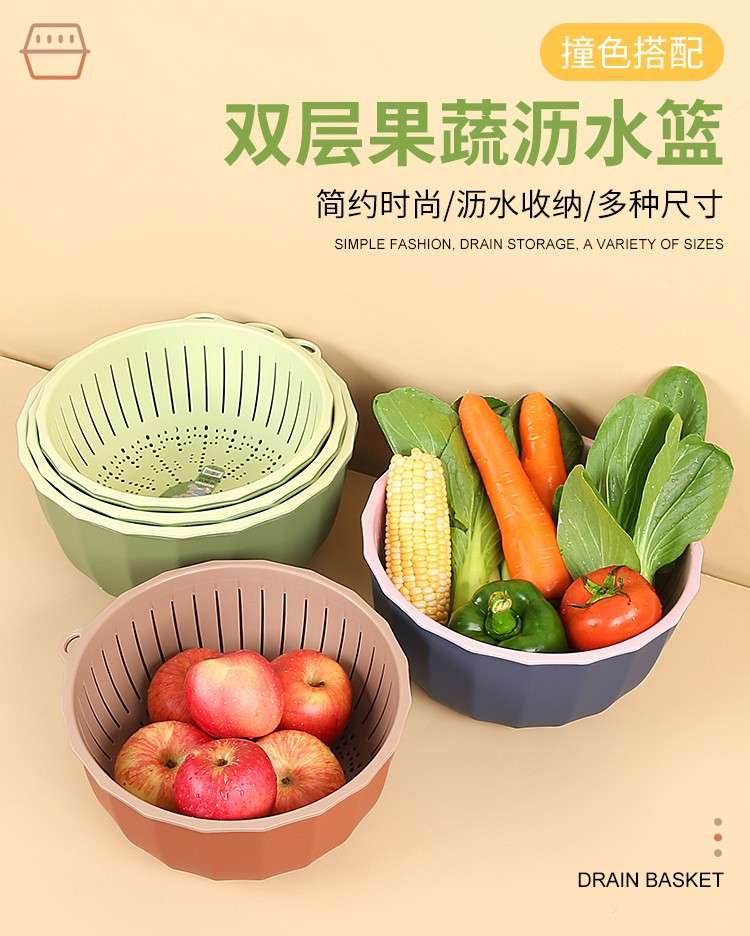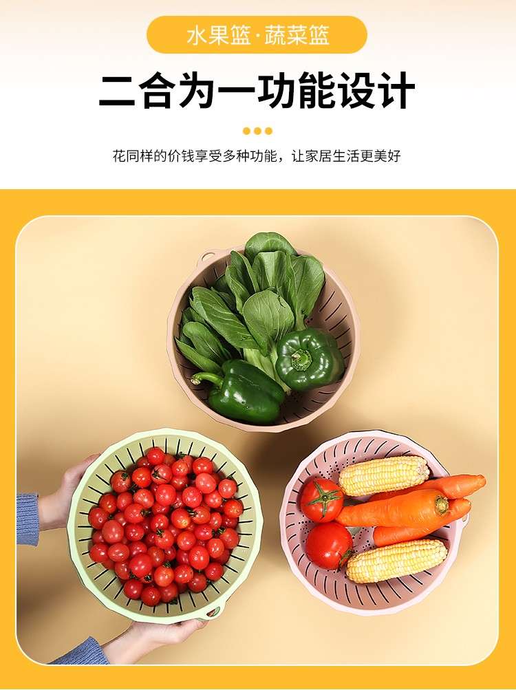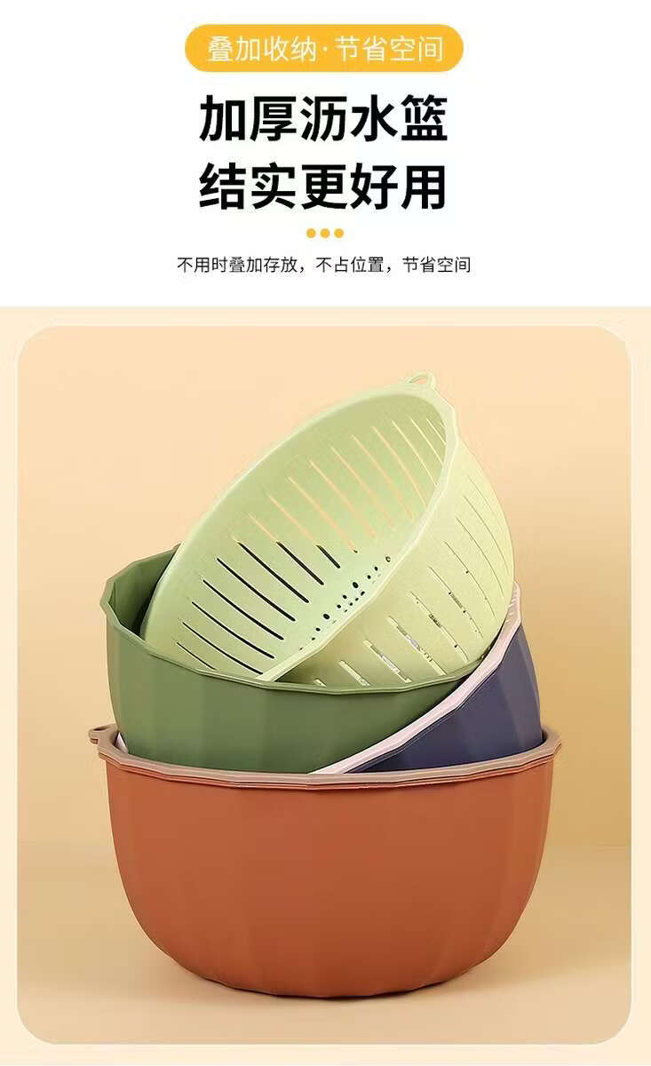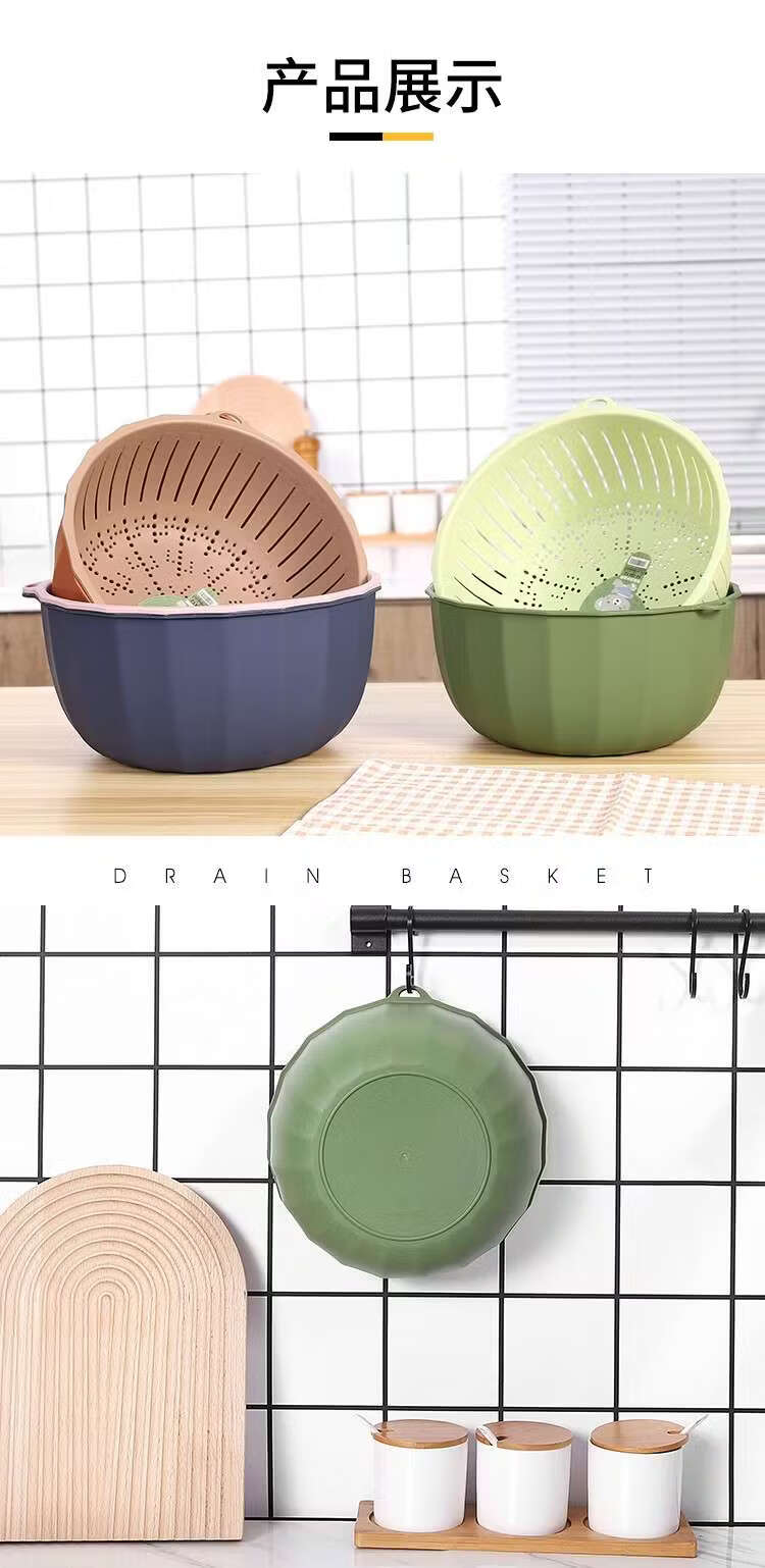 Yusenyi Multifunctional Thickened Vegetable Basket Hanging Storage Double-layer Plastic Fruit Basket Kitchen Rice Blue Drain Strainer Pumpkin Color Rectangular Thickened Double-layer Drain Basket Damage Guarantee