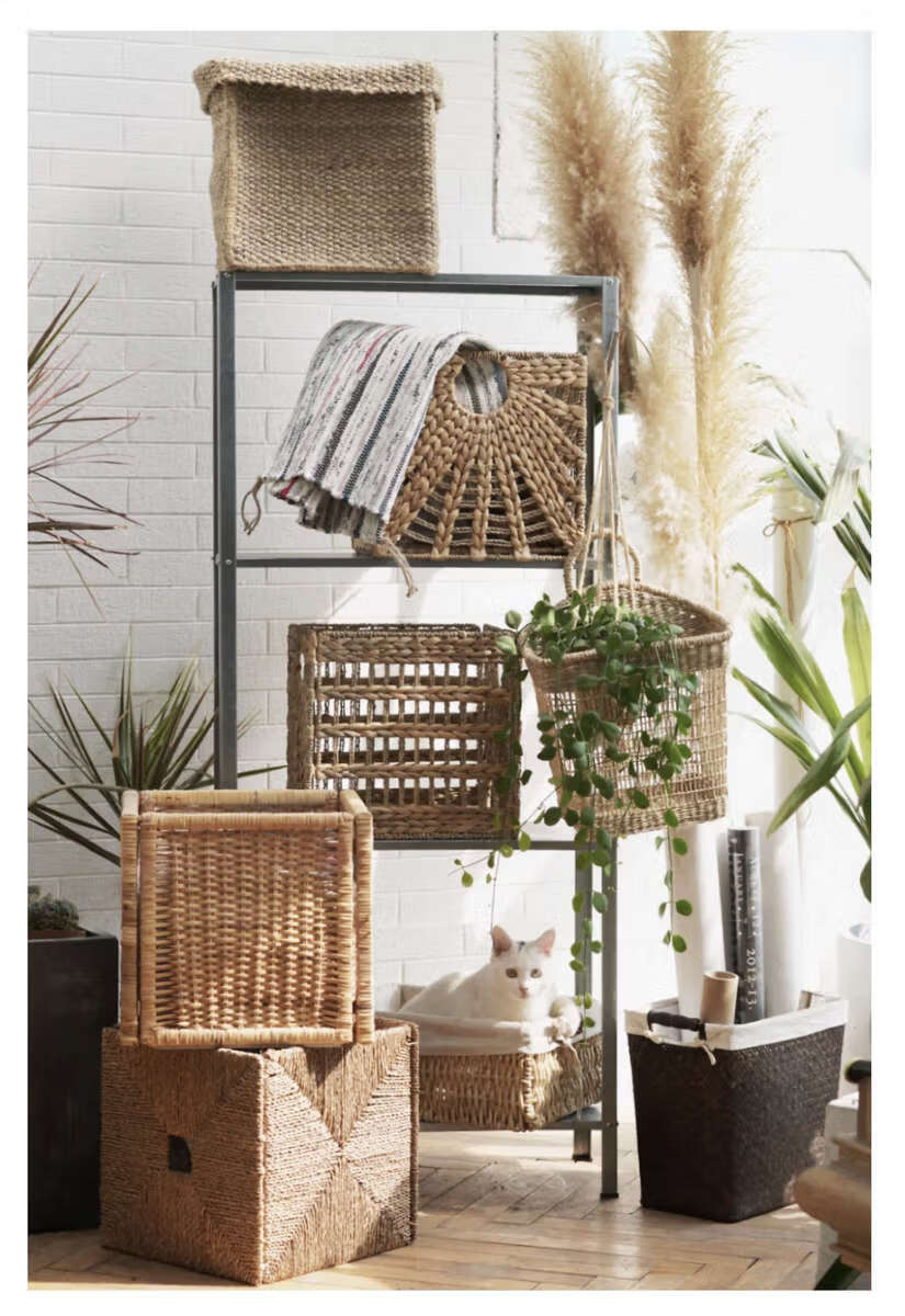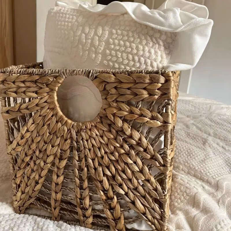 Chanting Water Hyacinth Dirty Storage Basket Woven Basket Imitation Rattan Brown 30x30x30