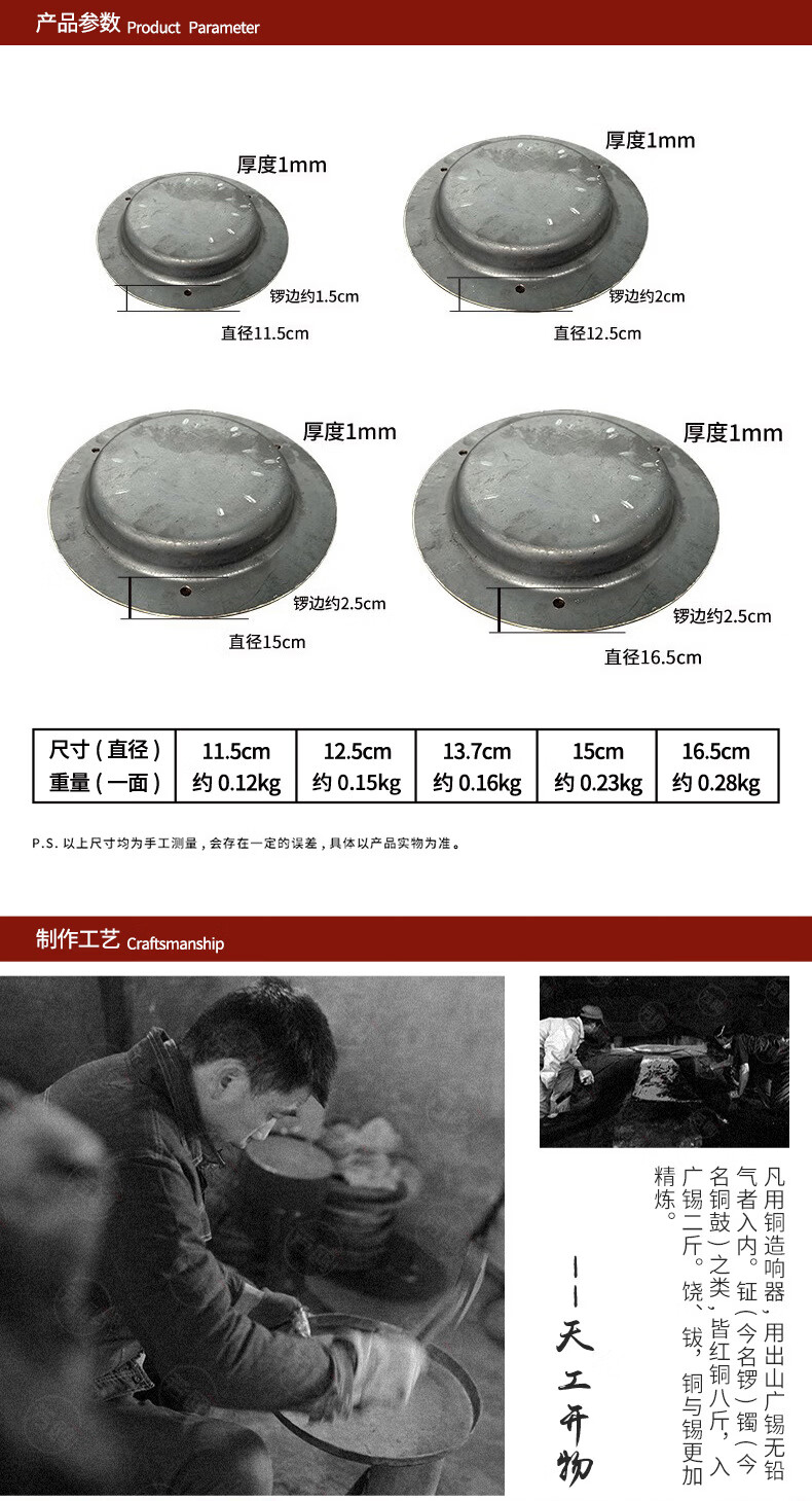 Fangou gong ringing copper cloud gong clang gong board gong clang stalls inducing heartbeat bronze gong moon gong national band 11.5cm