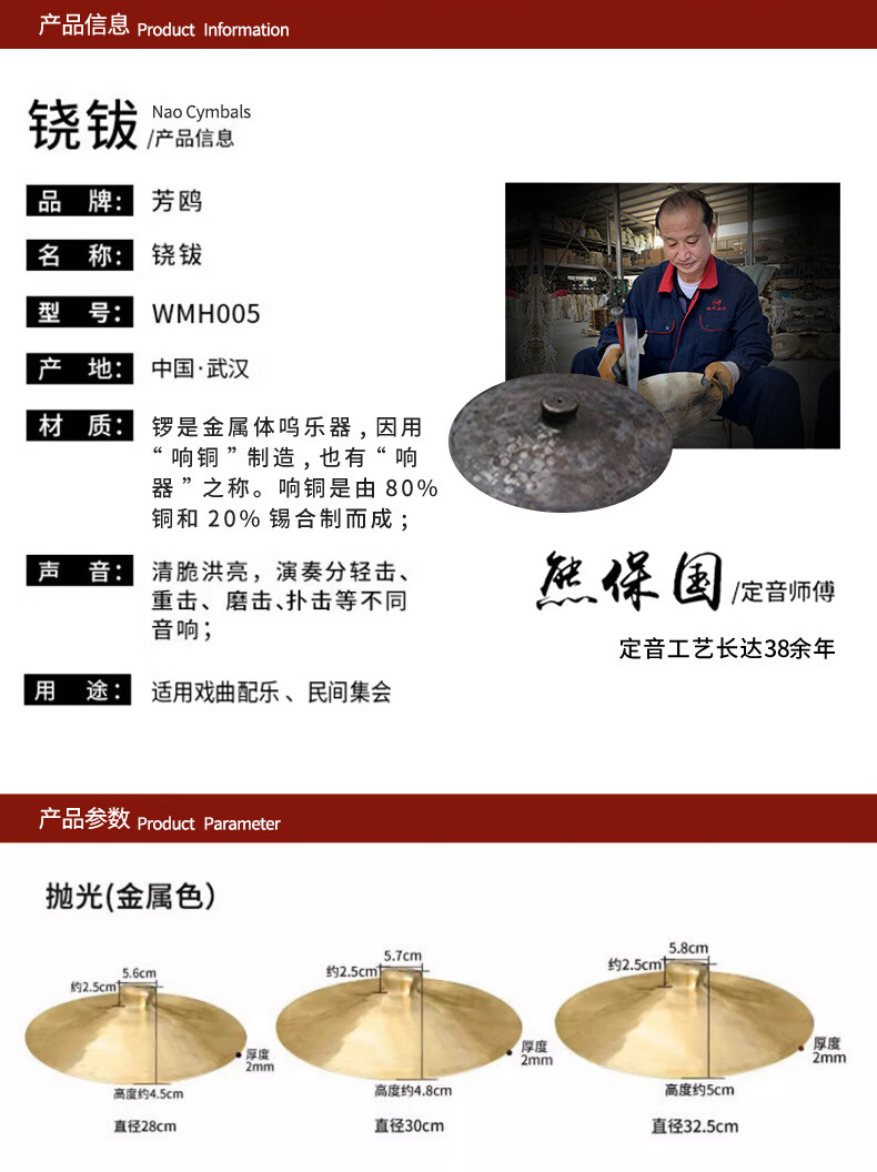 Fangou closed-mouthed cymbals, cymbals, cymbals, opera soundtracks, folk activity soundtracks, brass percussion national instruments, metallic polished 28cm
