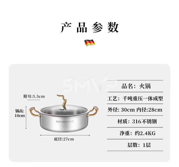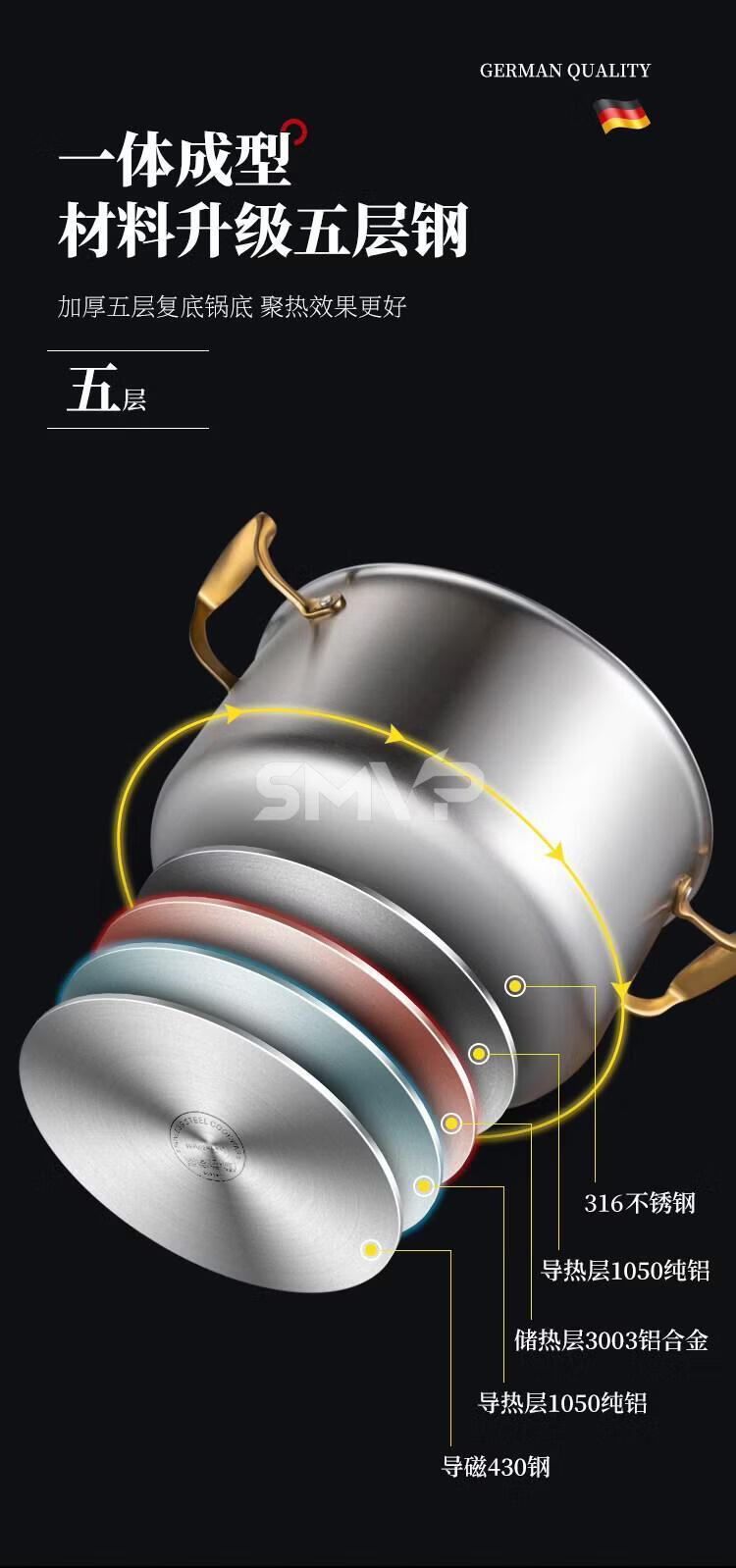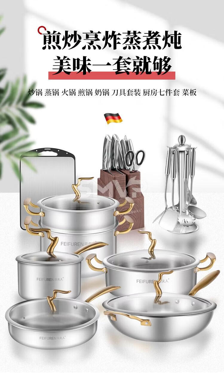 SMVP Germany imported quality pot set full set of home relocation kitchen utensils uncoated frying steamer knife dish frying pan + milk pot