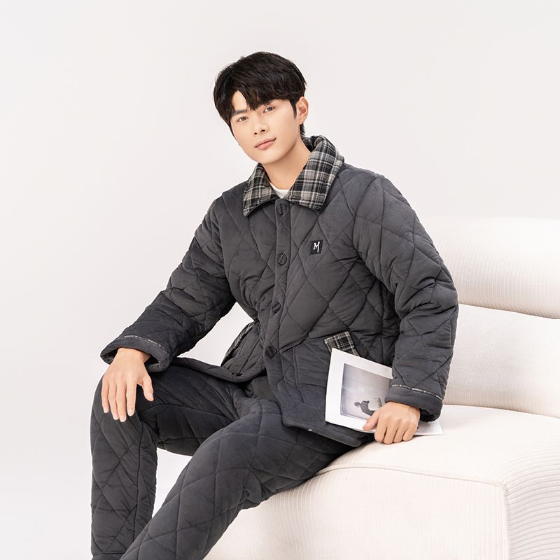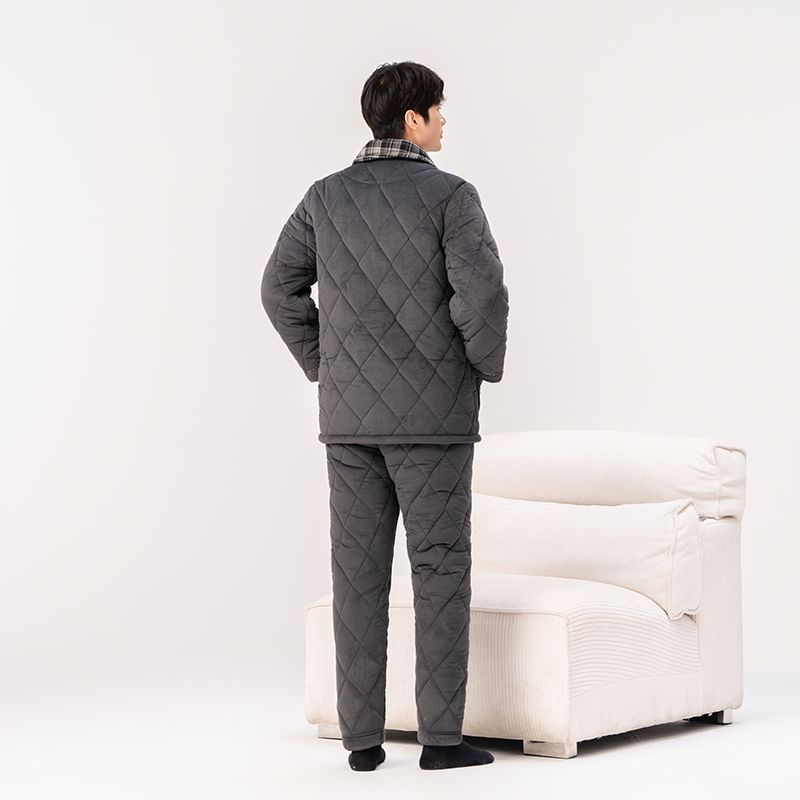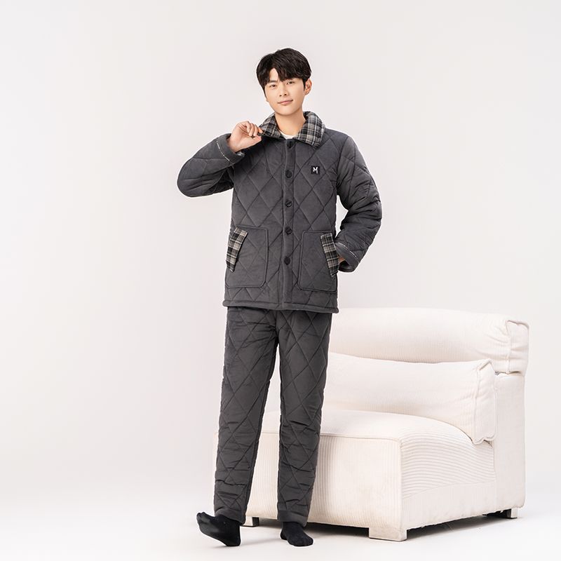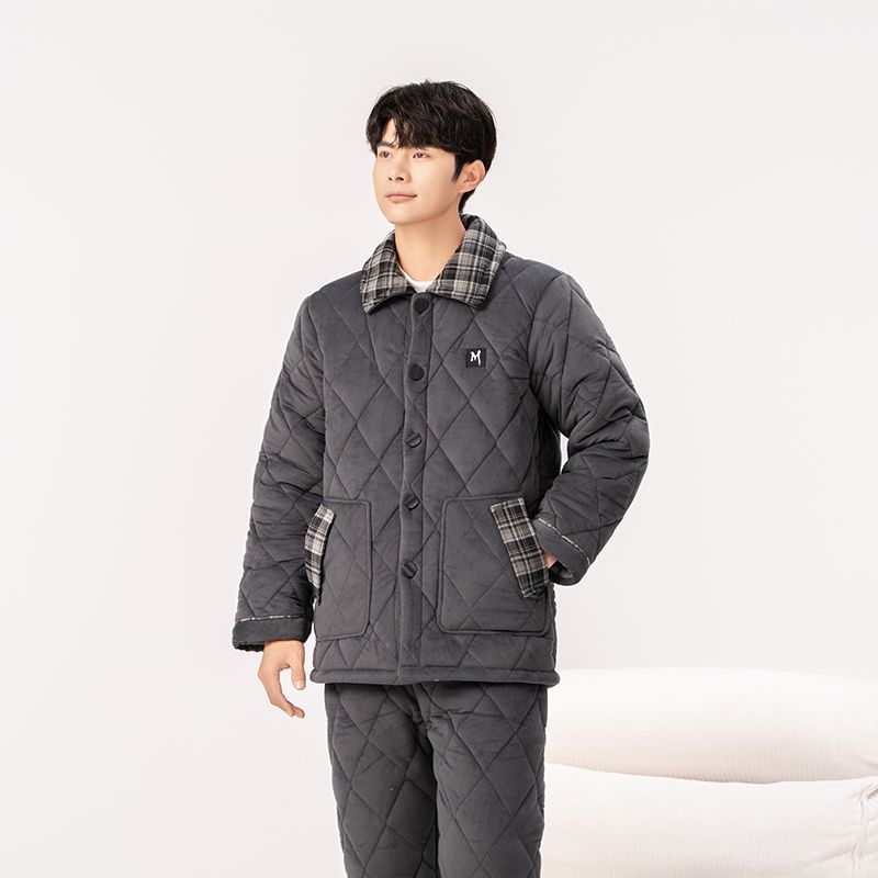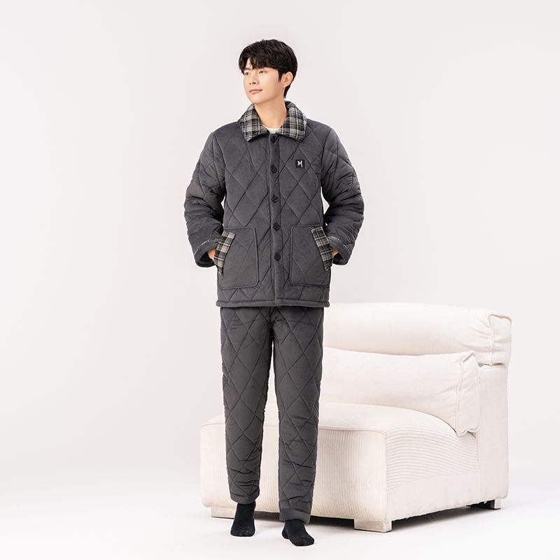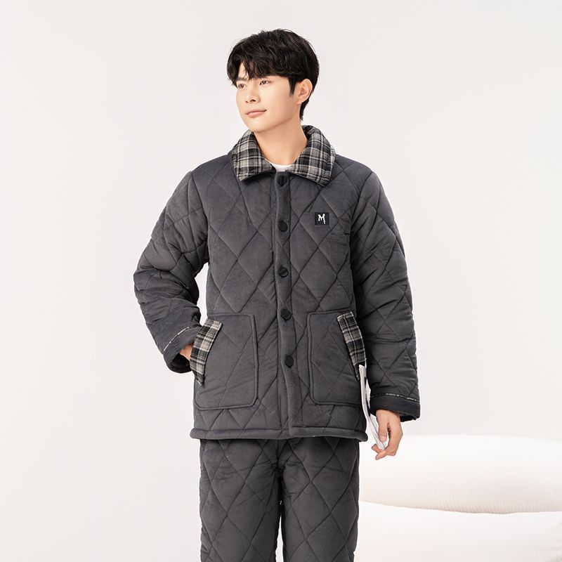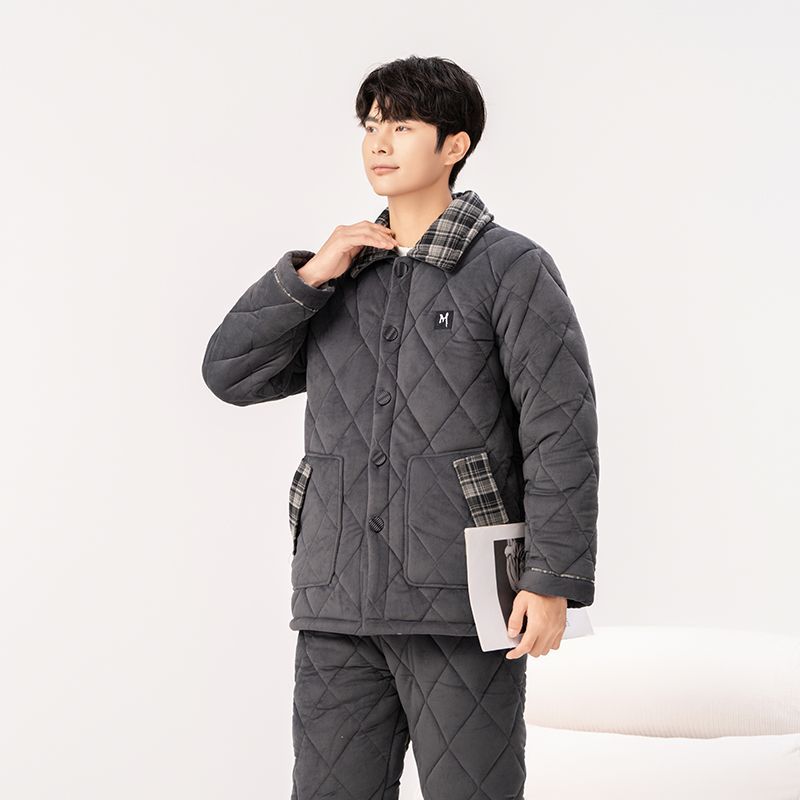 Yalu 2026 new anti-static pajamas for men winter three-layer thickened quilted waterproof and windproof warm home clothes set dark gray - top + pants M embroidery XL 130 catties-150 catties