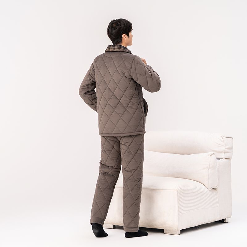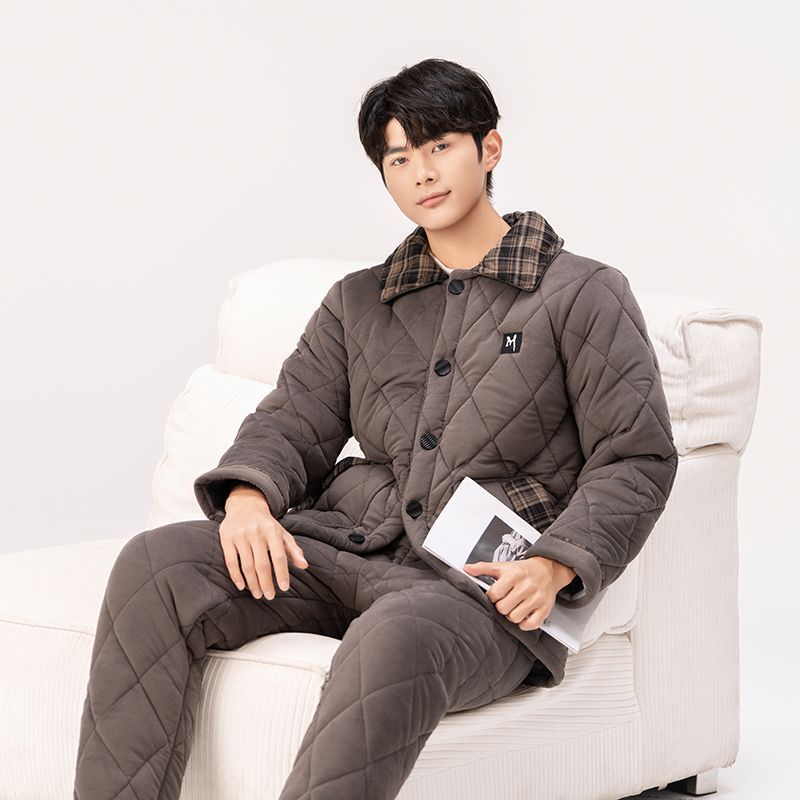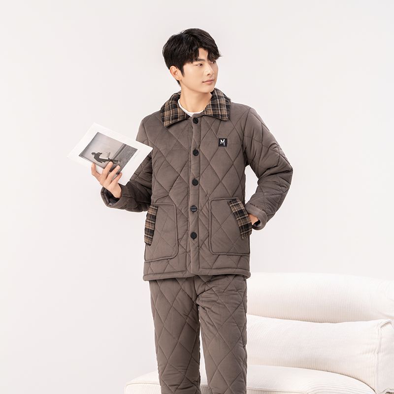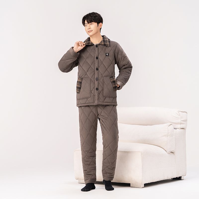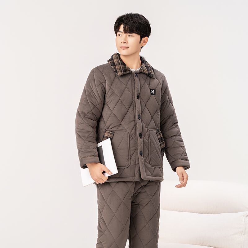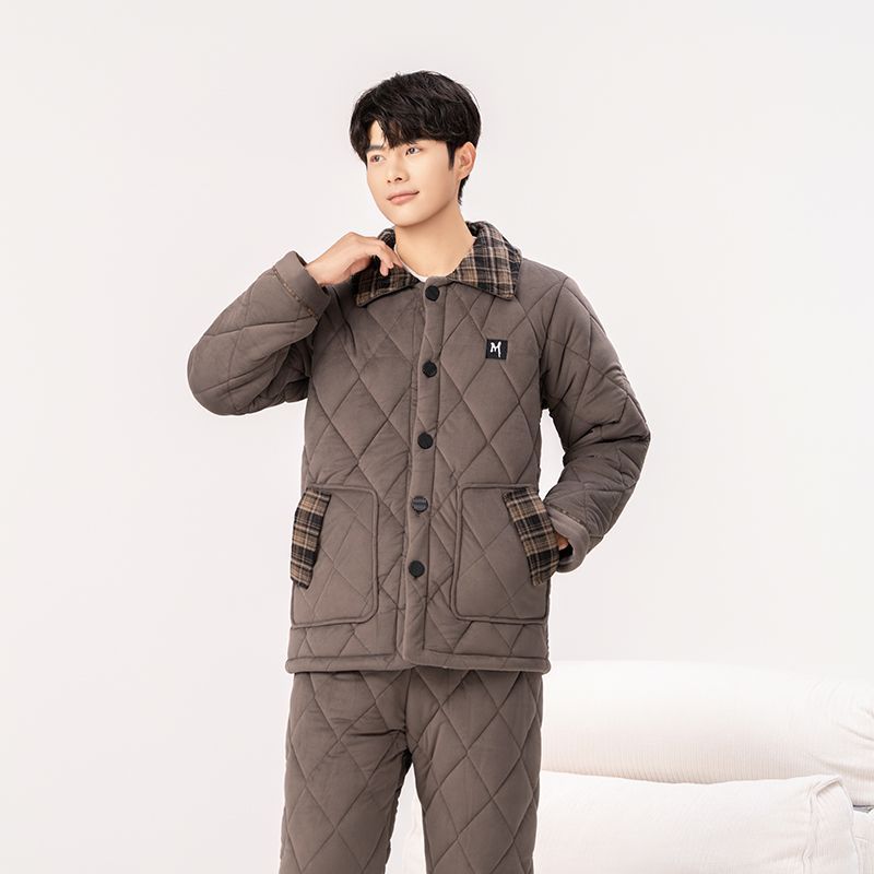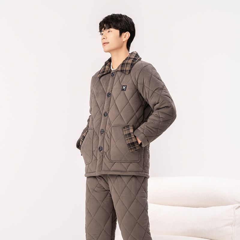 Yalu 2026 new anti-static pajamas for men winter three-layer thickened quilted waterproof and windproof warm home clothes set dark gray - top + pants M embroidery XL 130 catties-150 catties