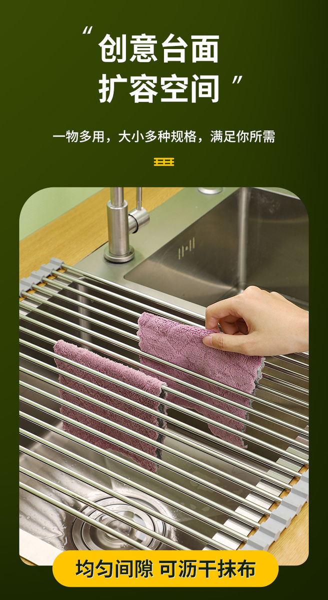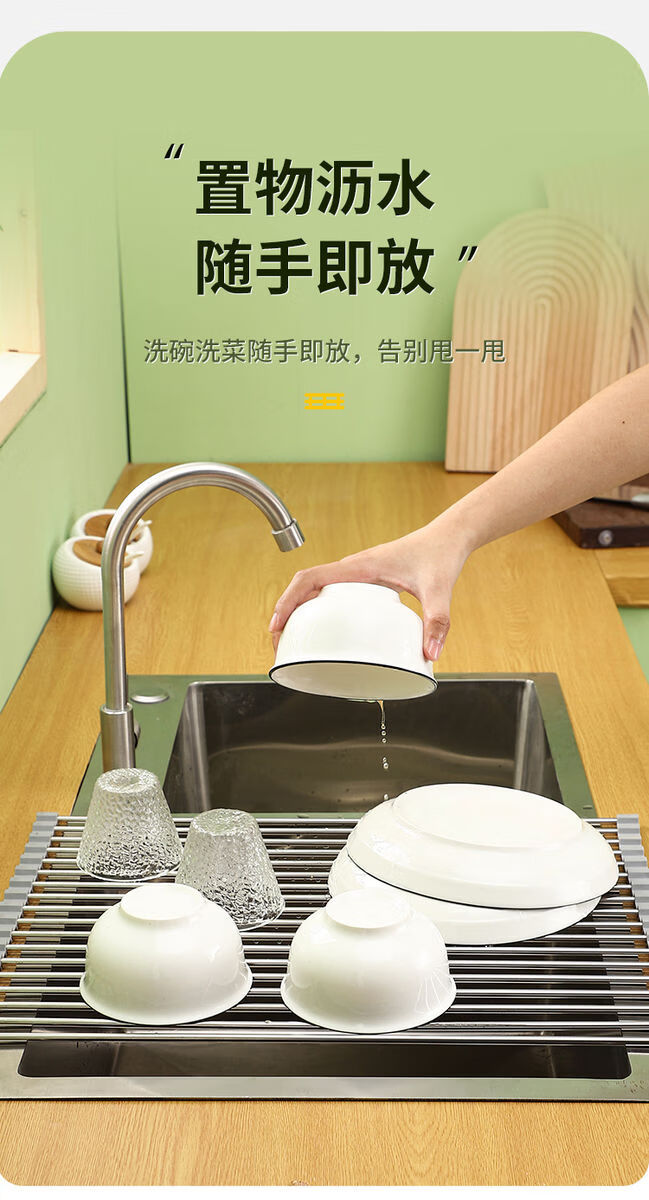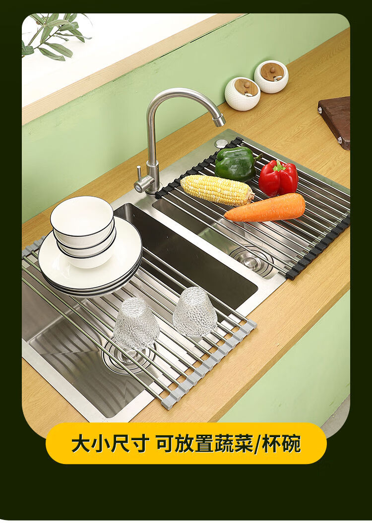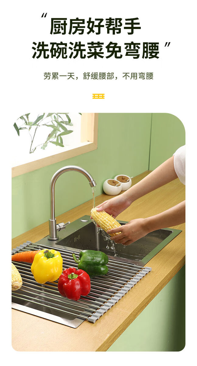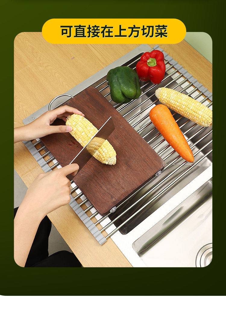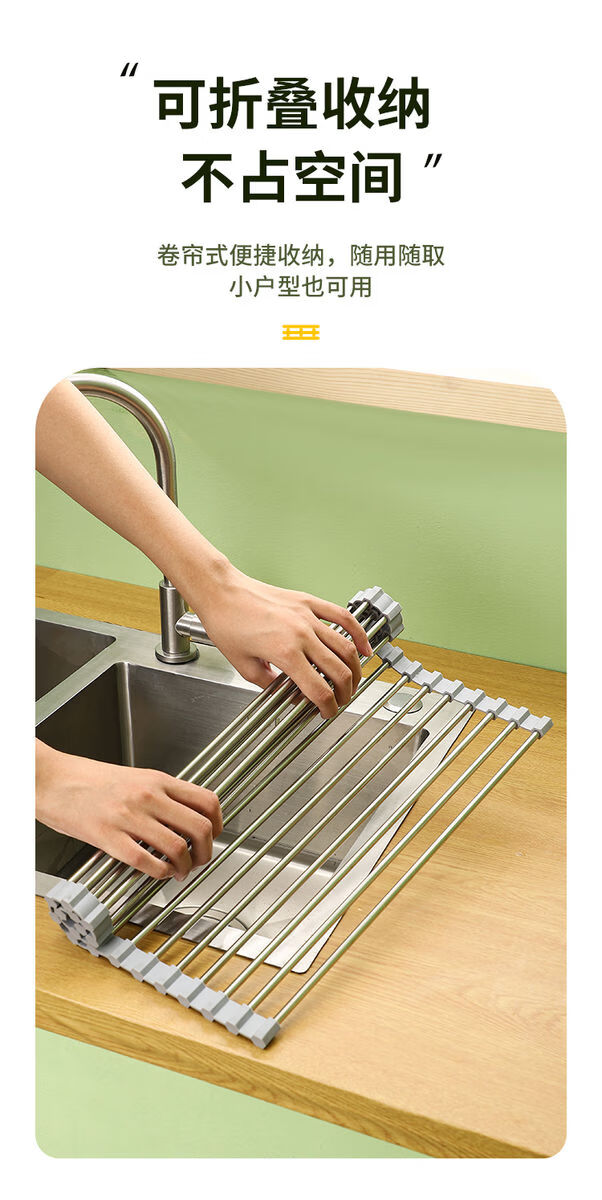 Fantasy Drainage Roller Curtain Kitchen Sink Drainage Rack Foldable Drainage Rack Mildew-proof Storage Rack Length 37CMx Width 35CM 304 Rust Covered
