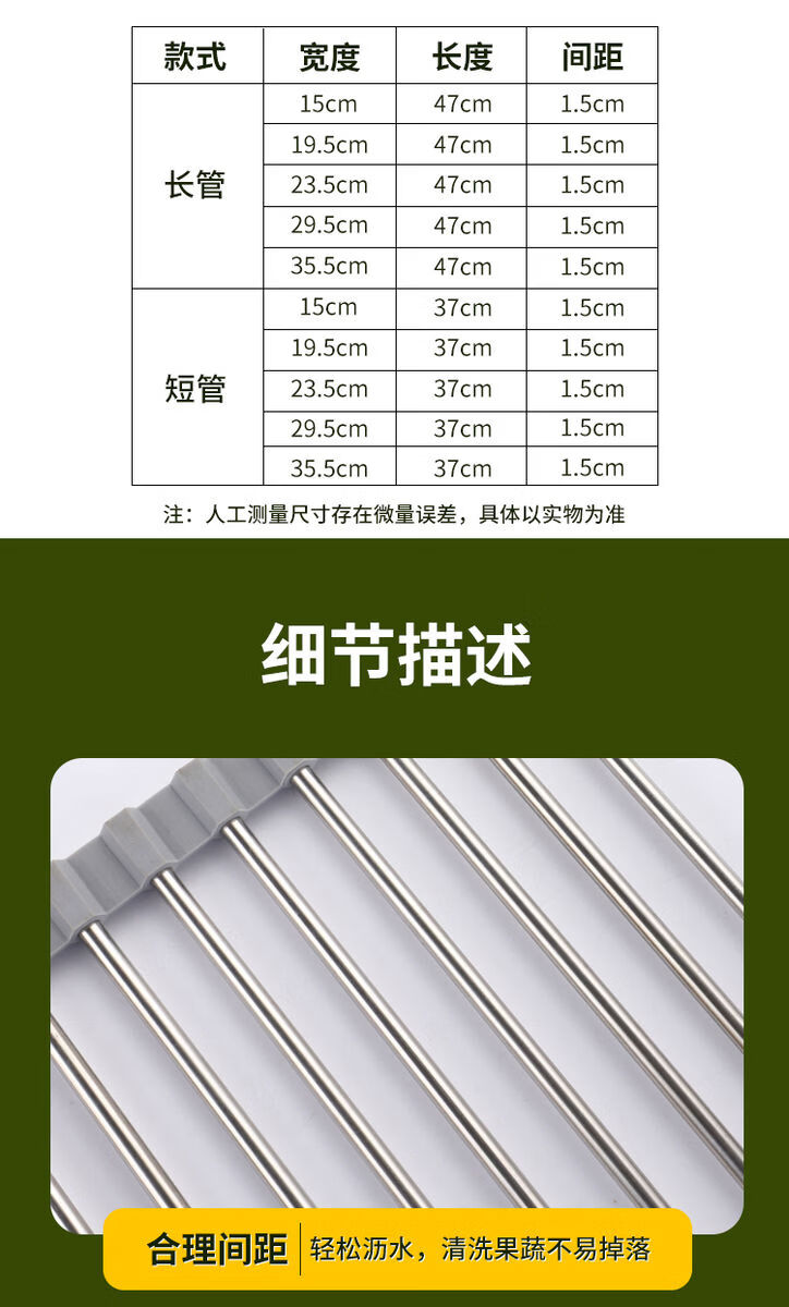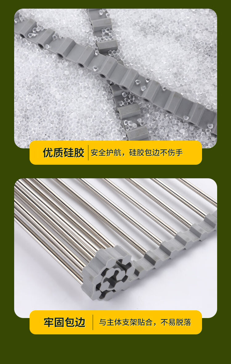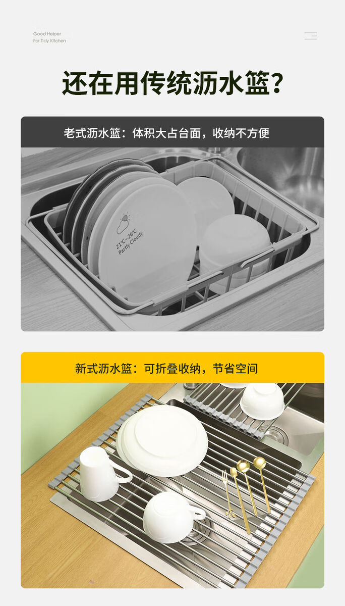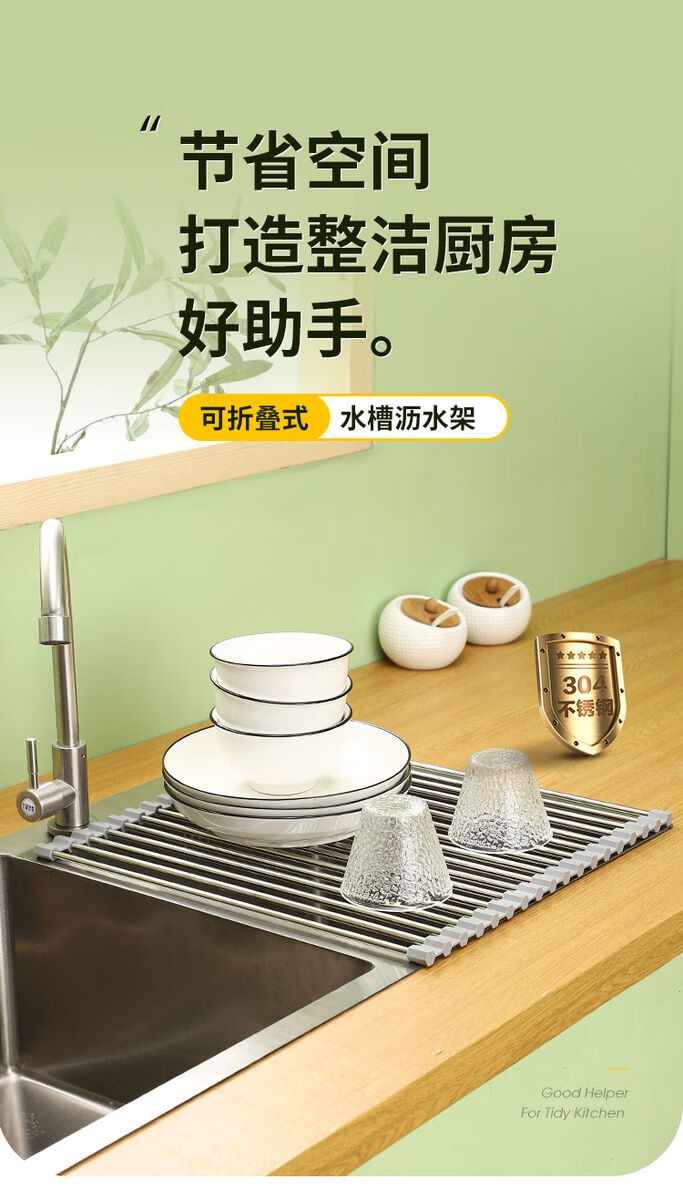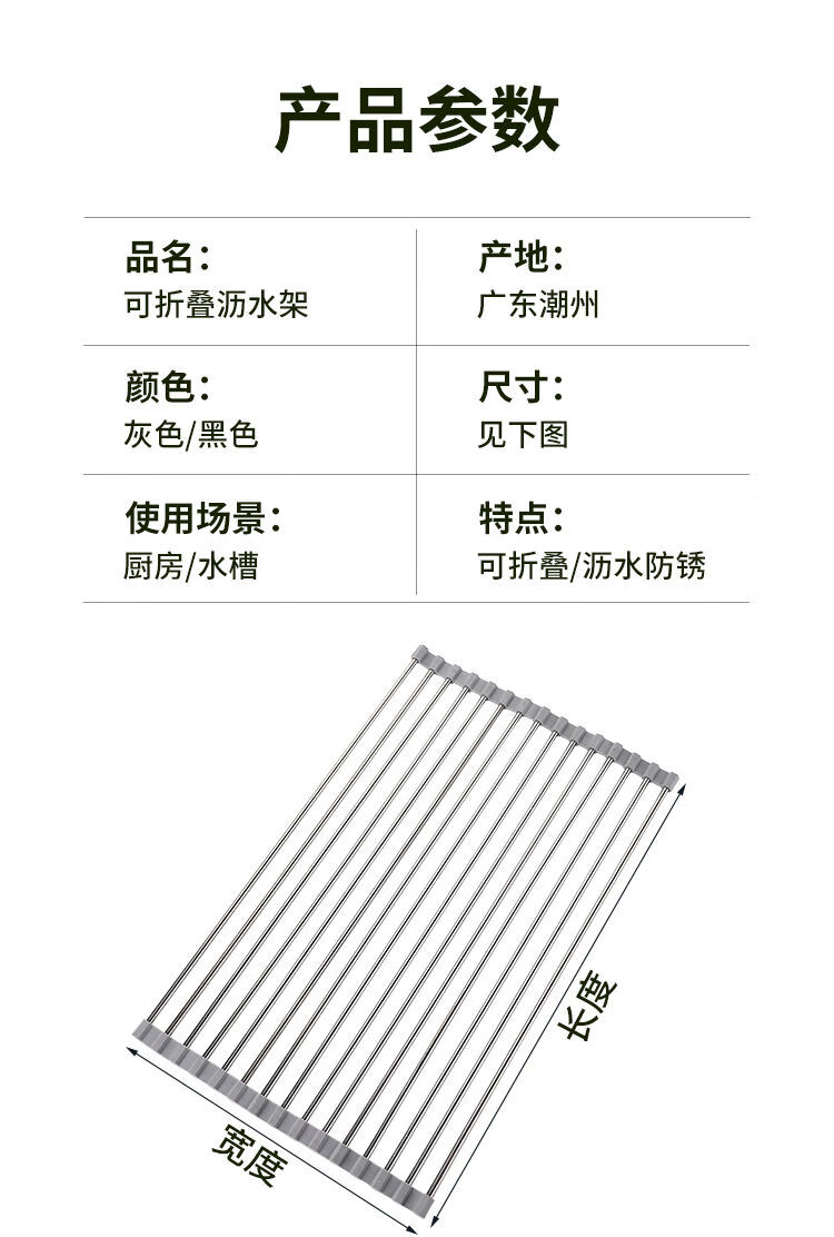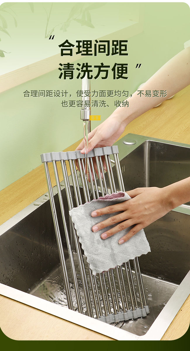 Fantasy Drainage Roller Curtain Kitchen Sink Drainage Rack Foldable Drainage Rack Mildew-proof Storage Rack Length 37CMx Width 35CM 304 Rust Covered