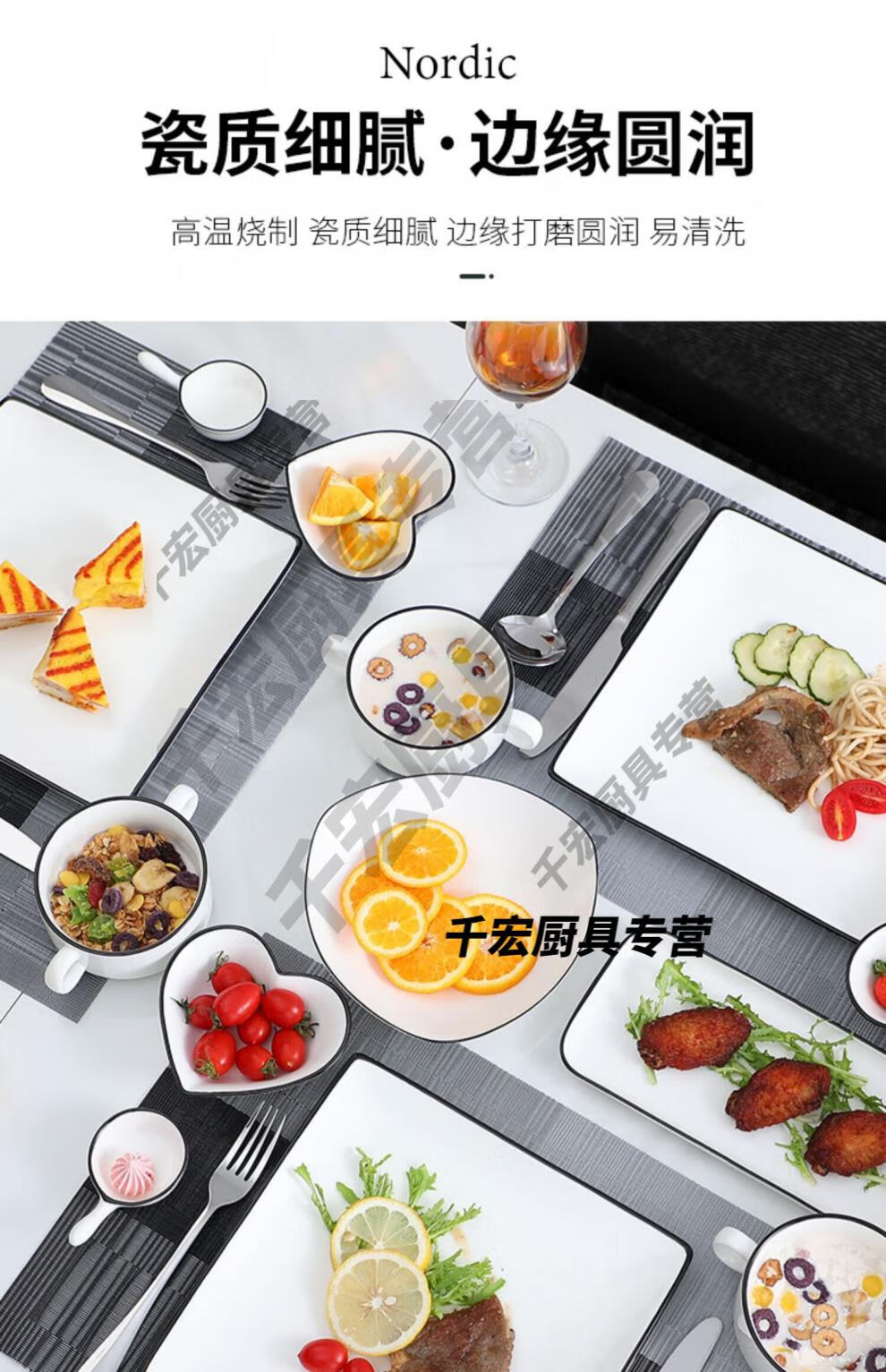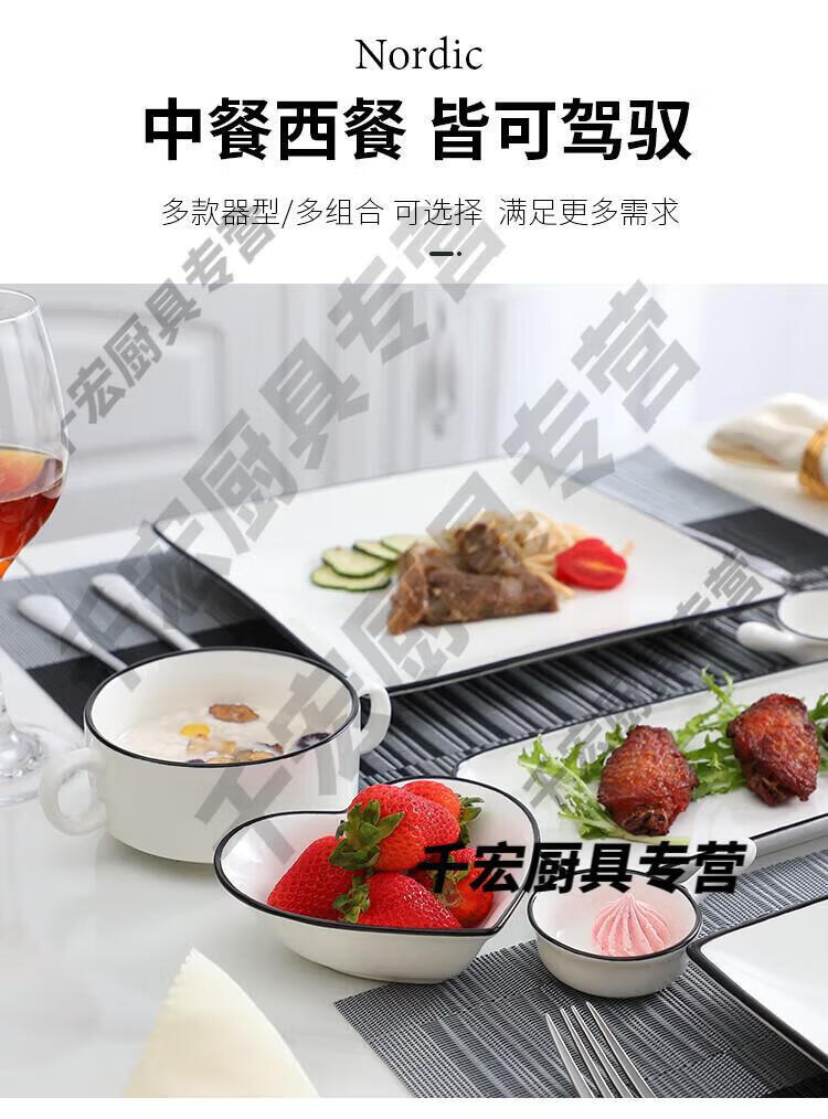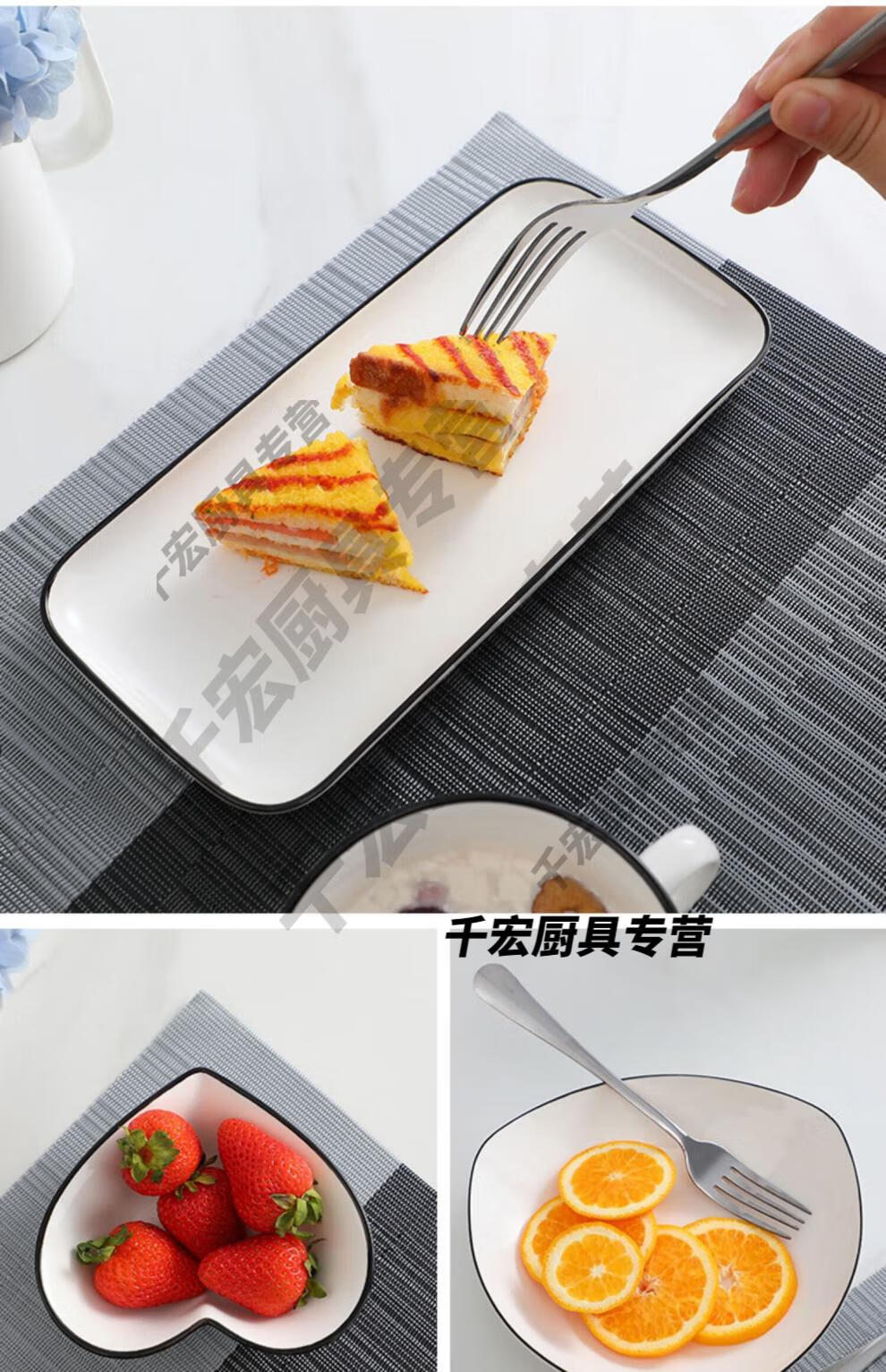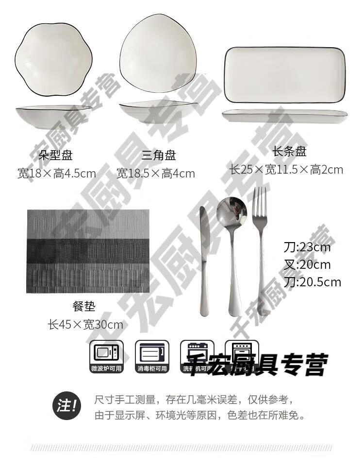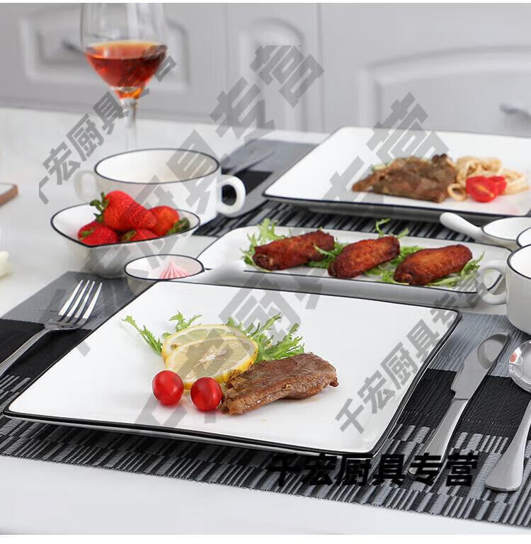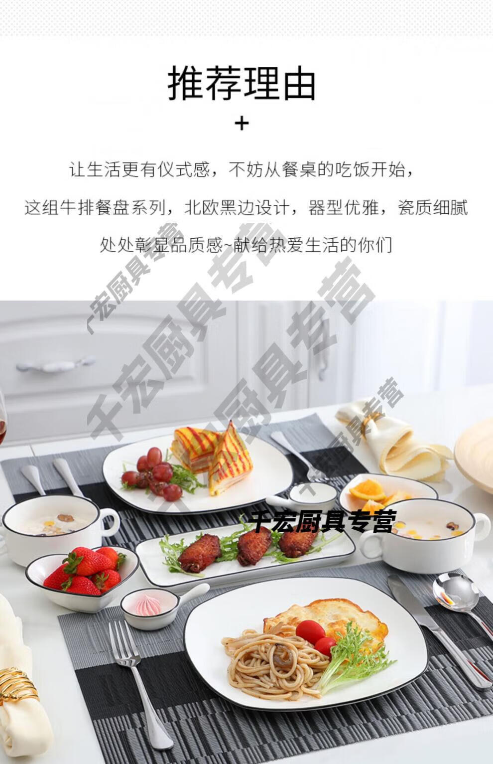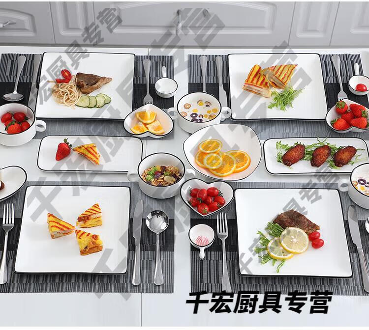 He Jiagong German quality Western tableware steak knife and fork plate set European ceramic steak couple home dining plate double couple set corner style _with steak