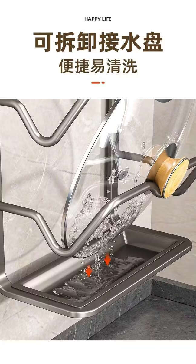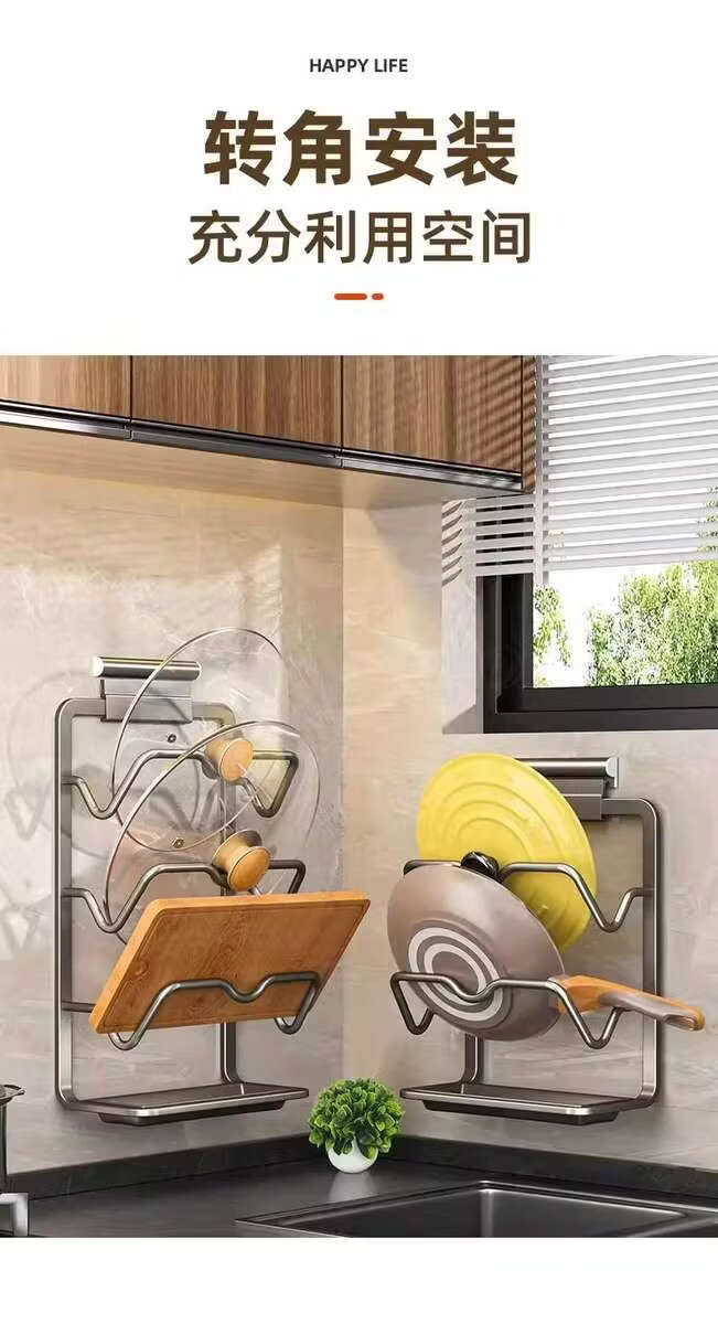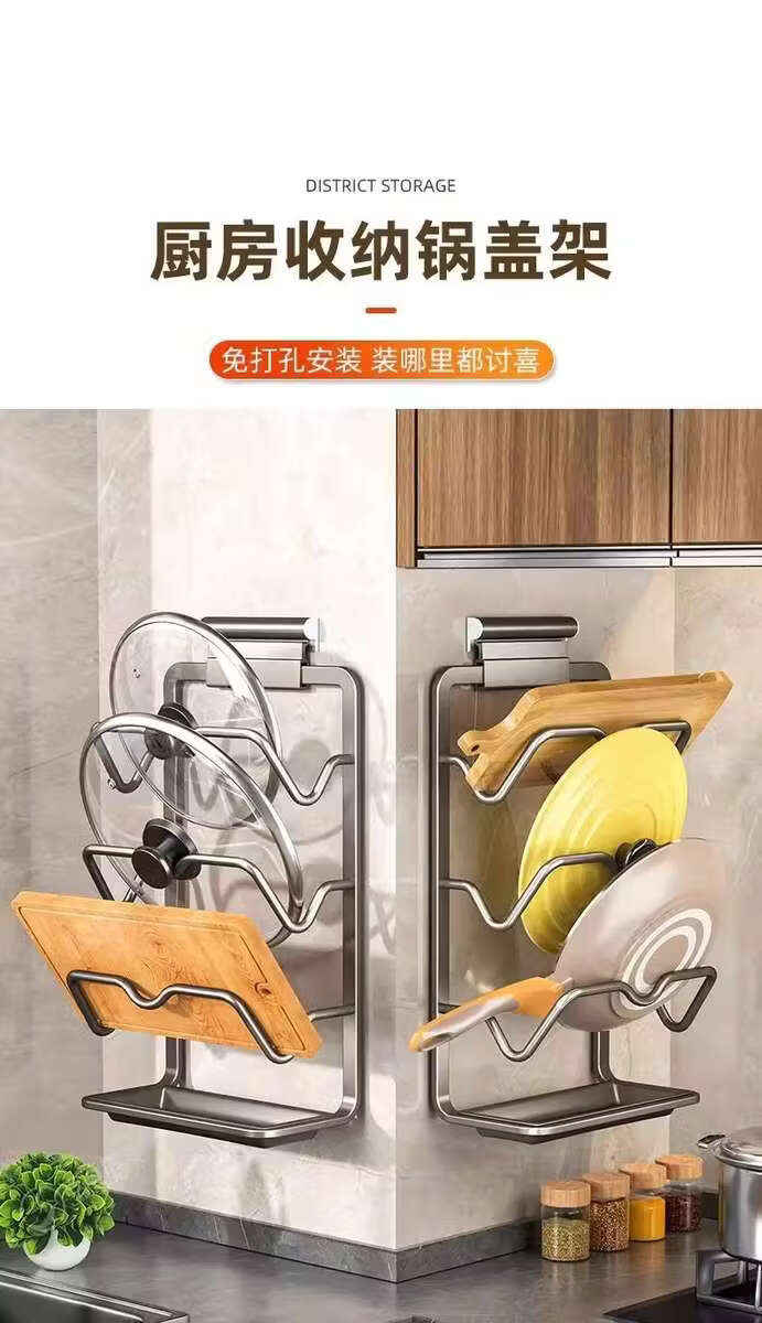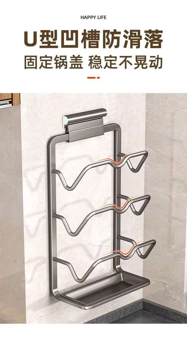 Yusenyi pot lid rack wall-mounted hole-free kitchen storage rack with new multi-functional placer for anvil storage pot lid rack enlarged gun ash three layers