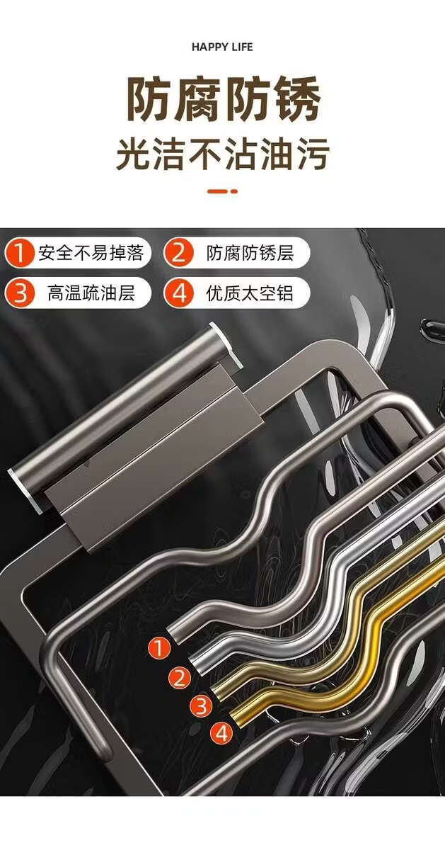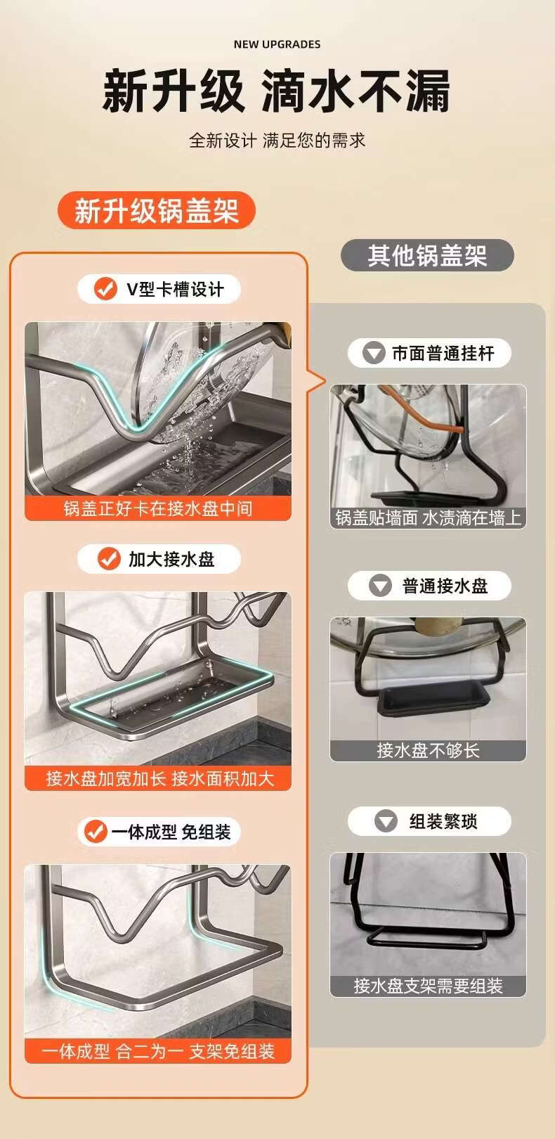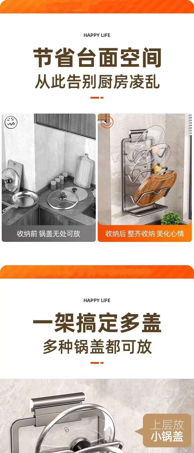 Yusenyi pot lid rack wall-mounted hole-free kitchen storage rack with new multi-functional placer for anvil storage pot lid rack enlarged gun ash three layers