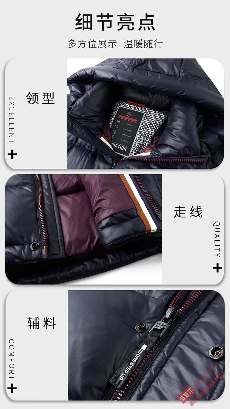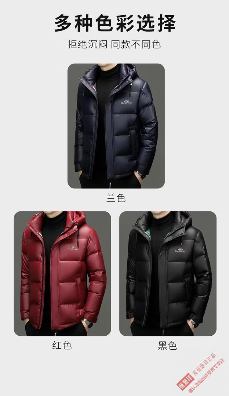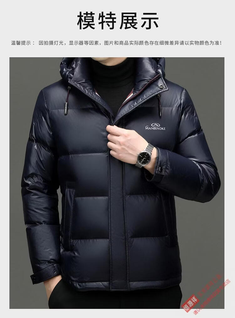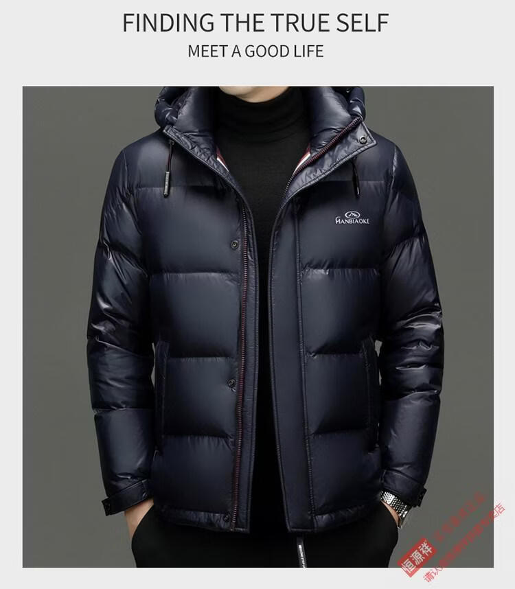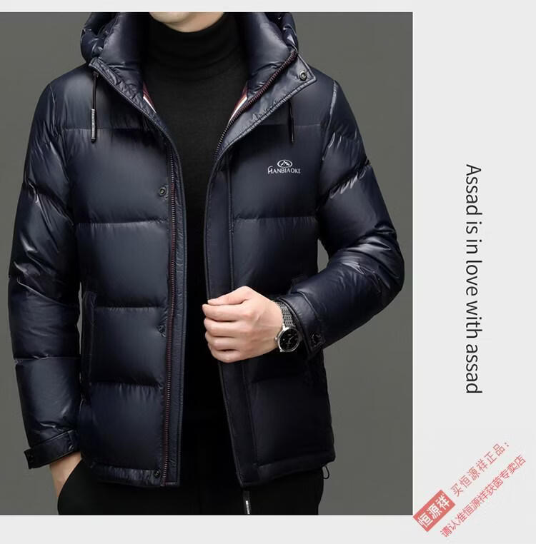 Hengyuanxiang 2025 New Men's White Duck Down Jacket Short Casual Winter Warm Hooded Winter Jacket Thickened Coldproof Jacket Blue XL 180