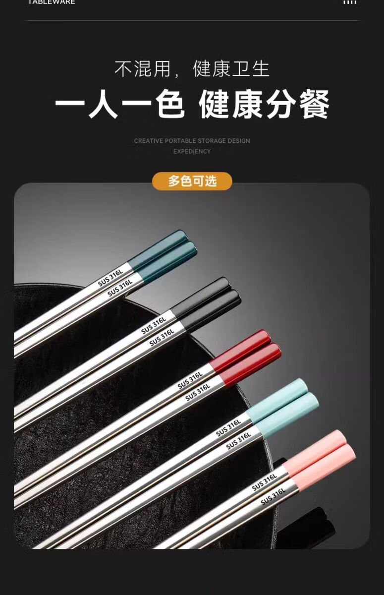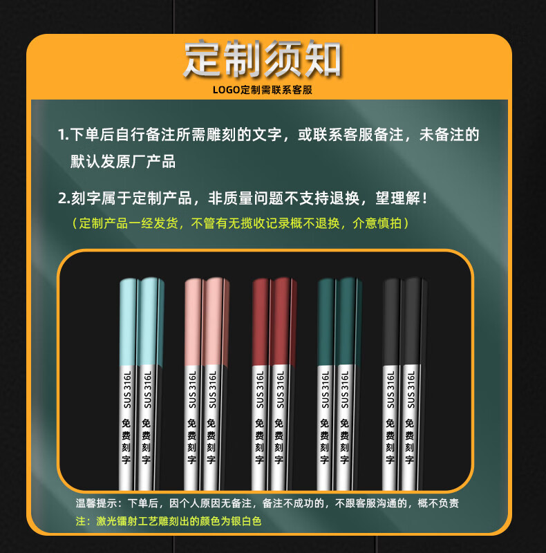 Yong Huan New Chopsticks for Meal Sharing, Specialized Mildew-proof Couple Colorful Tableware, Family Version of Five Pairs, Cool Black, Free Engraving