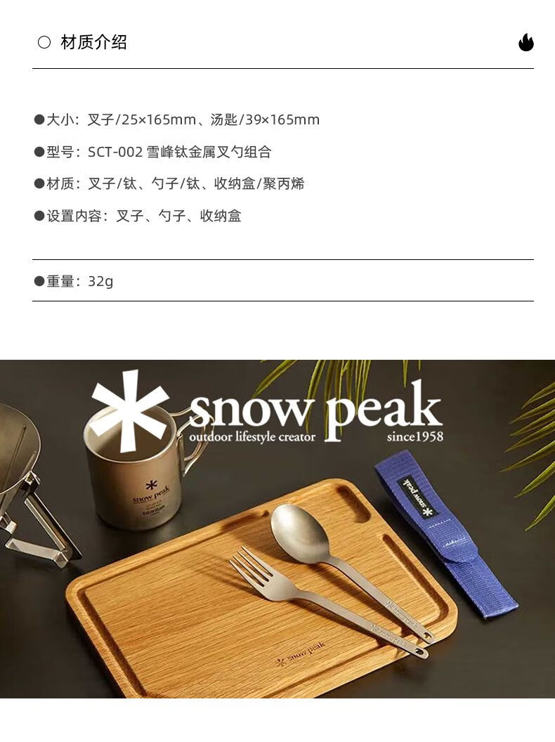 Tianxing He Xuefeng titanium spoon and fork exquisite camping titanium metal fork and spoon set portable tableware SCT002H titanium spoon and fork green SCT-002