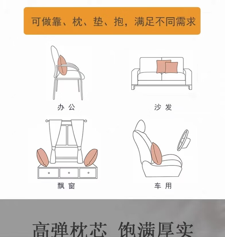 Yusenyi pillow sofa living room cushion bedside backrest lumbar office square pillow OAE02 pillowcase 1cm*1cm double-sided 40x40 (pillowcase + pillow core)