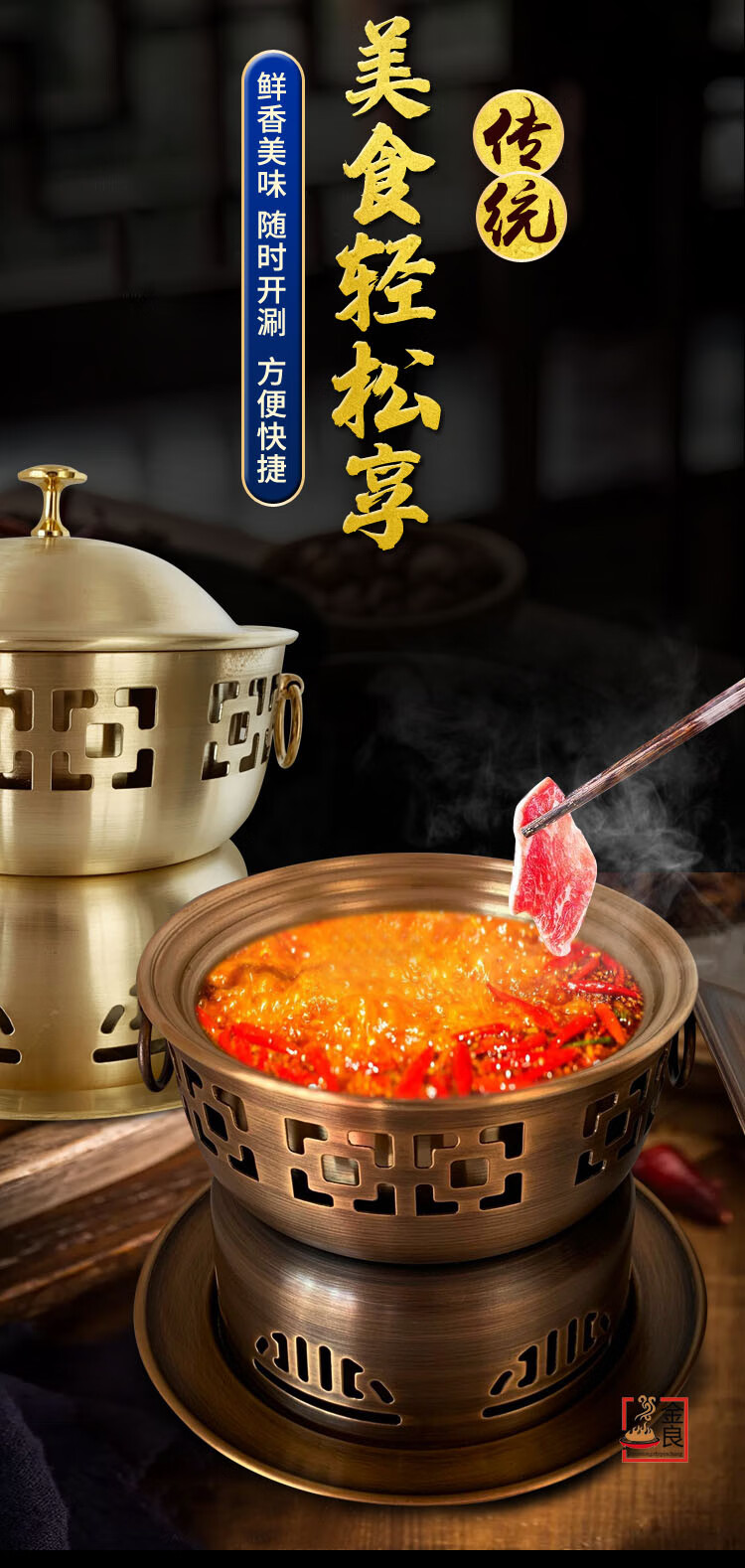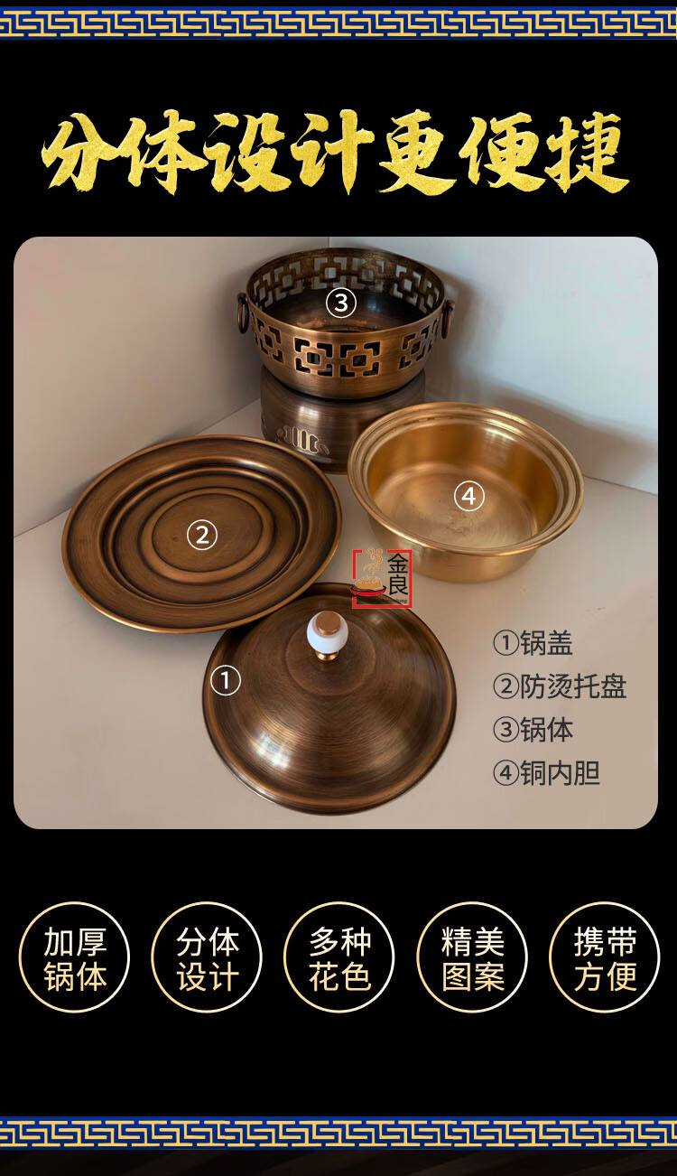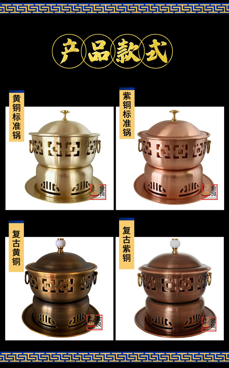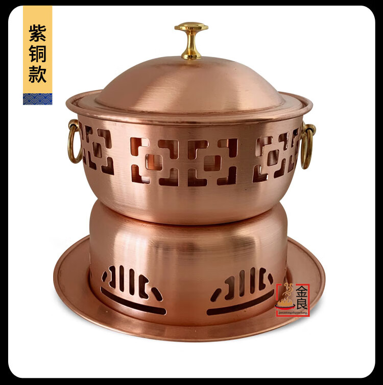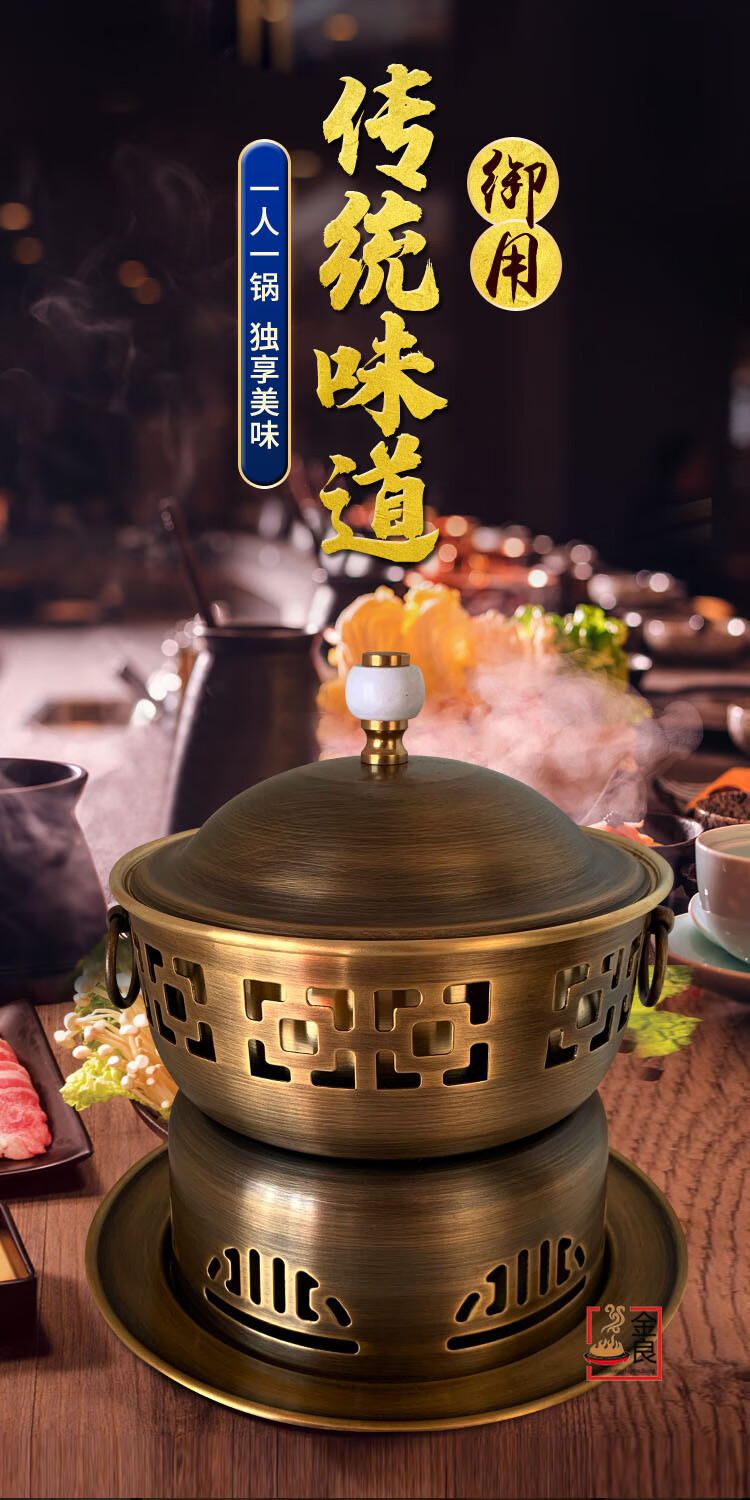 Sailotou extra thick single-person copper hot pot brass one-person small pot self-service environmentally friendly oil-separated meal pot fine stove household copper pot commercial 18cm retro brass single pot