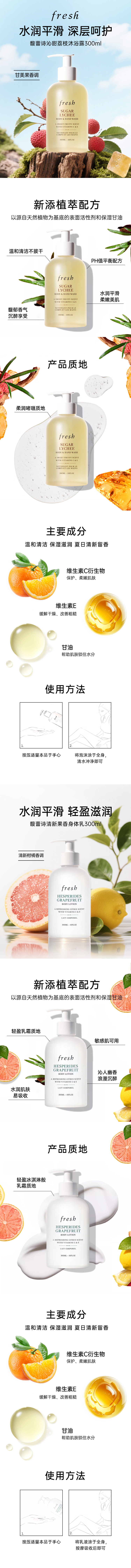 Fresh Grapefruit Shower Gel Lychee Moisturizing Shea Butter Fragrance Moisturizing Gift for Girlfriend and Wife Valentine's Day Fresh Lychee Body Lotion 300ml