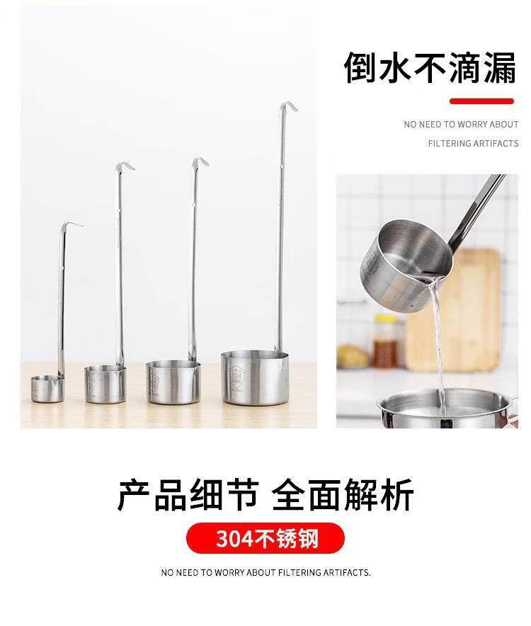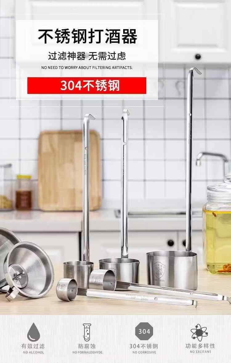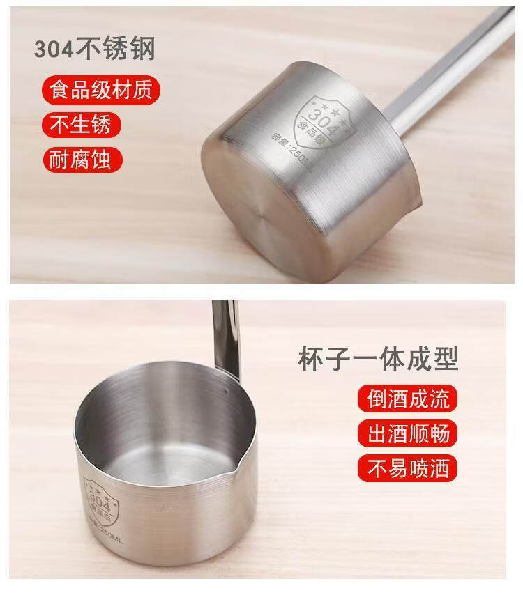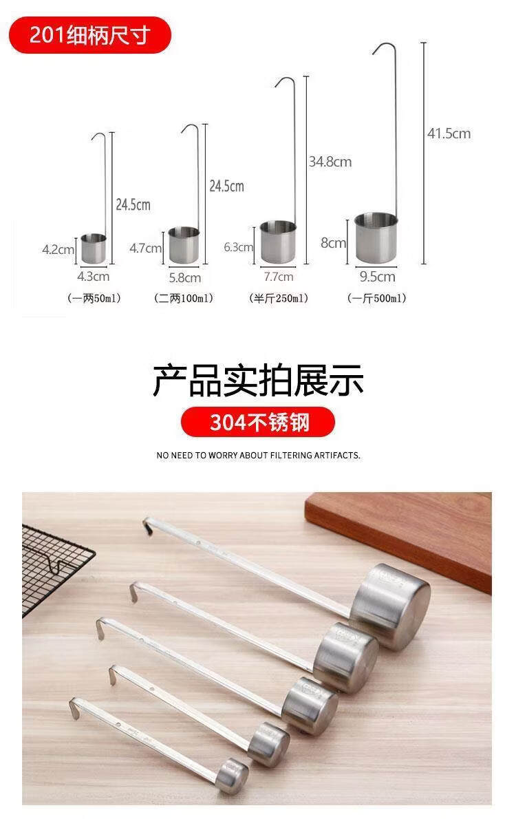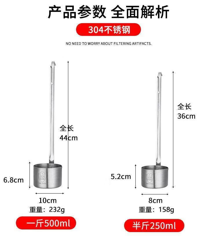 Feizhu Xiansen 304 stainless steel wine grape maker household large and small funnel with filter to measure wine and oil scoop to hold wine spoon New 304 half-liang wine scoop (diameter 3.4cm)