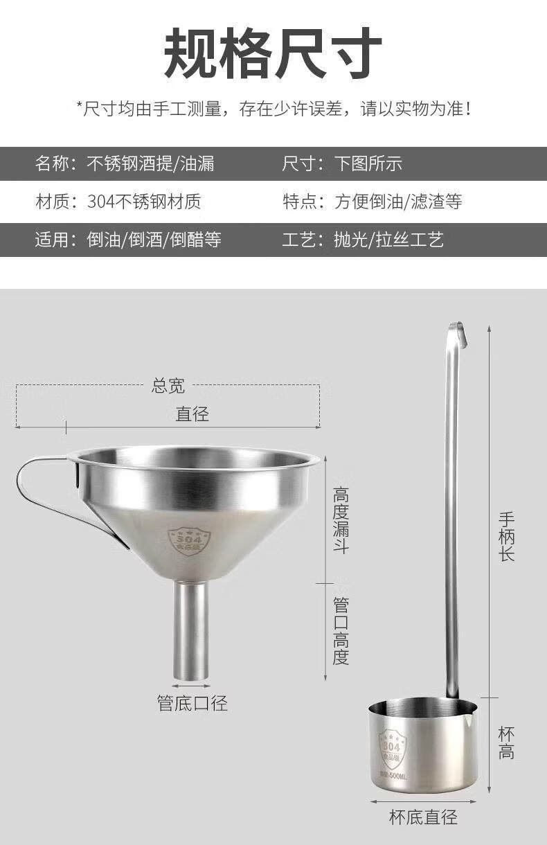 304 stainless steel long-handled wine grapes, household wine brewer, wine scooping artifact, wine + funnel, half a catty, 304 l thick stainless steel, diameter 8