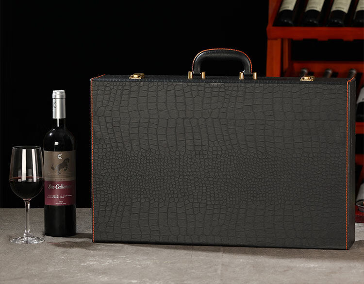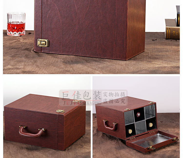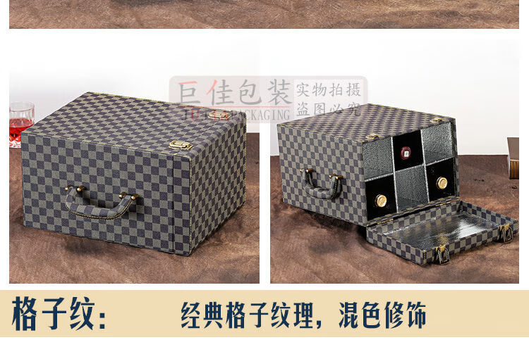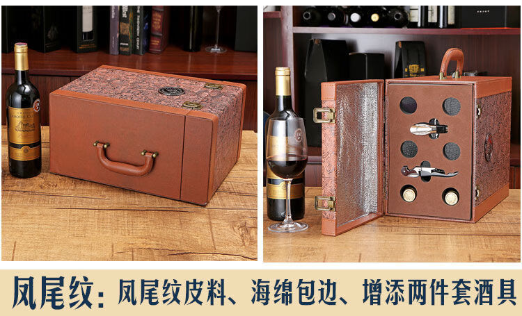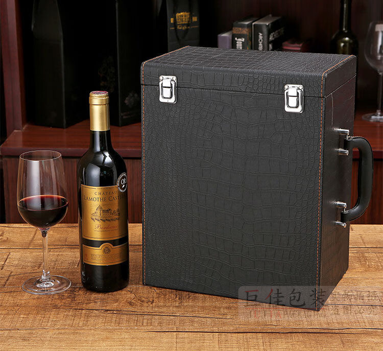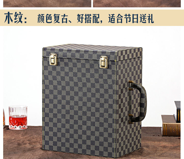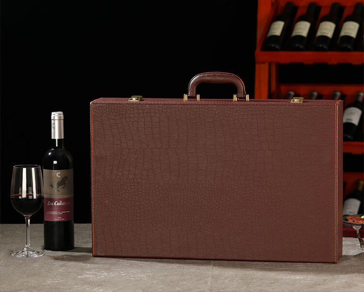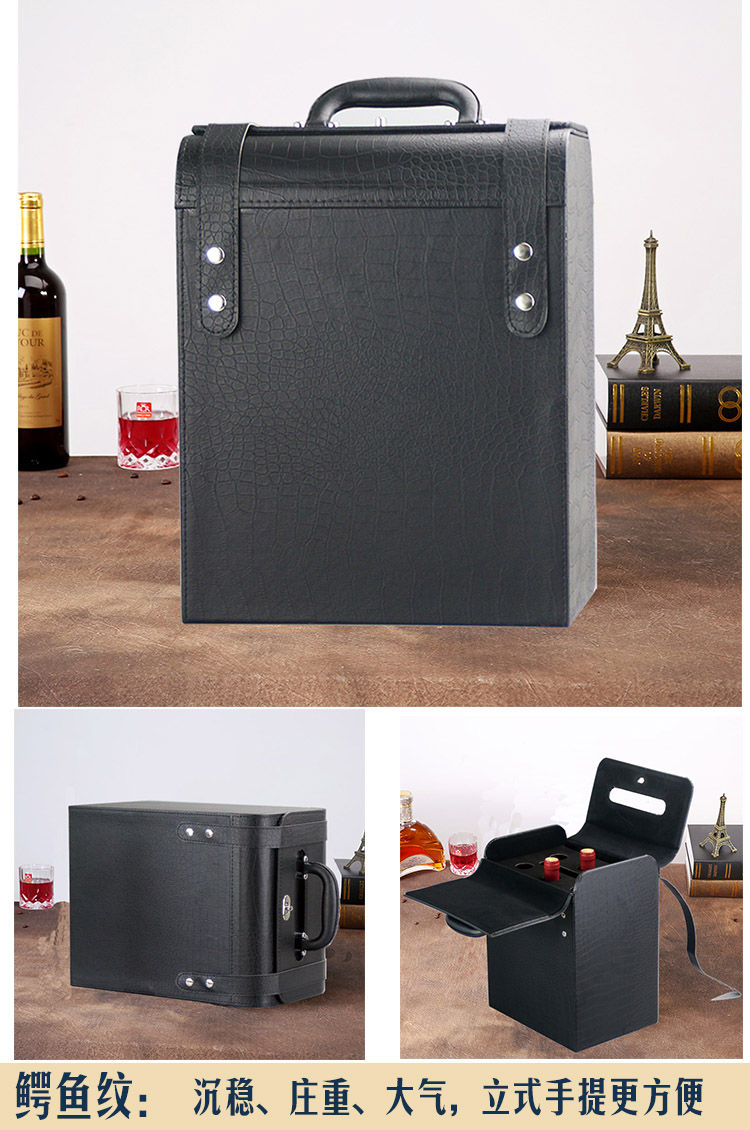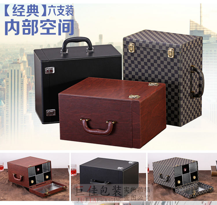 Fantasy red wine box six-pack leather suitcase wine packaging gift box 4-piece 6-piece portable suitcase red wine wooden box brown brown crocodile four-piece suitcase