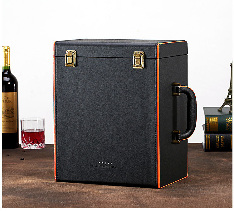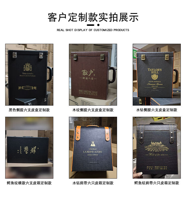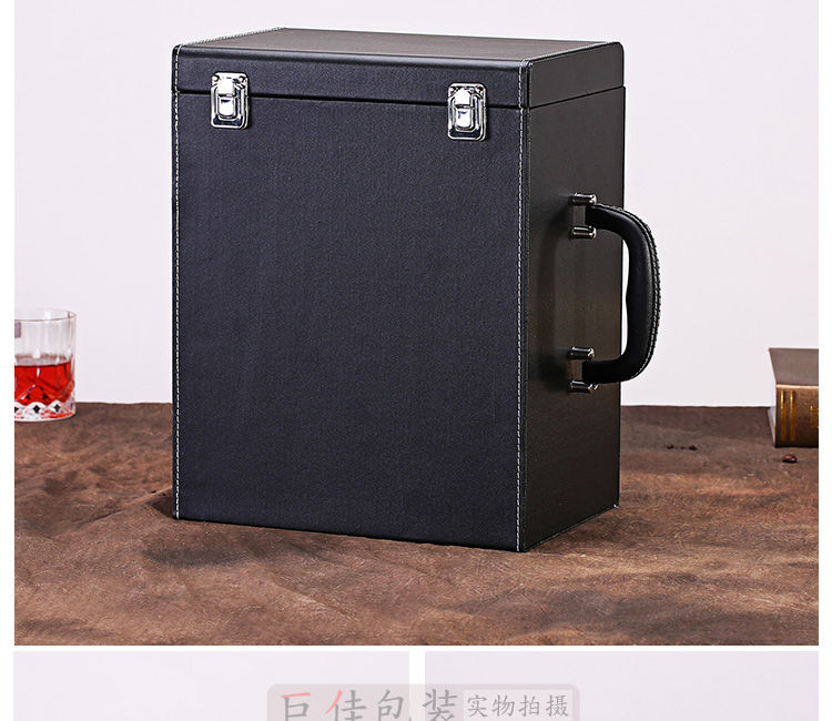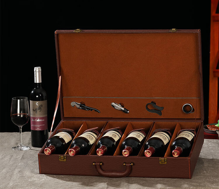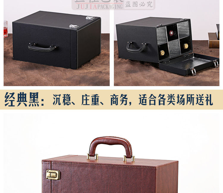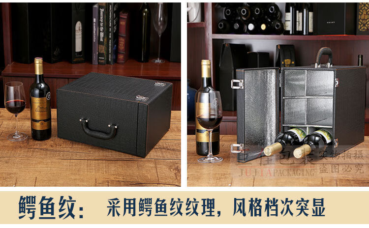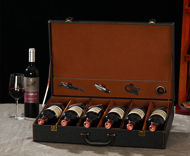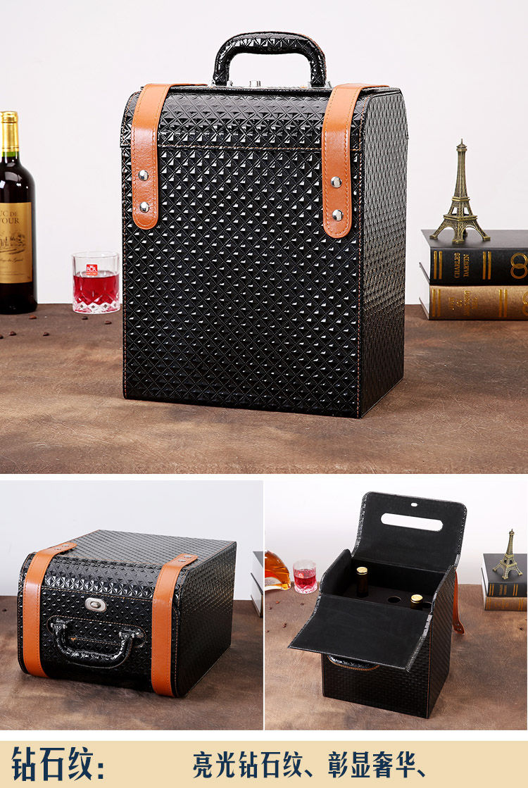Fantasy red wine box six-pack leather suitcase wine packaging gift box 4-piece 6-piece portable suitcase red wine wooden box brown brown crocodile four-piece suitcase