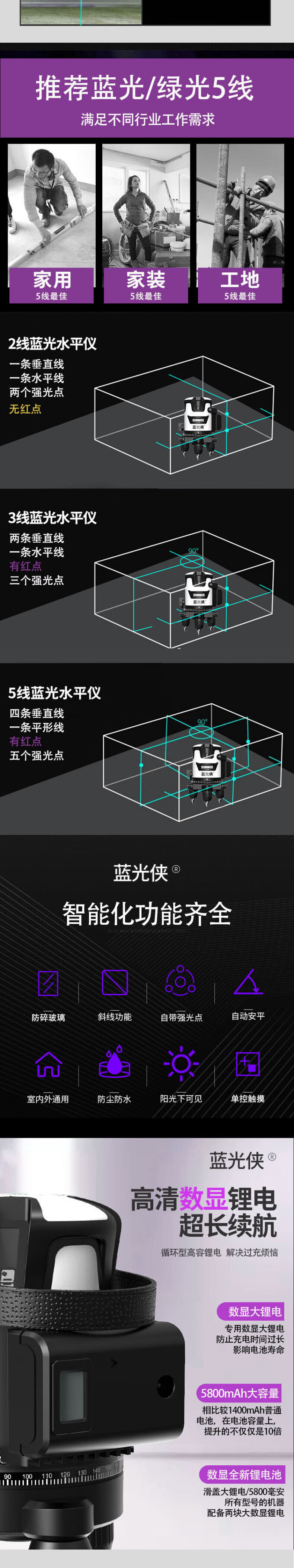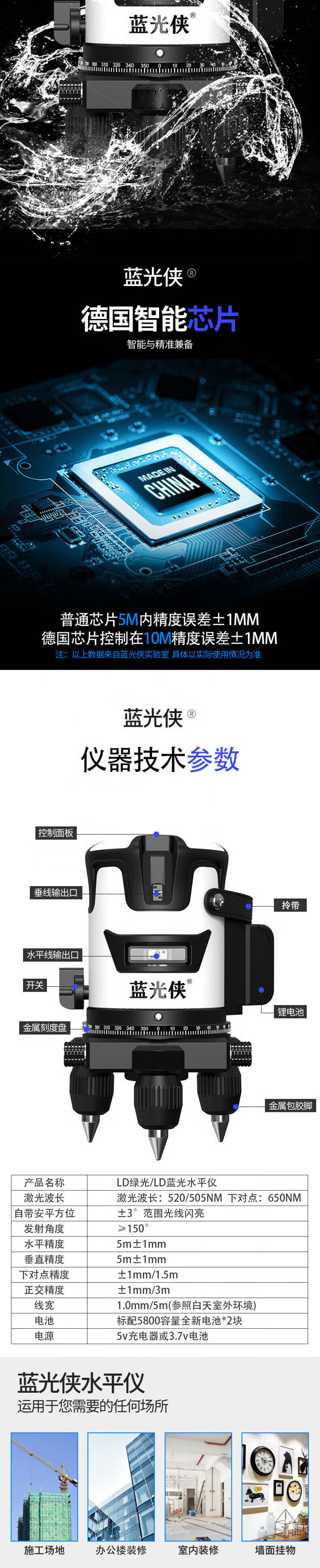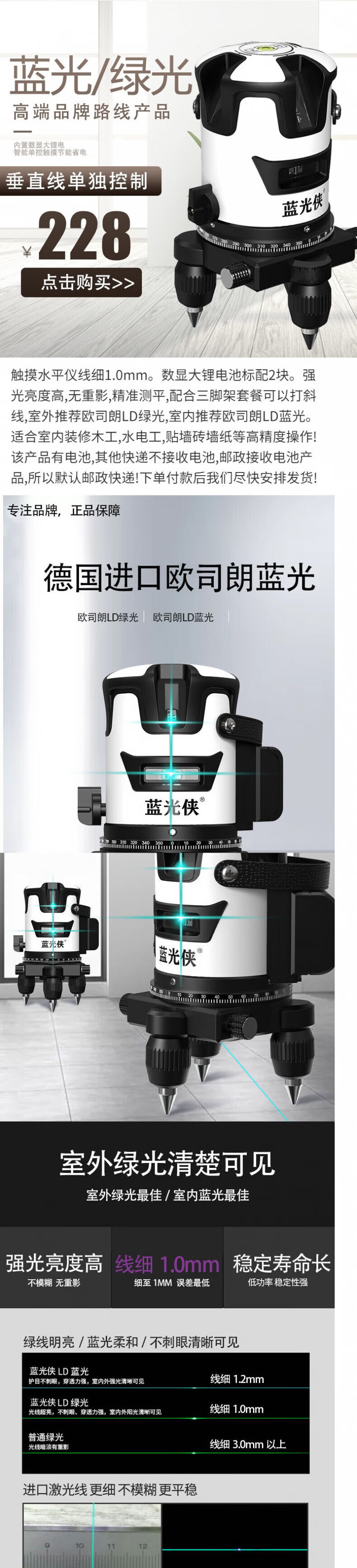 Beijing Yanxuan Osram Blue Light Level New LD Green Light 2 Lines 3 Lines 5 Lines Outdoor Strong Light Leveling Meter Free Tripod Package + 2 Lines Green Light Level
