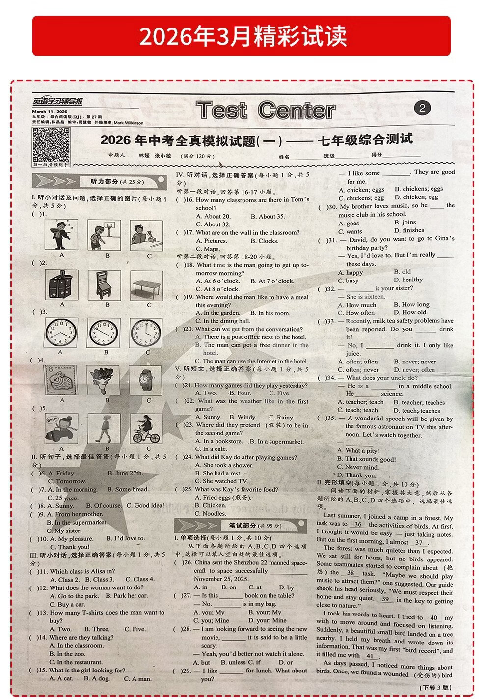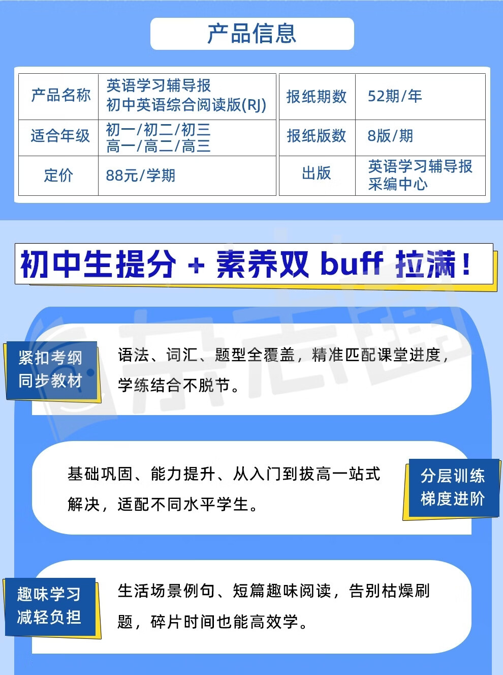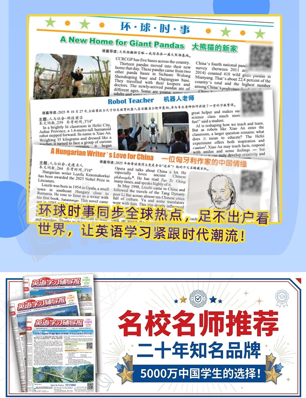 English learning tutoring newspaper Subscription starting from January 2026 1-year subscription Primary school bilingual reading/seventh grade, eighth grade and ninth grade comprehensive reading edition/high school comprehensive reading edition
