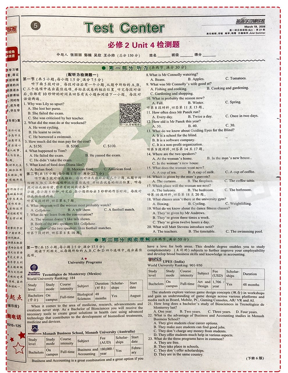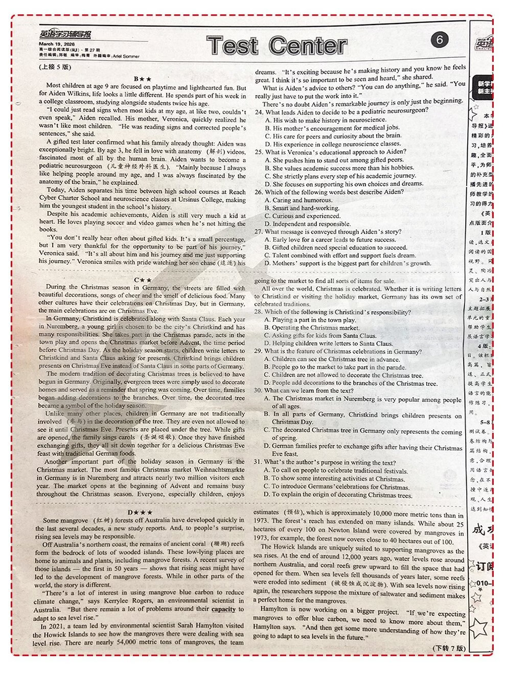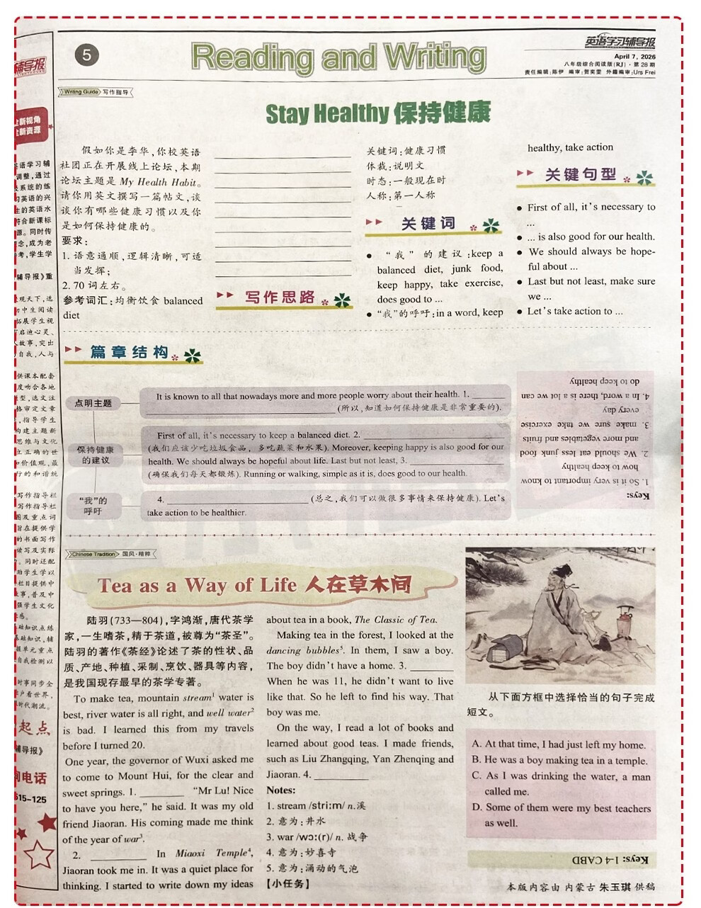 English learning tutoring newspaper Subscription starting from January 2026 1-year subscription Primary school bilingual reading/seventh grade, eighth grade and ninth grade comprehensive reading edition/high school comprehensive reading edition