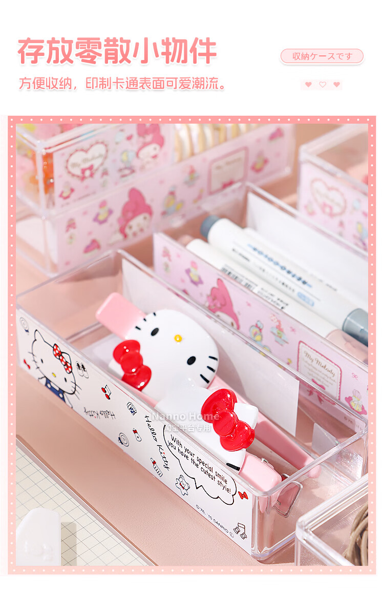 Yusenyi Desktop Small Sundries Storage Box HelloKitty 50th Anniversary Small Storage Box with Cover - 4 Pack with Cover