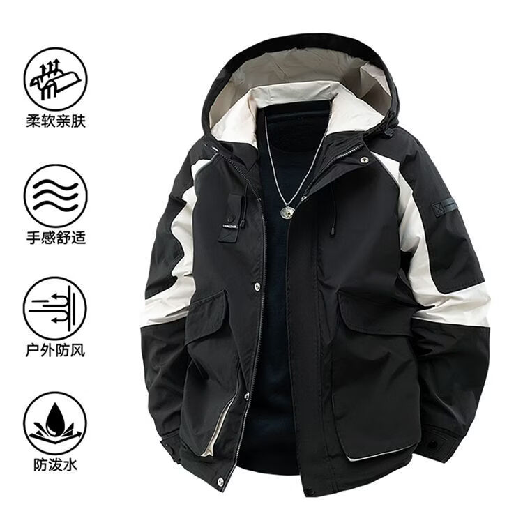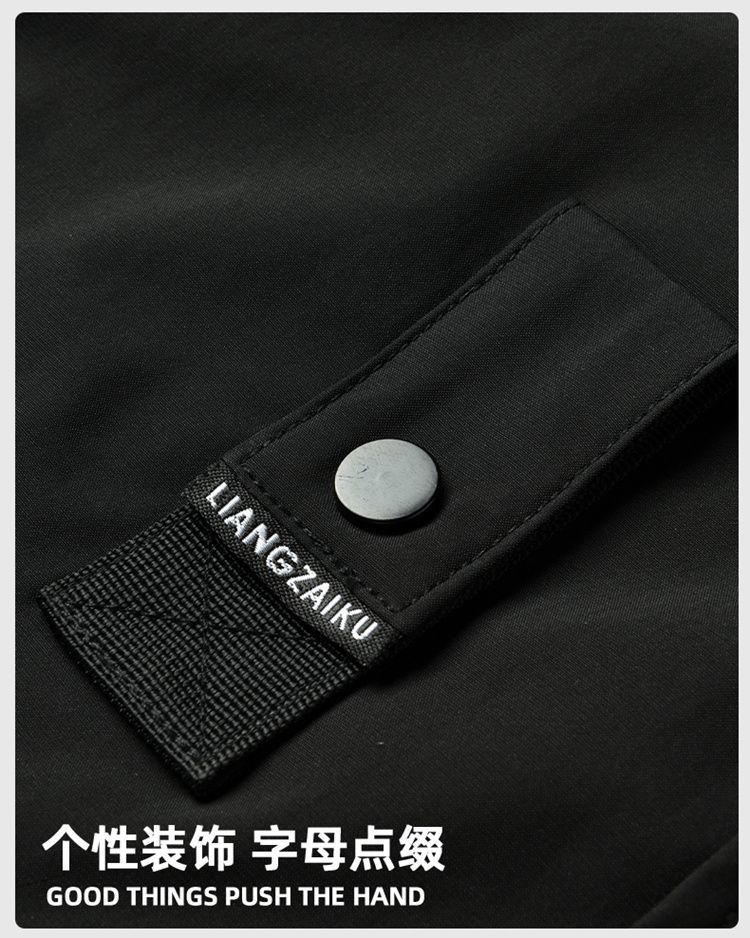 PANMAX large size men's autumn and winter coats trendy brand sports and youth casual jackets light luxury versatile loose black M recommended 90-110 pounds