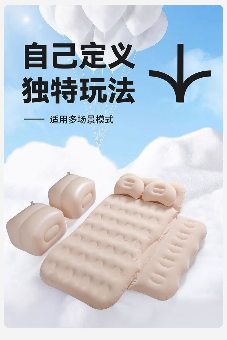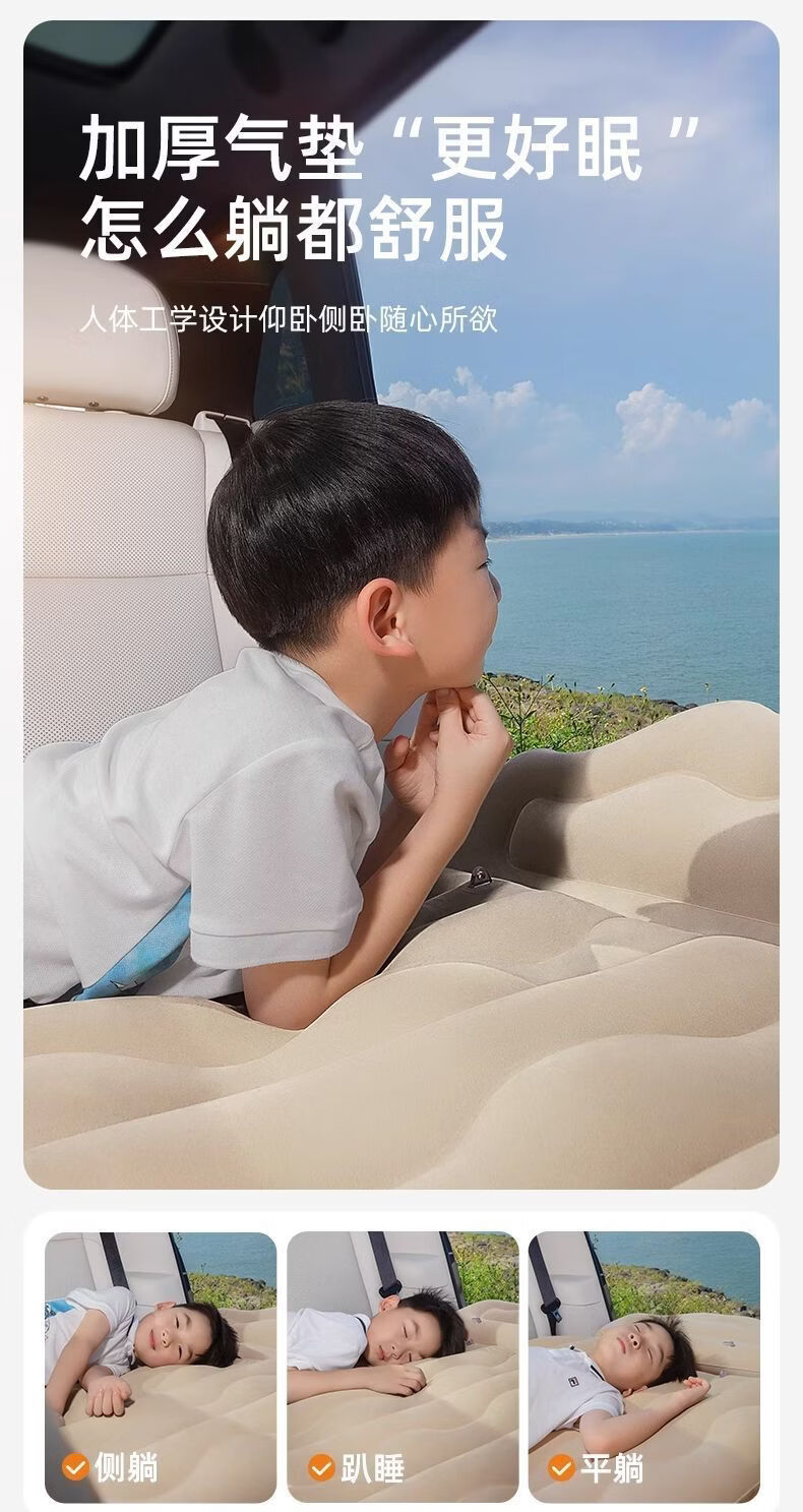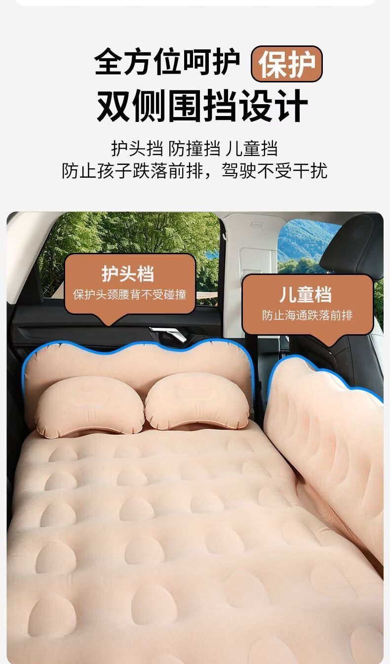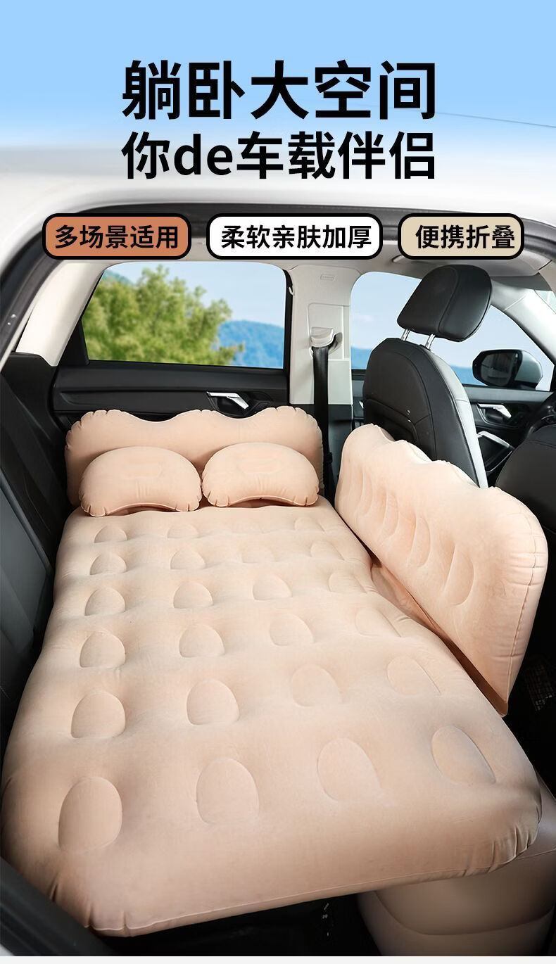 Gongma velvet skin-friendly travel bed portable car air mattress electric air pump Land Rover SUV rear sleep artifact beige split + side block + long foot pier + pillow electric pump