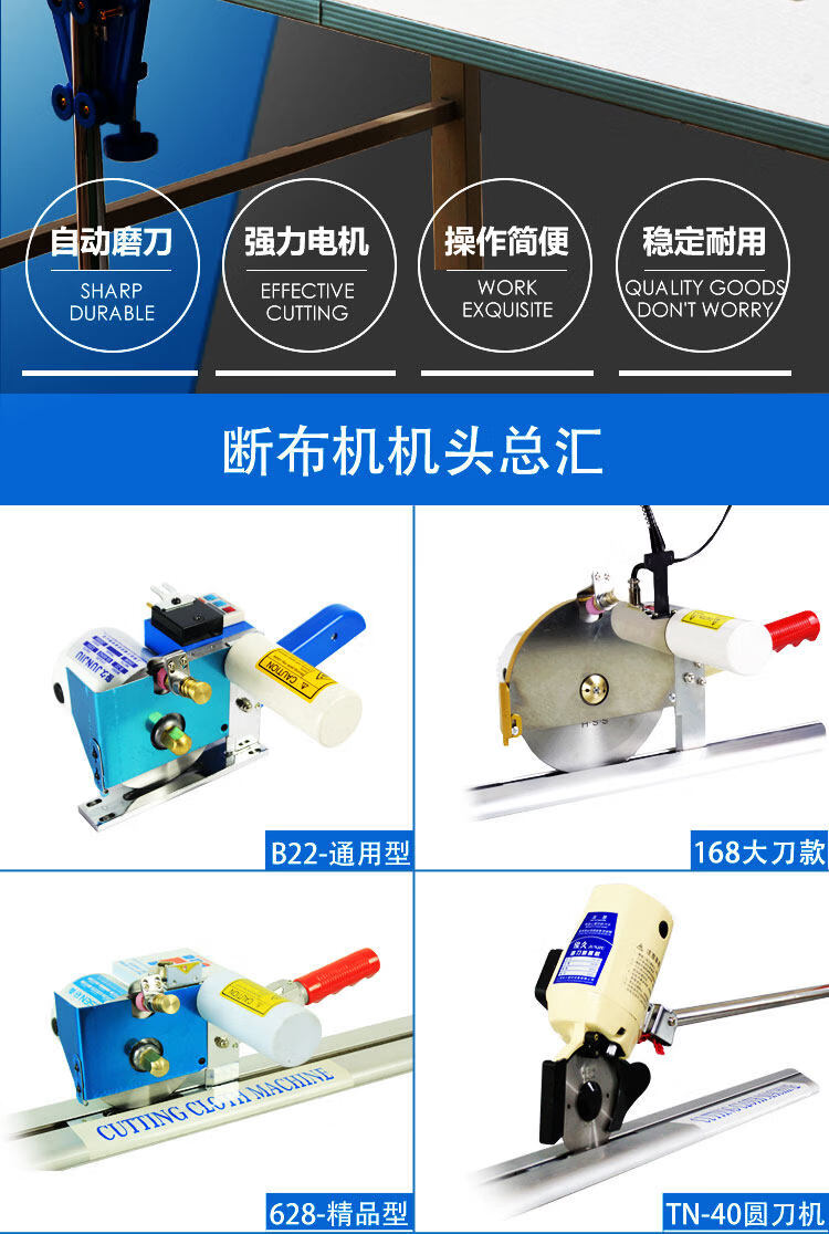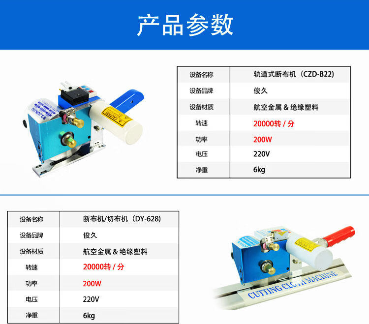 Junjiu High Power Cloth Breaking Head Orbital Cloth Cutting Machine Automatic Sharpening Cutting Cutting Bed Thick Material Sponge Round Knife Electric Clipper B22 LCD Counting Single Head
