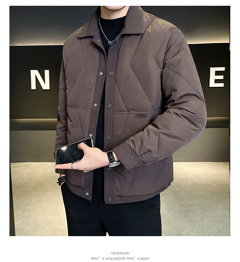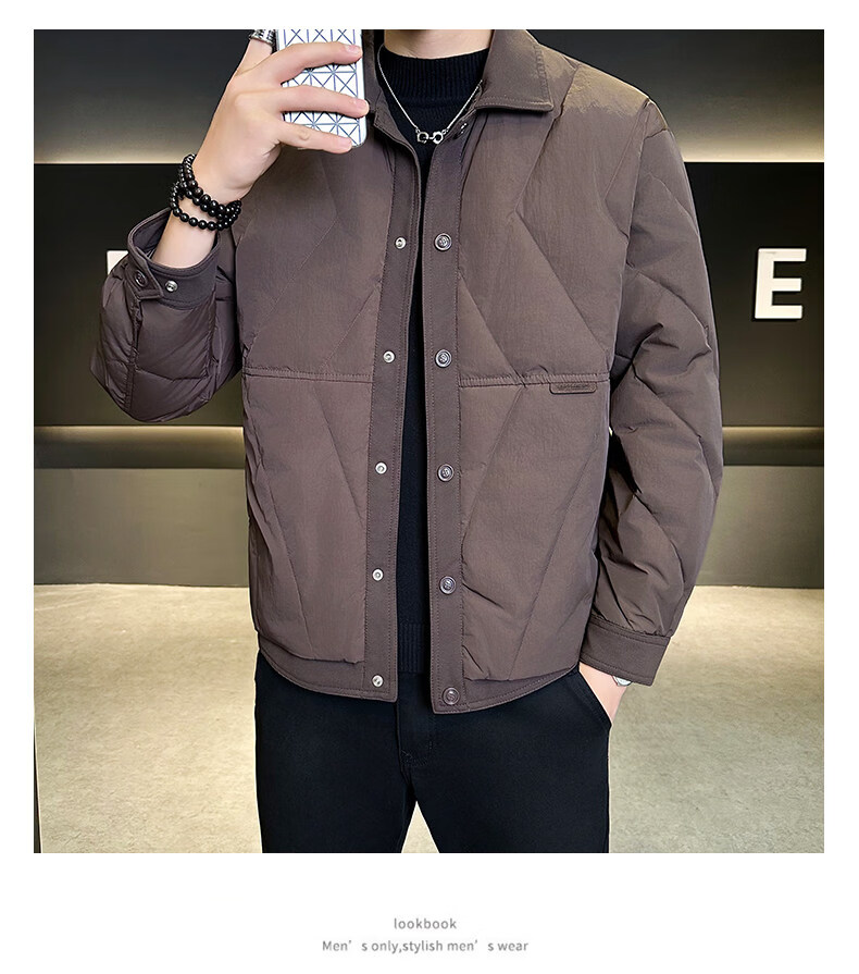 Hengyuanxiang Down Jacket Men's 2026 New Winter Short Lapel Jacket Thickened Warmth High-Level Feeling Lightweight Coffee Color_Good Quality Jacket M_90-105 Jin