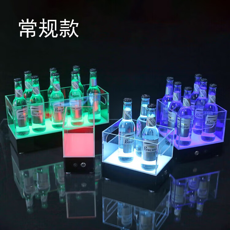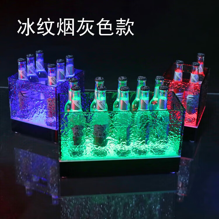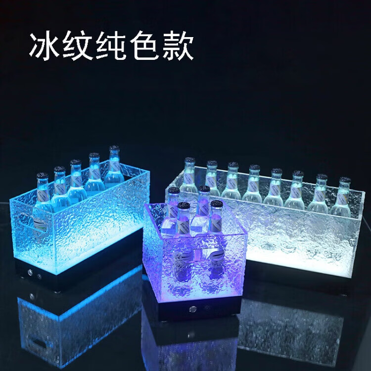 Du Zhunyu Bar Luminous Beer Frame LED Ice Bucket Acrylic Champagne Bucket Nightclub KTV Party Vessel Wine Seat Thickened 24 Pack - Ice Pattern Solid Colorful Light - 4*6