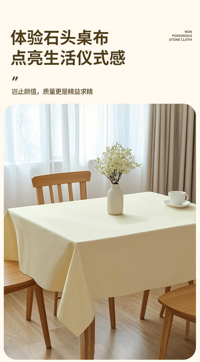 Fantasy tablecloth round table stone rectangular tablecloth French plain custard 1.4m x 1.4m 300 sheets upgraded thickened light luxury stone cloth 37g