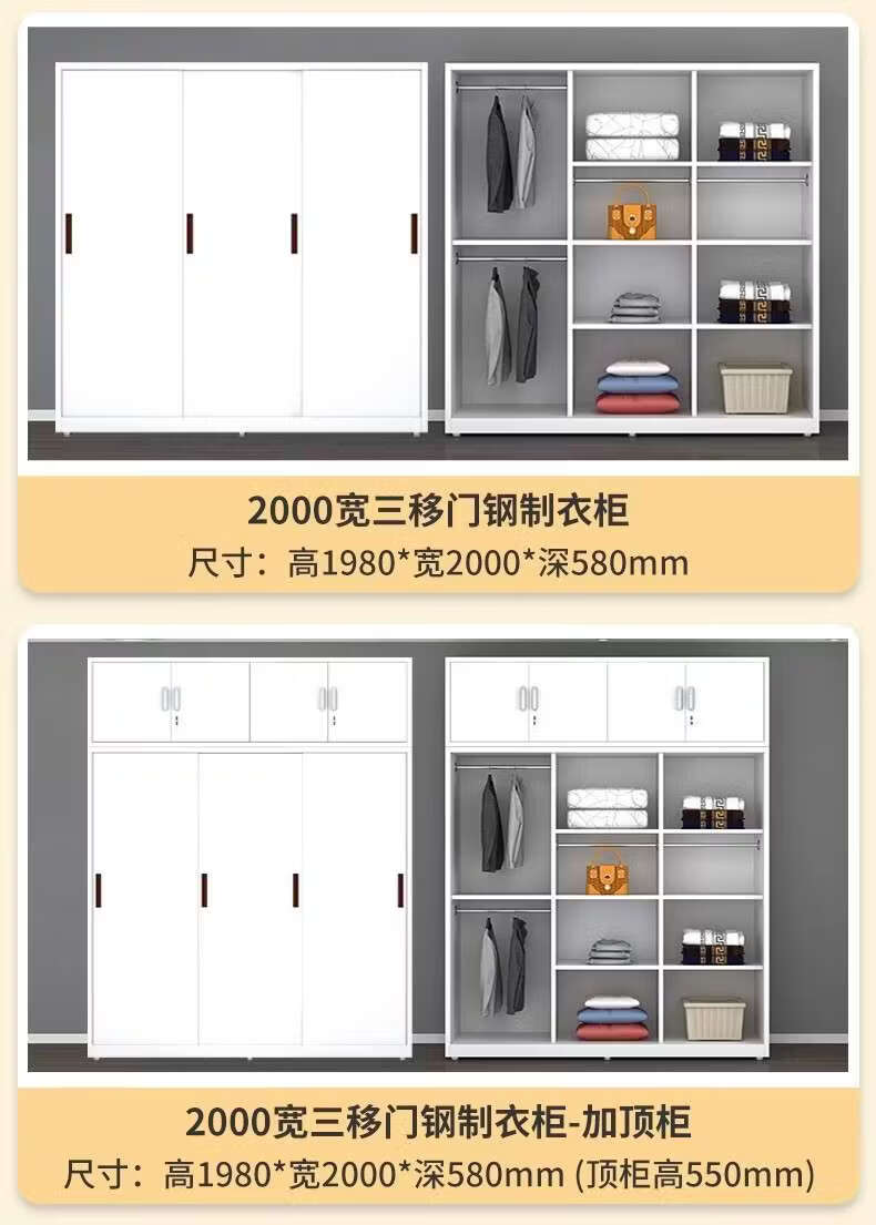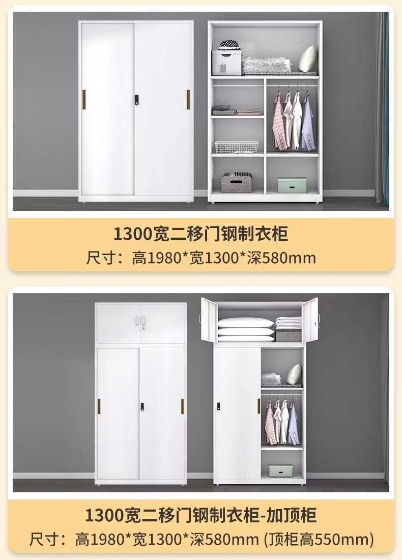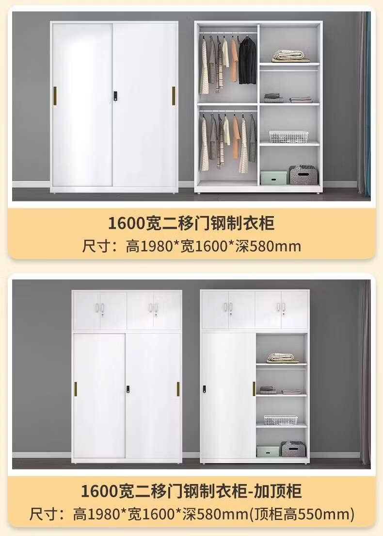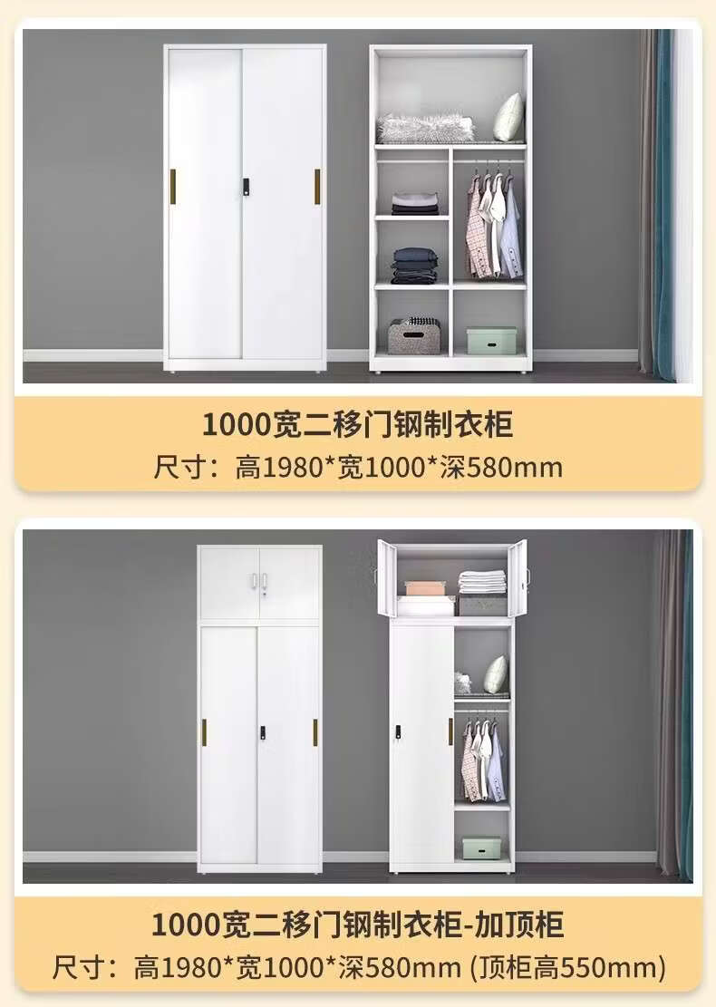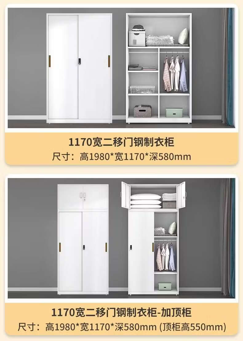 Yusenyi Wardrobe Home Iron Balcony Bedroom Locker Storage Sliding Door Metal Wardrobe with Lock Sliding Door 1170 Width Pure White ++ Need Printing Contact Customer Service Remarks Complete Assembly
