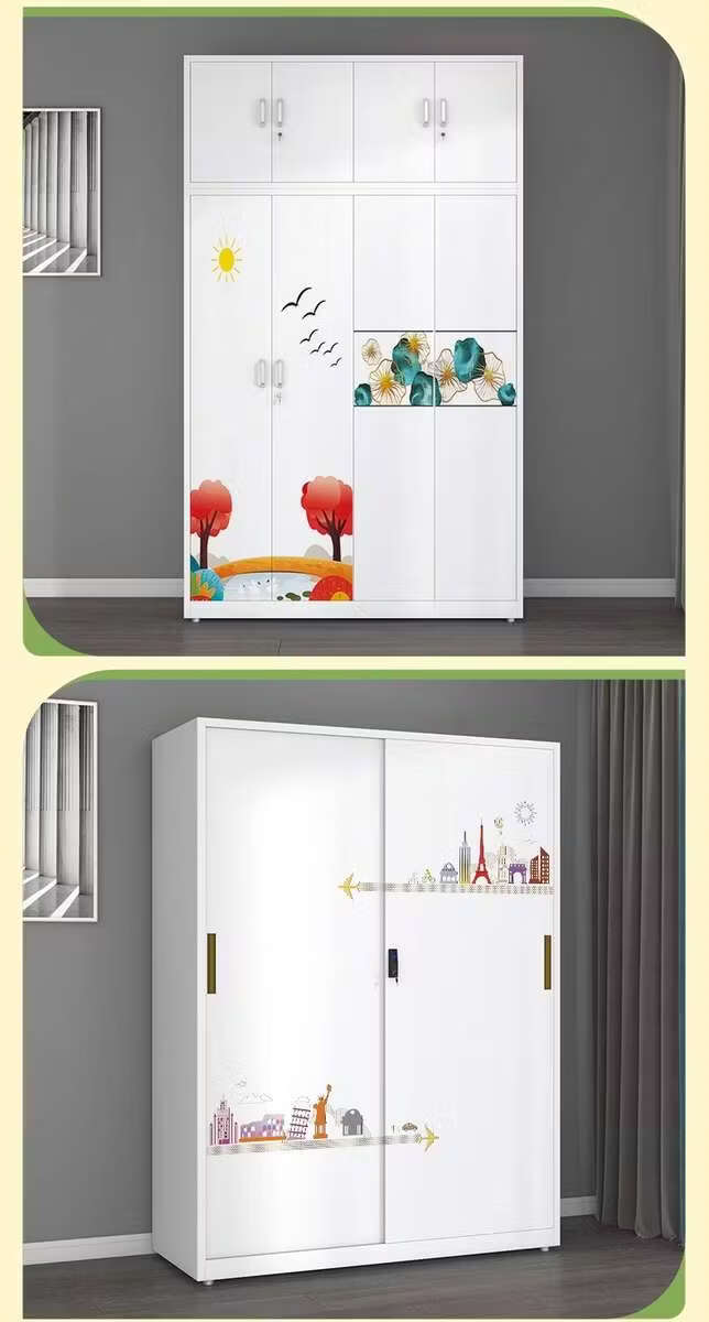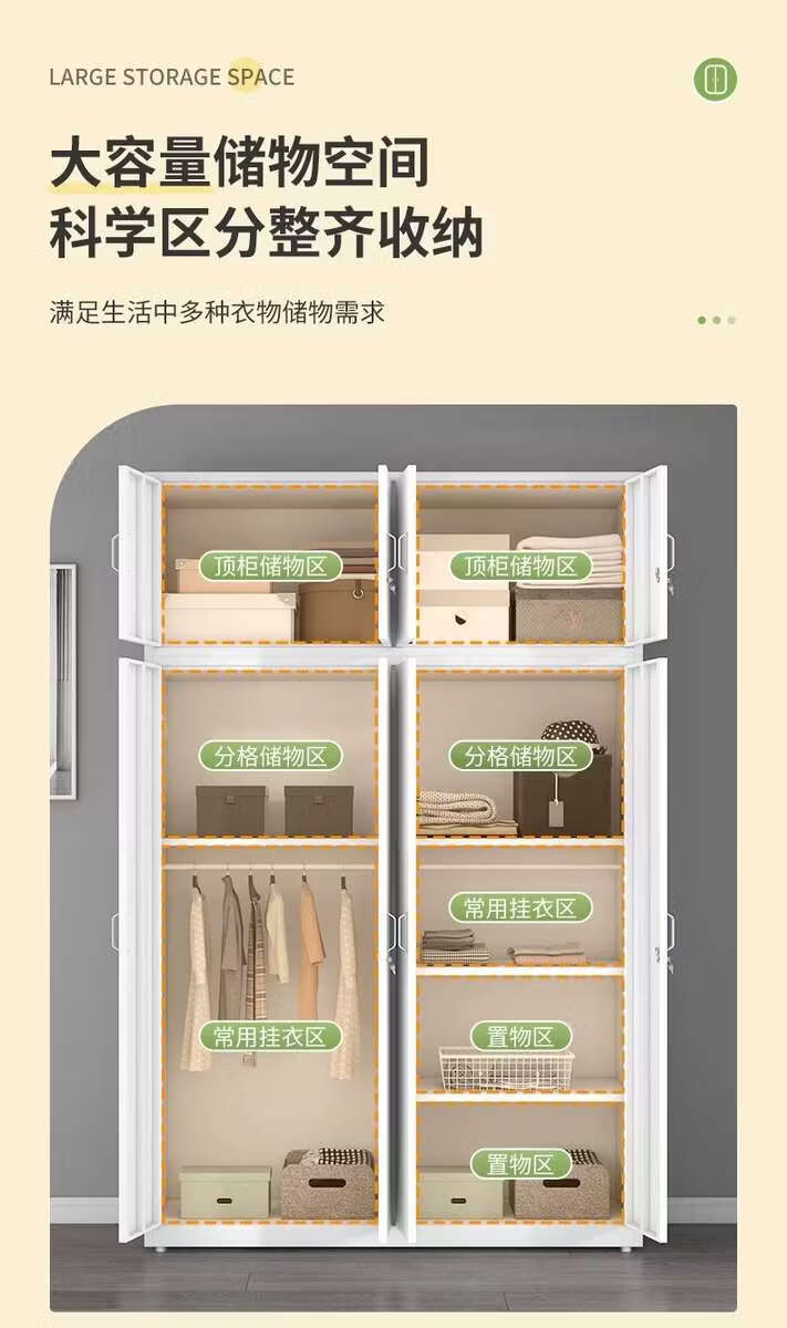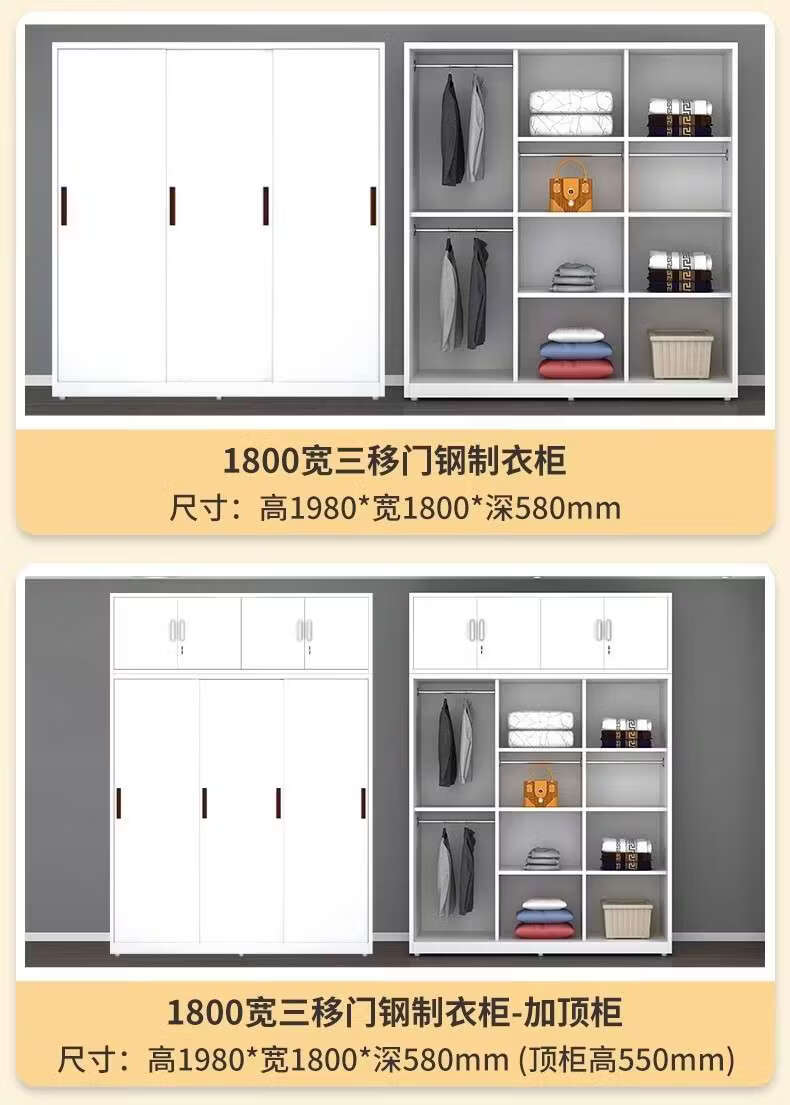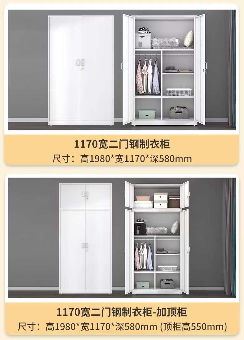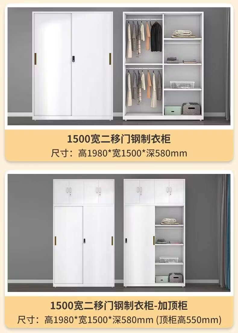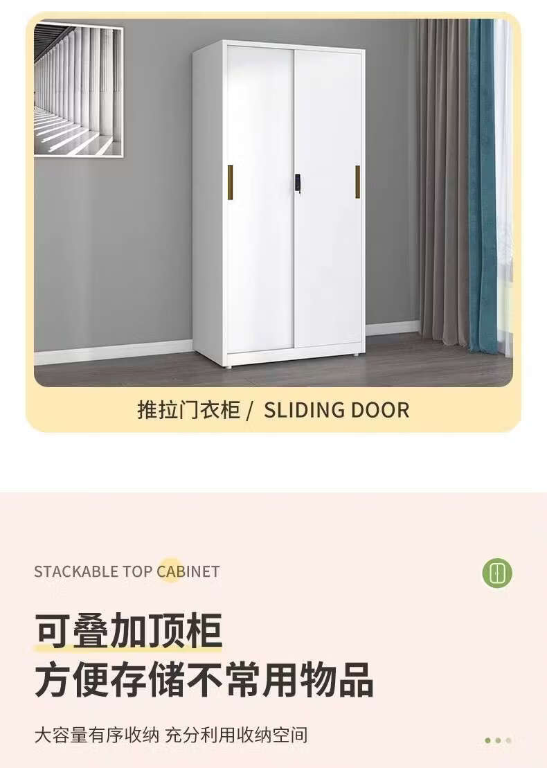 Yusenyi Wardrobe Home Iron Balcony Bedroom Locker Storage Sliding Door Metal Wardrobe with Lock Sliding Door 1170 Width Pure White ++ Need Printing Contact Customer Service Remarks Complete Assembly