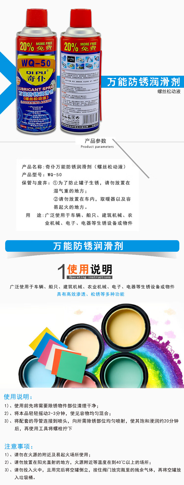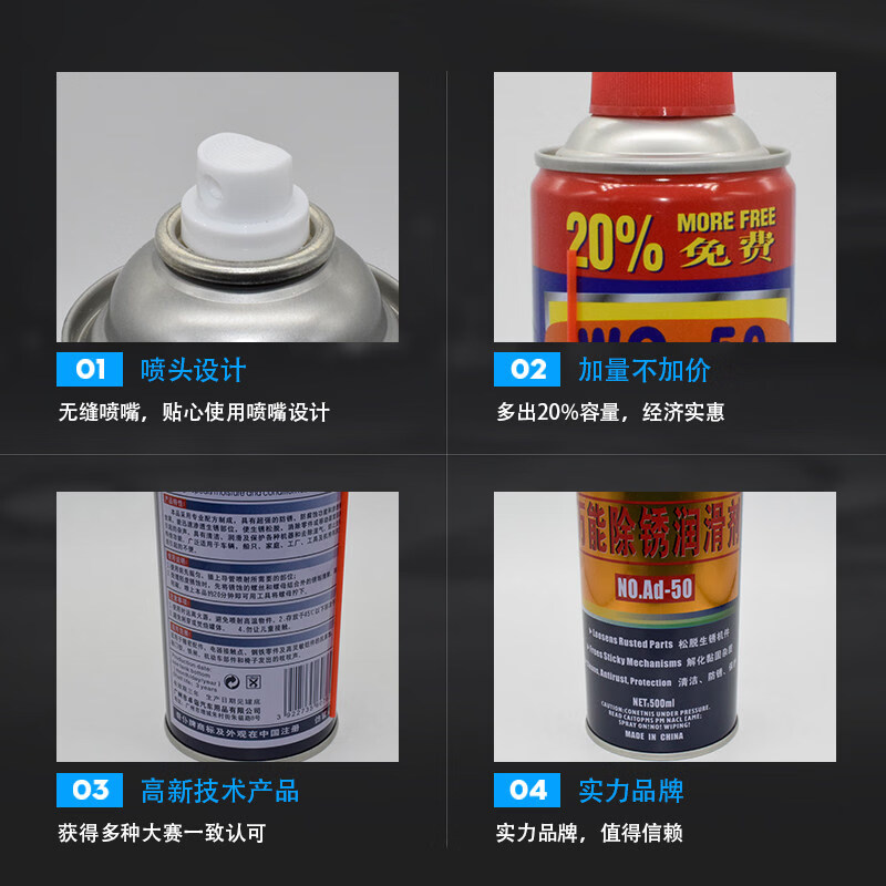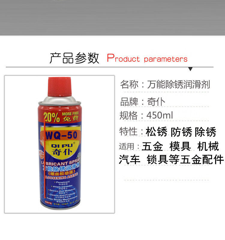 WQ-50 QIPU rust removal lubricant anti-rust agent lubricant mold hardware screw loosening agent strong loose rust spirit QIPU rust remover 450 ml 1-12 bottles retail