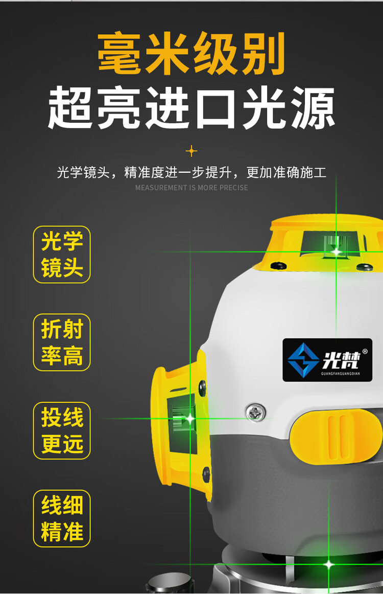 Sailoto 12-line green light wall-mounted outdoor high-precision strong light thin line automatic leveling meter strong light 12-line green light integrated rotating fine-tuning