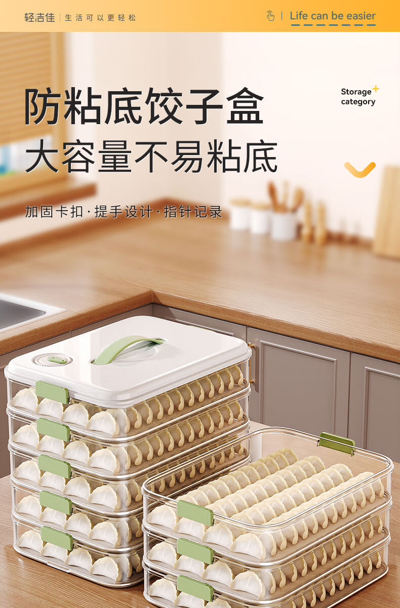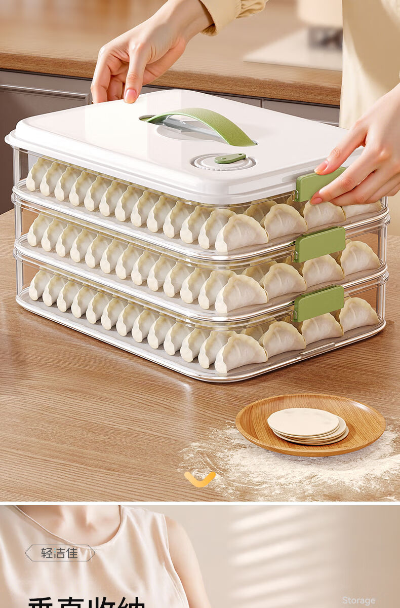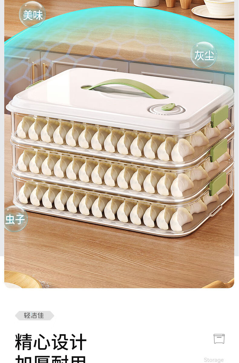 MEOD Japan imported high-quality dumpling compartment box for household food-grade freezing special sealed dumplings and wontons quick-frozen kitchen 1 layer can be carried and can hold 60 dumplings/anti-stick bottom/timer