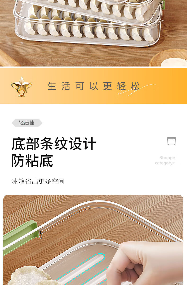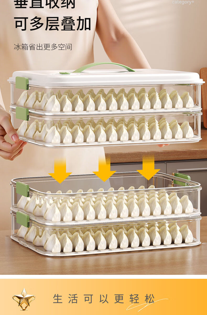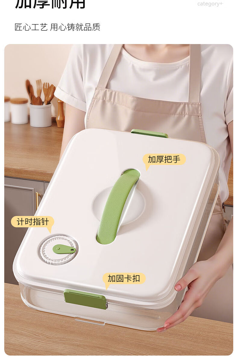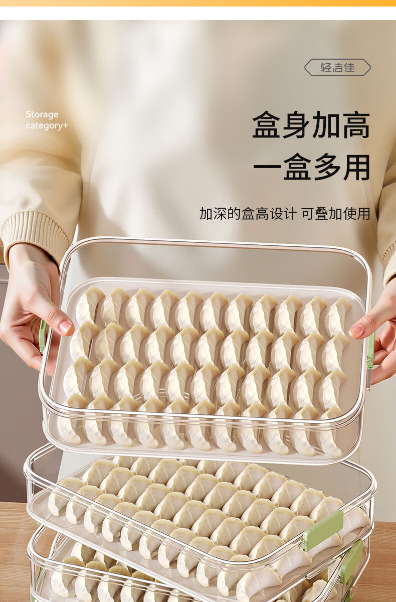 MEOD Japan imported high-quality dumpling compartment box for household food-grade freezing special sealed dumplings and wontons quick-frozen kitchen 1 layer can be carried and can hold 60 dumplings/anti-stick bottom/timer