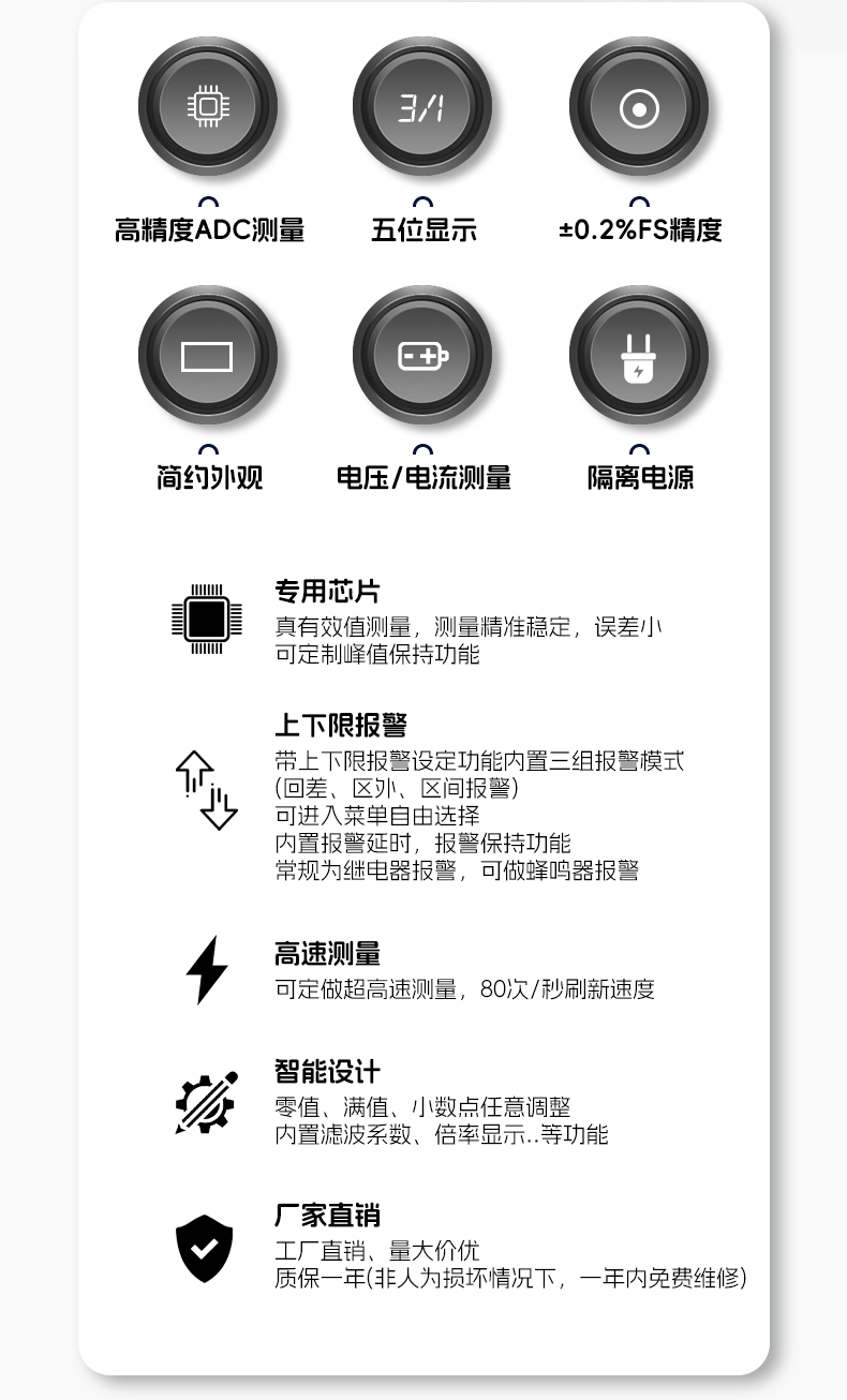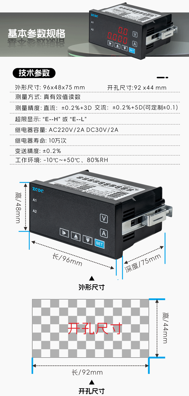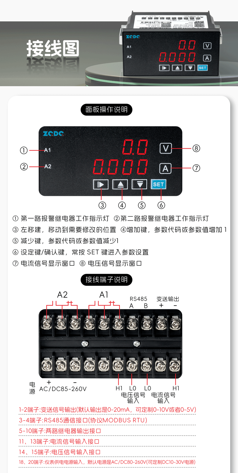 Zhirui Electric ZC-AV digital display voltage and current dual display meter DC/AC RS-485 communication alarm analog quantity relay + analog quantity + RS-485 communication
